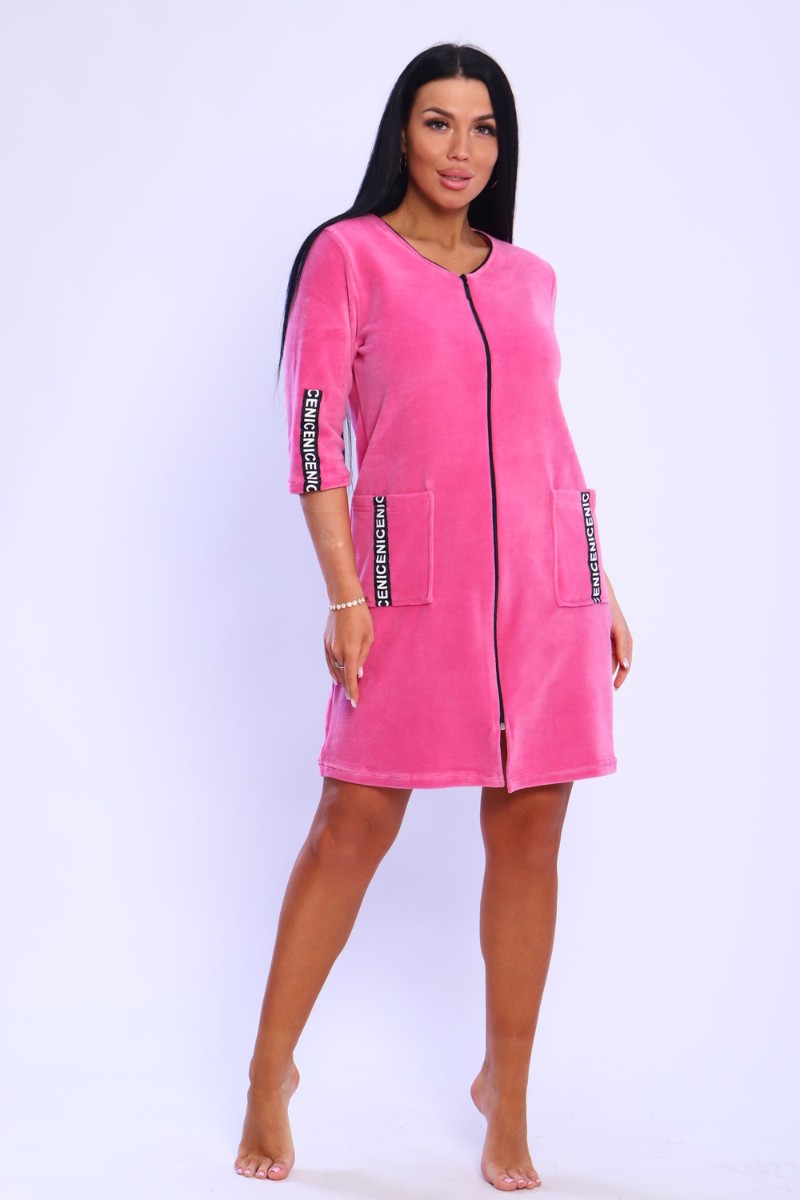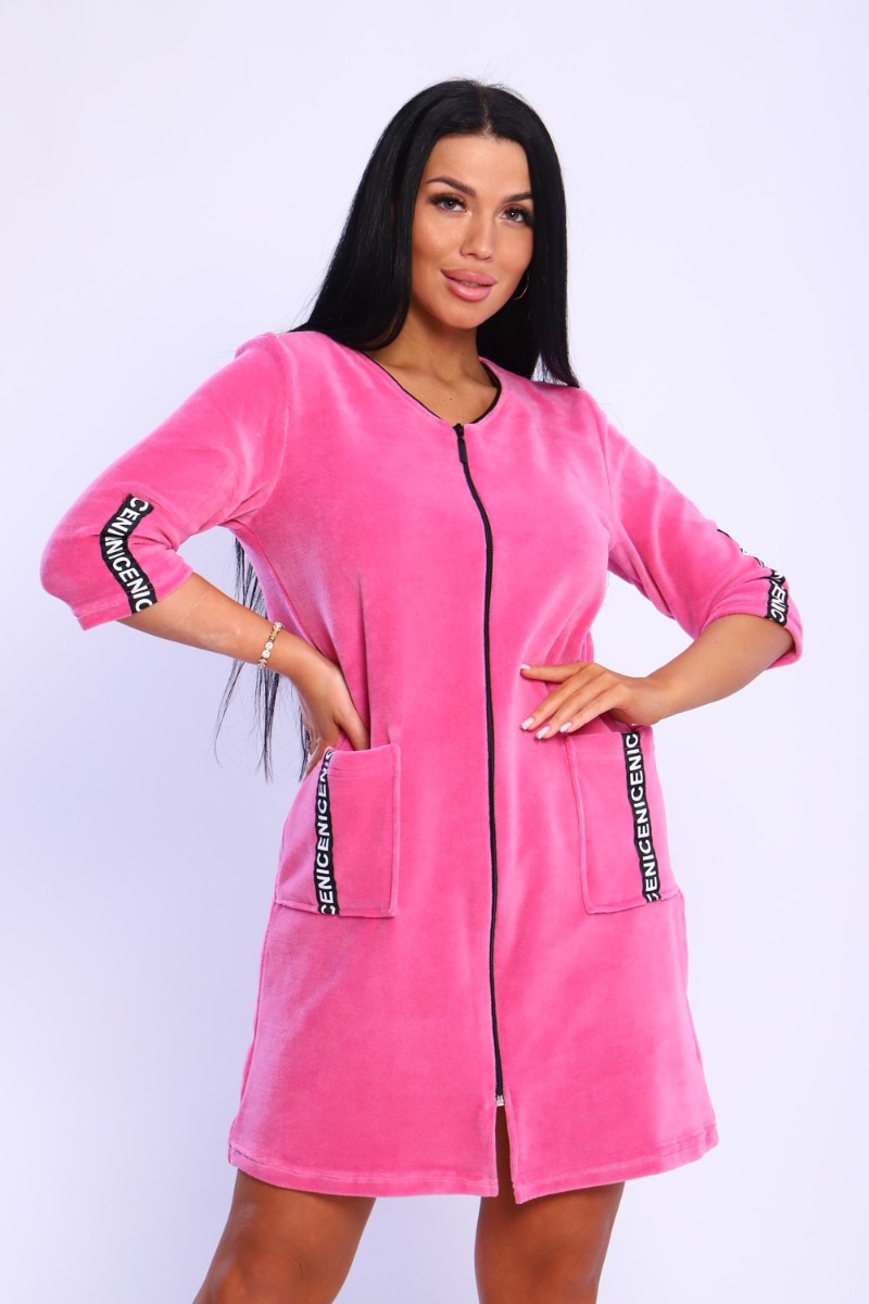 Халат женский №6068 велюр (последний размер) розовый 46,54,56