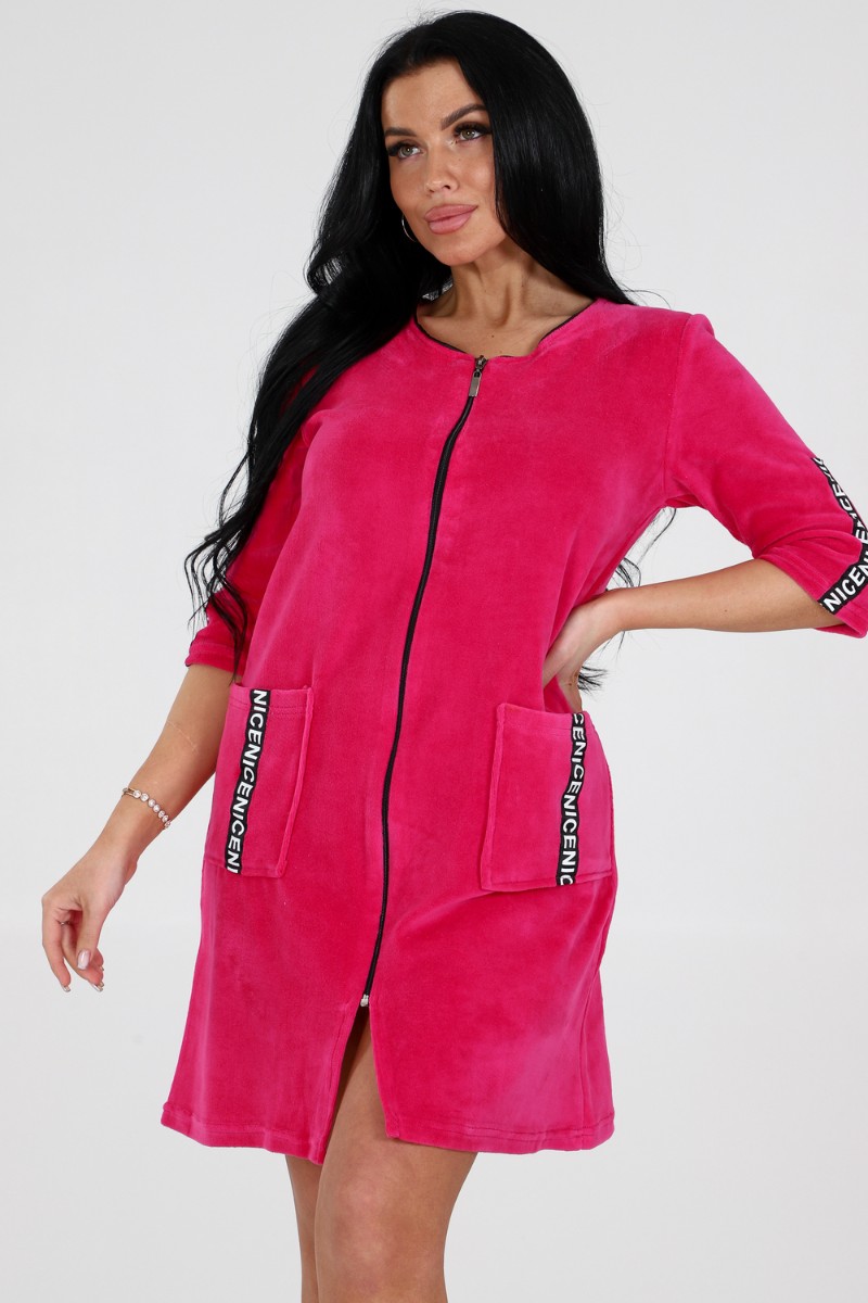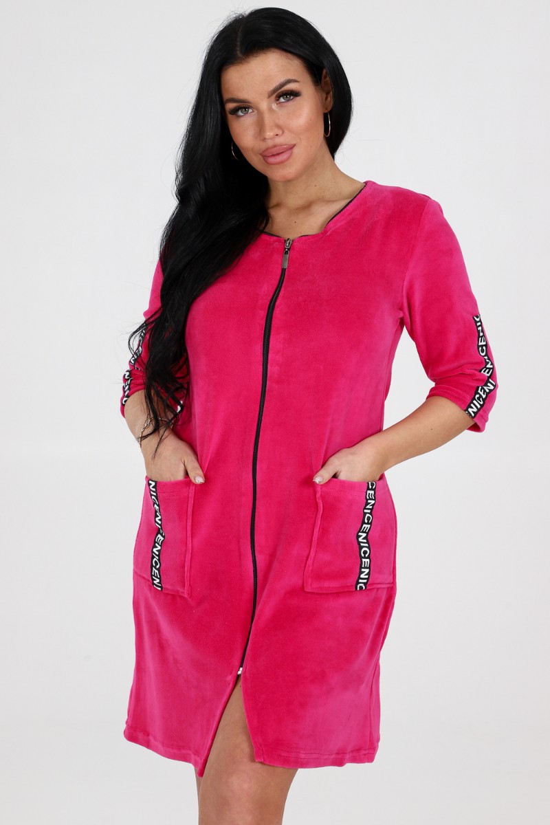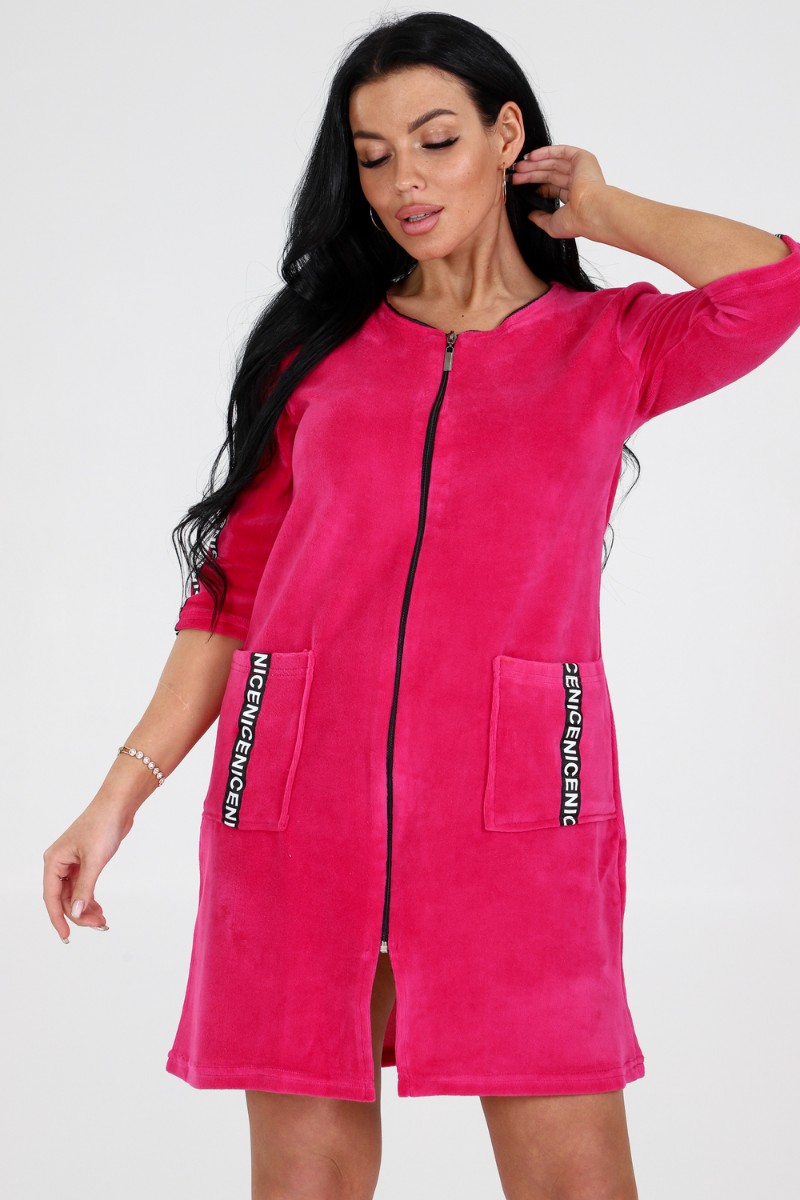 Халат женский №6068 велюр (последний размер) фуксия 46,52