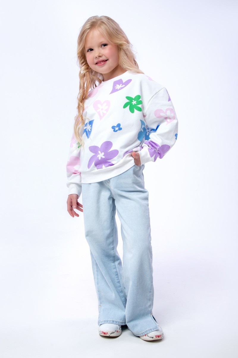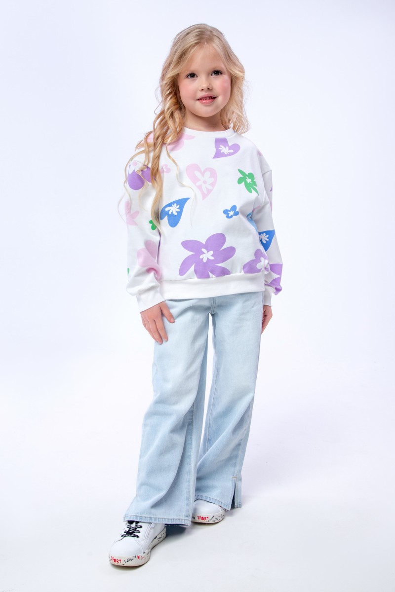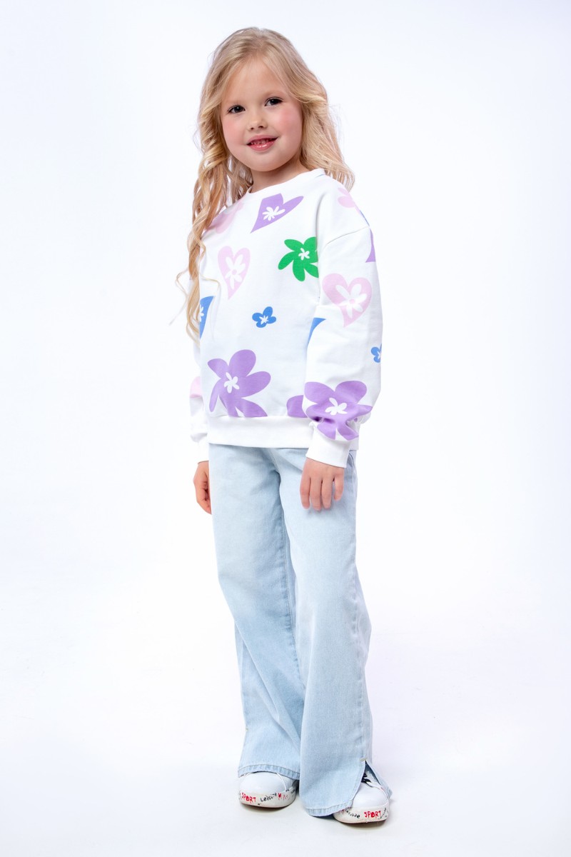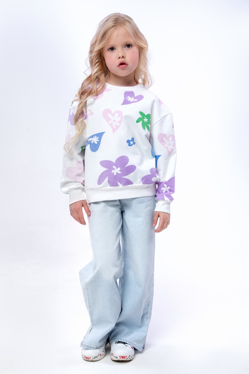 Свитшот детский "Цветочки" СД-013-056 футер 2-х нитка (последний размер) белый 146-72