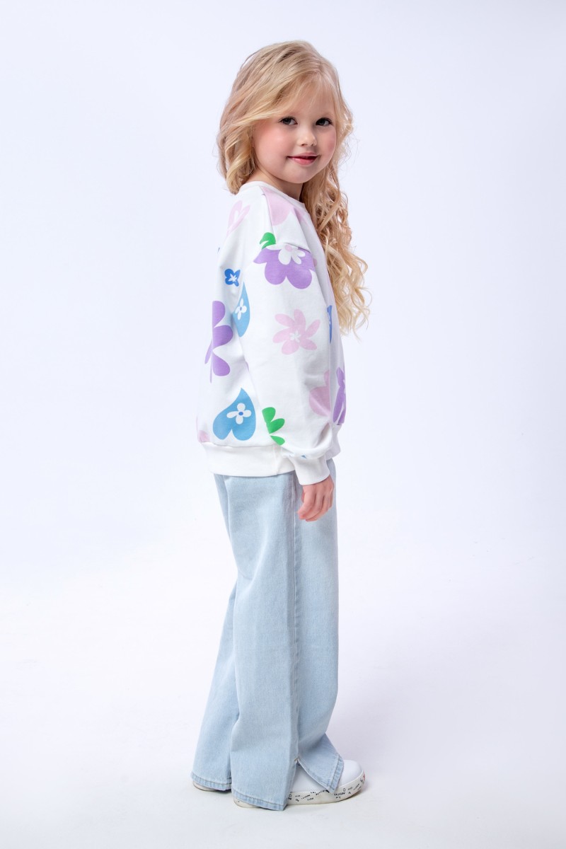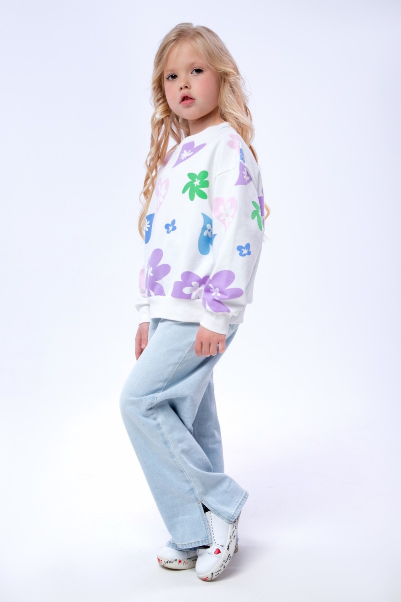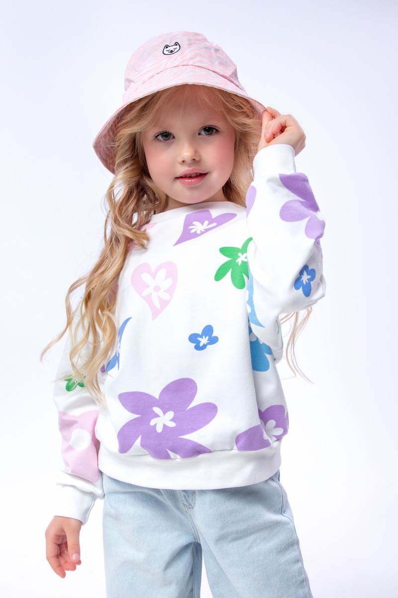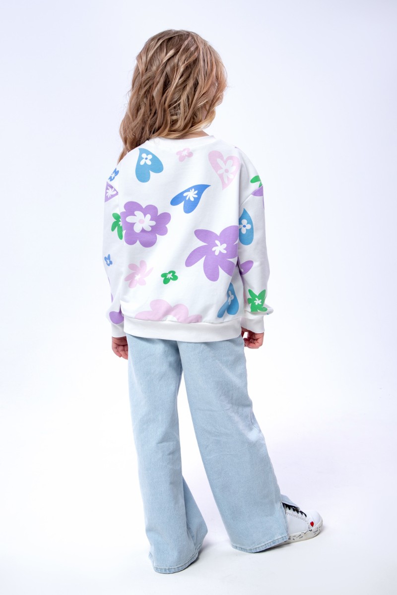 Свитшот детский "Цветочки" СД-013-056 футер 2-х нитка (последний размер) белый 146-72
