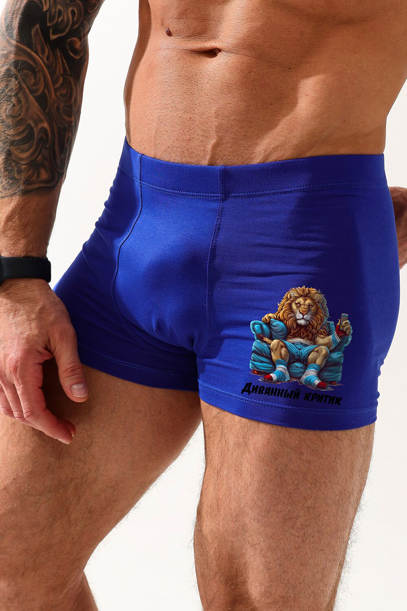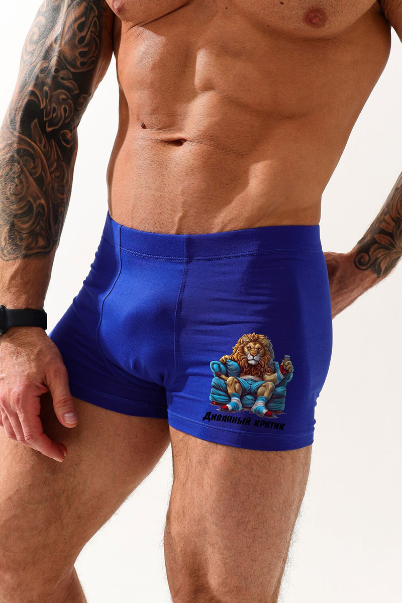 Трусы мужские "Диванный критик" кулирка с лайкрой пенье (последний размер) васильковый 52