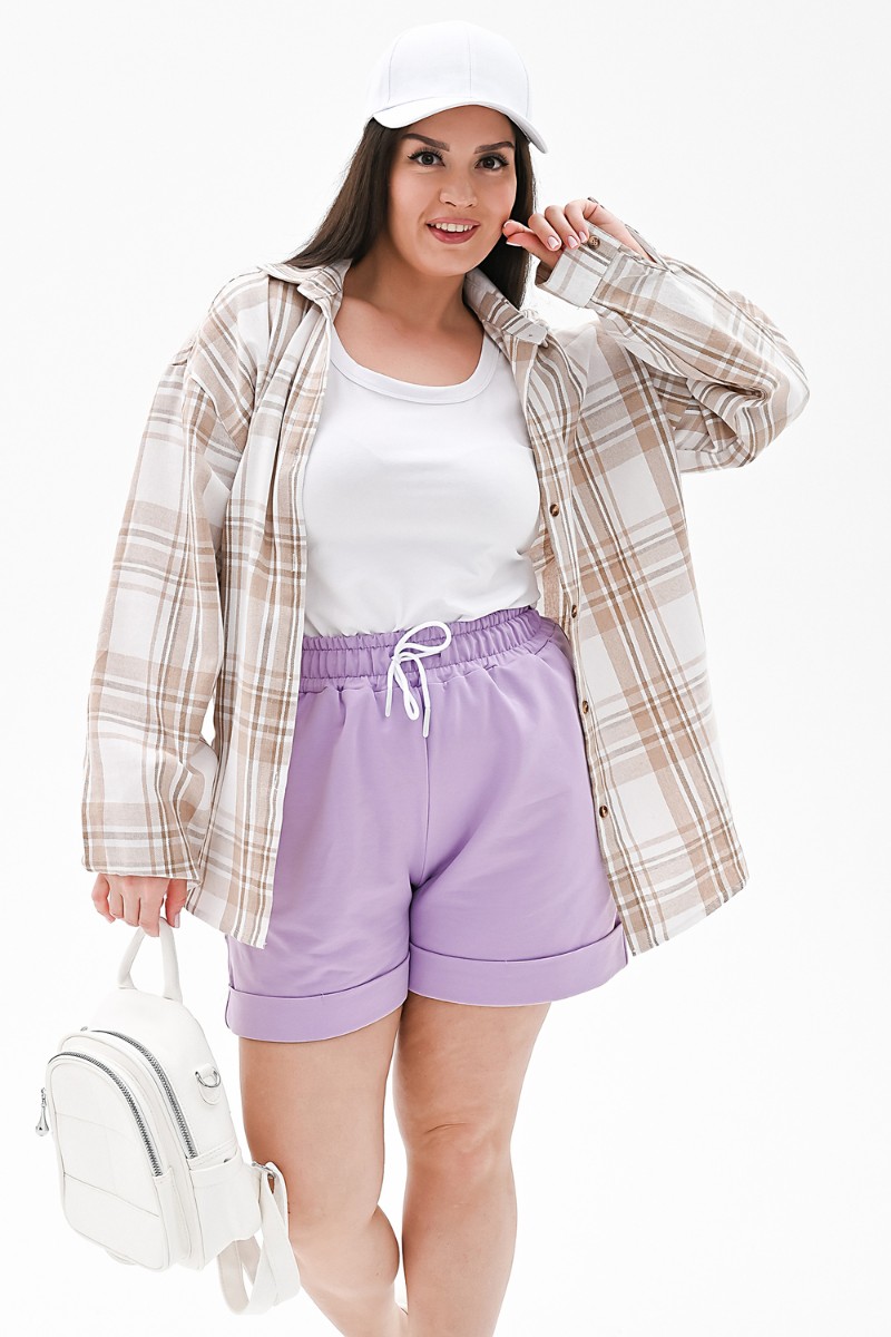 Шорты женские "Мозаика" футер 2-х нитка (р-ры: 42-52) сиреневый