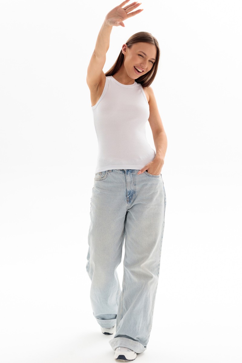 Представляем Вашему вниманию женскую майку в рубчик – трендовая и стильная модель в Вашем гардеробе для любого случая. Благодаря идеальной посадке майка лапша на широких бретелях деликатно облегает фигуру, отлично тянется и подчеркнет Вашу стройность и сексуальность. Майка женская выполнена из трикотажной хлопковой ткани премиум класса. Ткань в мелкий рубчик очень приятна к телу и на ощупь, мягкая и дышащая. Благодаря небольшому добавлению лайкры в составе, эластичный кроп топ с открытыми плечами без рукавов в рубчик хорошо держит форму, не вытягивается и не скатывается. Круглый вырез горловины и проймы изделия обработаны бейкой из основного полотна.