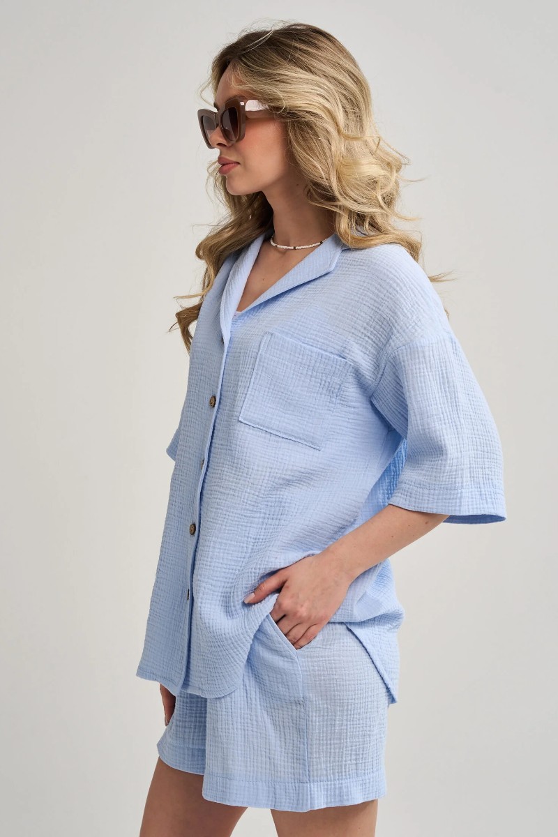 Представляем Вашему вниманию легкий женский костюм двойку, сшитый из натурального, приятного телу муслина - 100% хлопок, позволяющий коже дышать. Комплект обеспечит полную свободу движений в повседневной носке. В нём Вы будете чувствовать себя комфортно и уверенно.