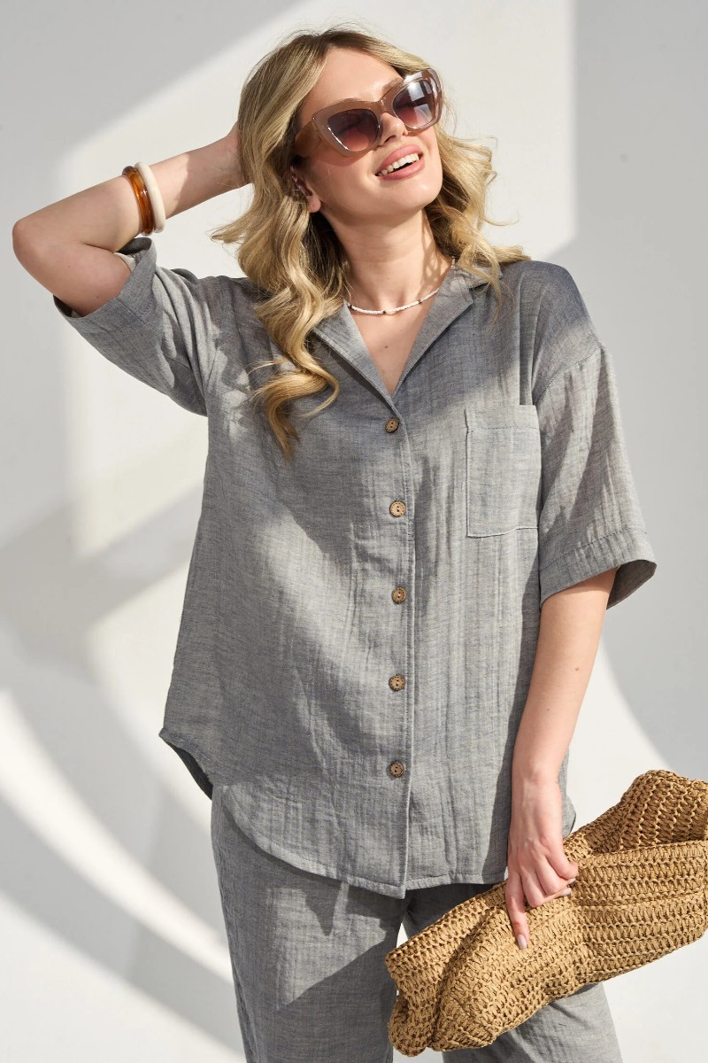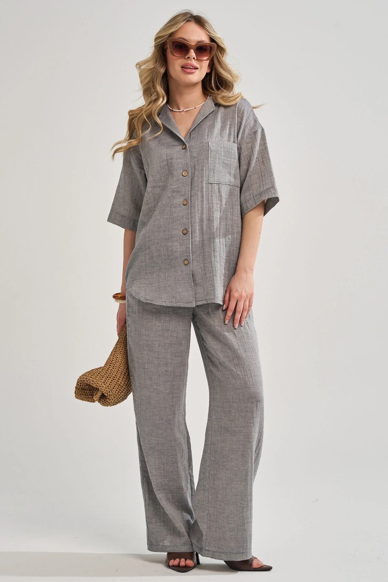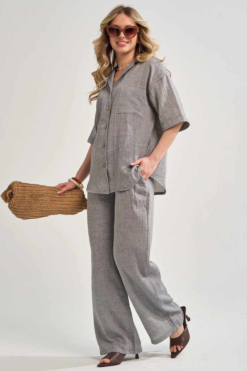 Представляем Вашему вниманию легкий женский костюм двойку, сшитый из натурального, приятного телу муслина - 100% хлопок, позволяющий коже дышать. Комплект обеспечит полную свободу движений в повседневной носке. В нём Вы будете чувствовать себя комфортно и уверенно.