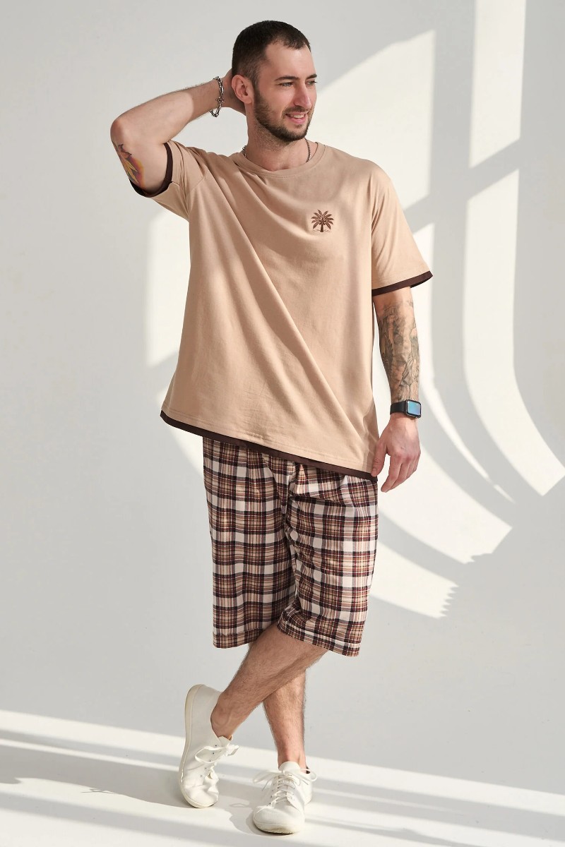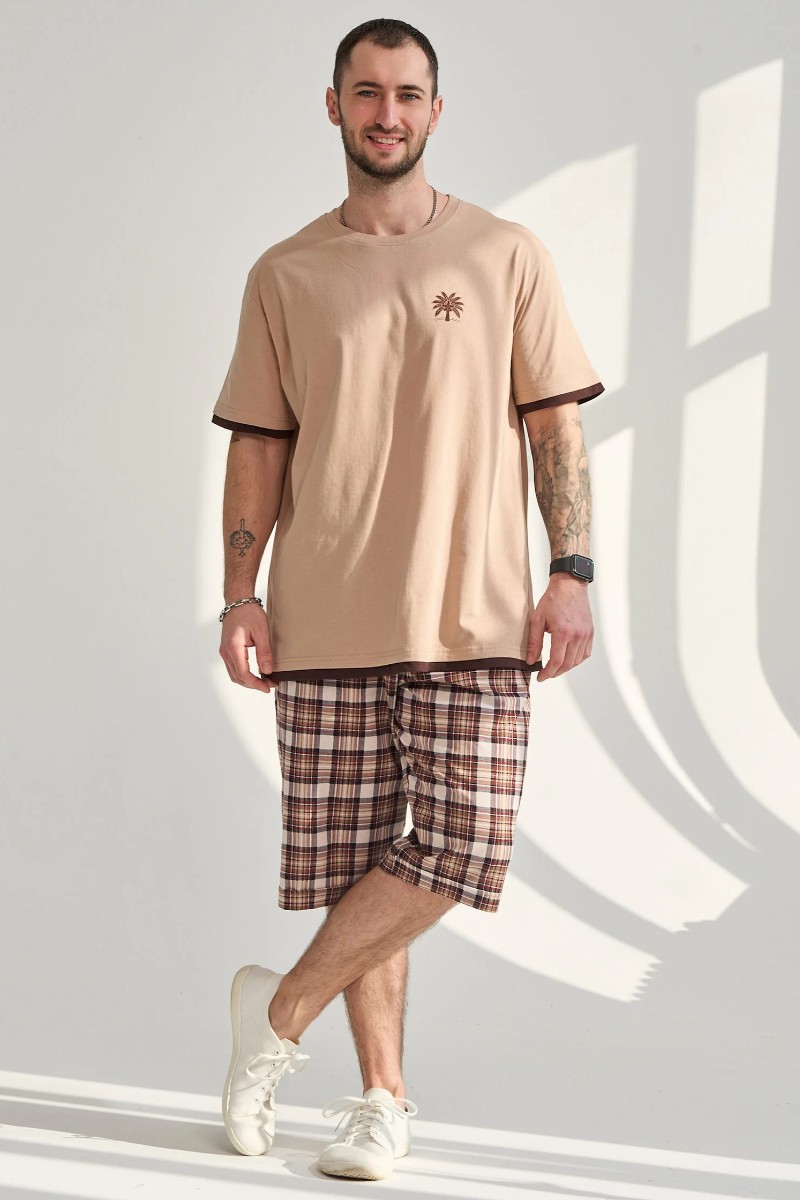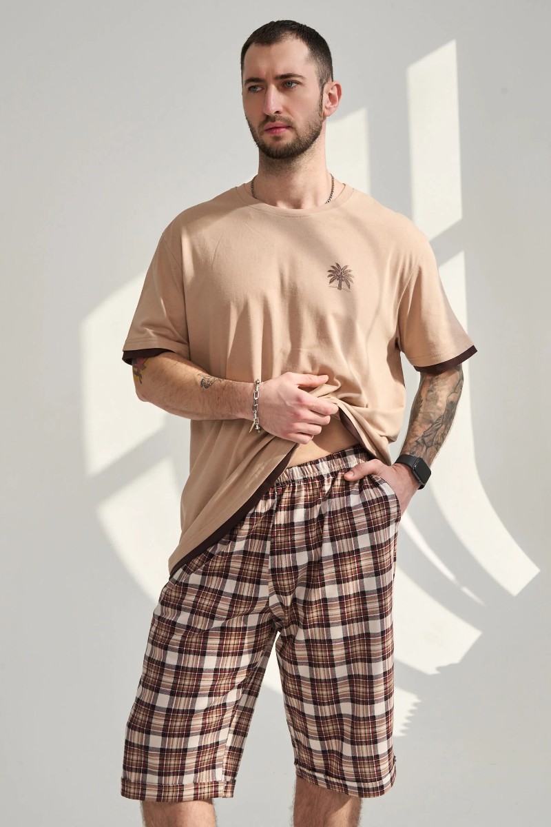 Костюм двойка мужской "Пальма" 2456-К хлопок (р-ры: 48-58) бежевый