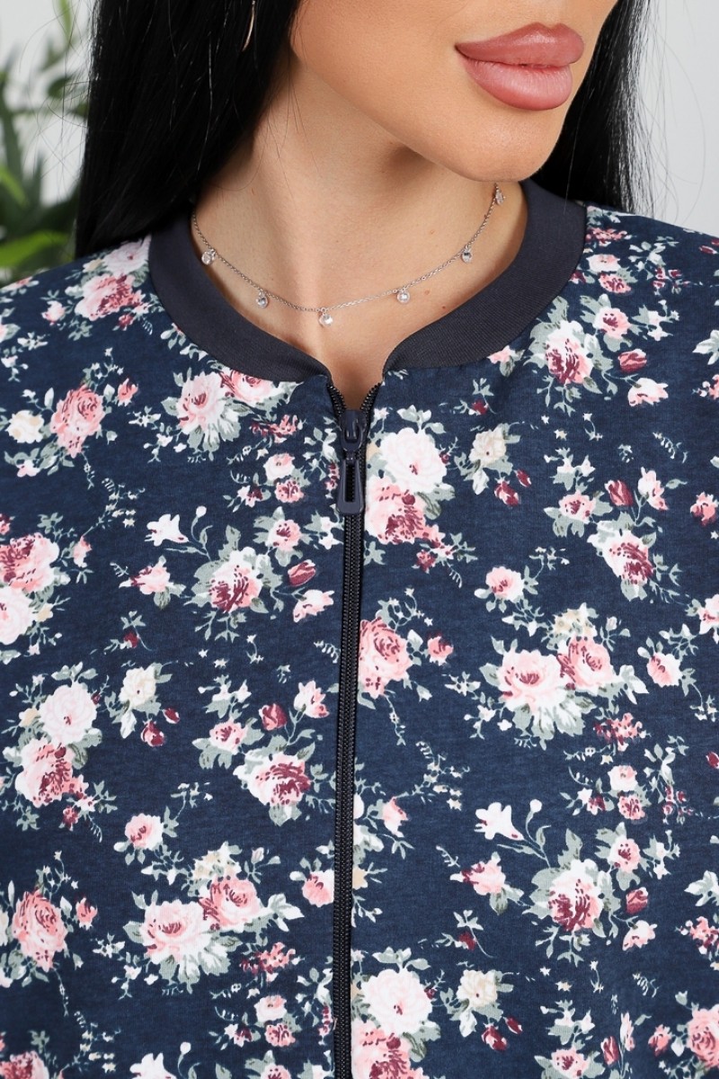 Толстовка-бомбер женская 750 футер 2-х нитка (р-ры: 50-60) синий-роза