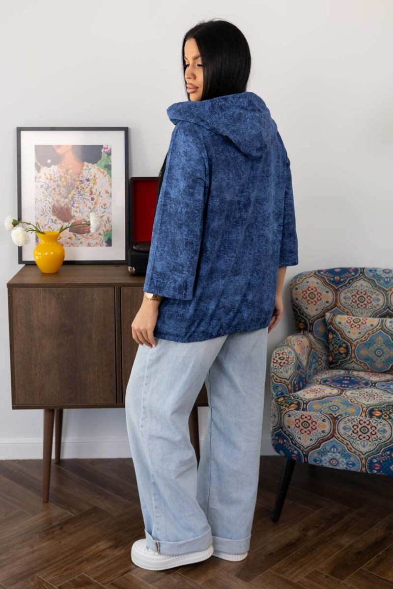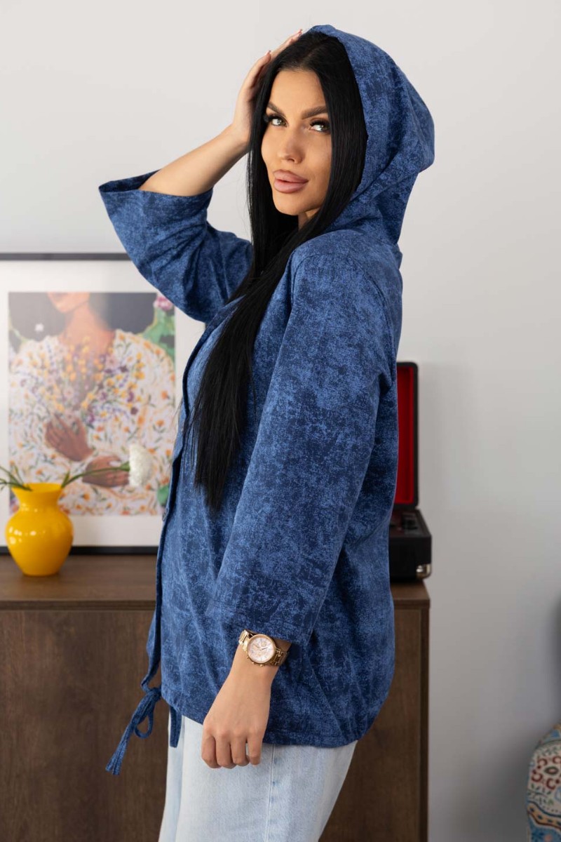 Представляем Вашему вниманию женскую рубашку с капюшоном, сшитую из 100% хлопка. Модель на пуговицах и кулиске, с рукавом 3/4. Туника выполнена из набивной кулирки турецкого качества.