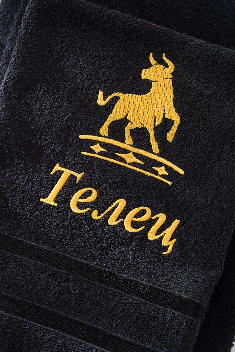 Полотенце махровое с вышивкой "Знаки зодиака" 14418/10 черный Телец (последний размер) 50х80