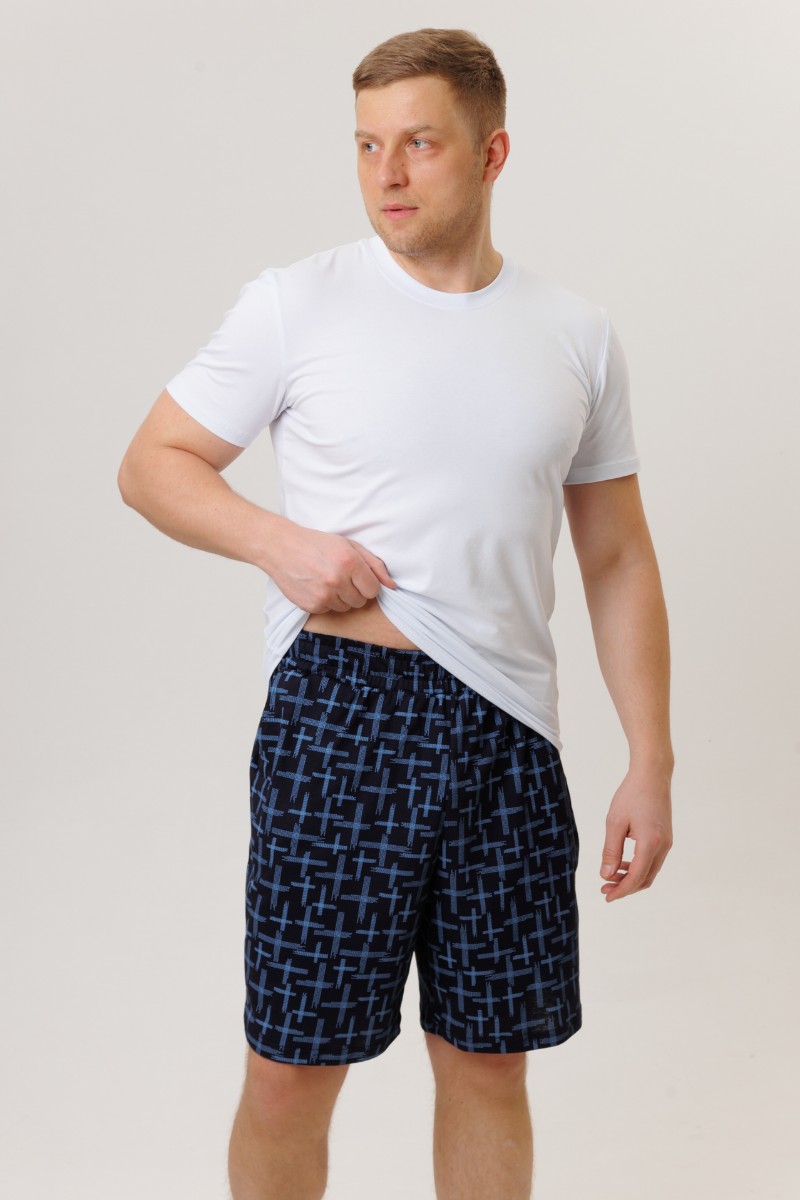 Шорты мужские №1942/4 кулирка (р-ры: 50-60) синие плюсики