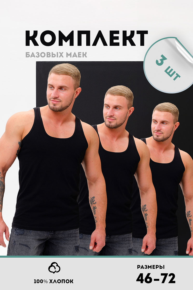 Майка мужская №14483 "Захар" кулирка (р-ры: 46-72) черный - набор 3 шт.