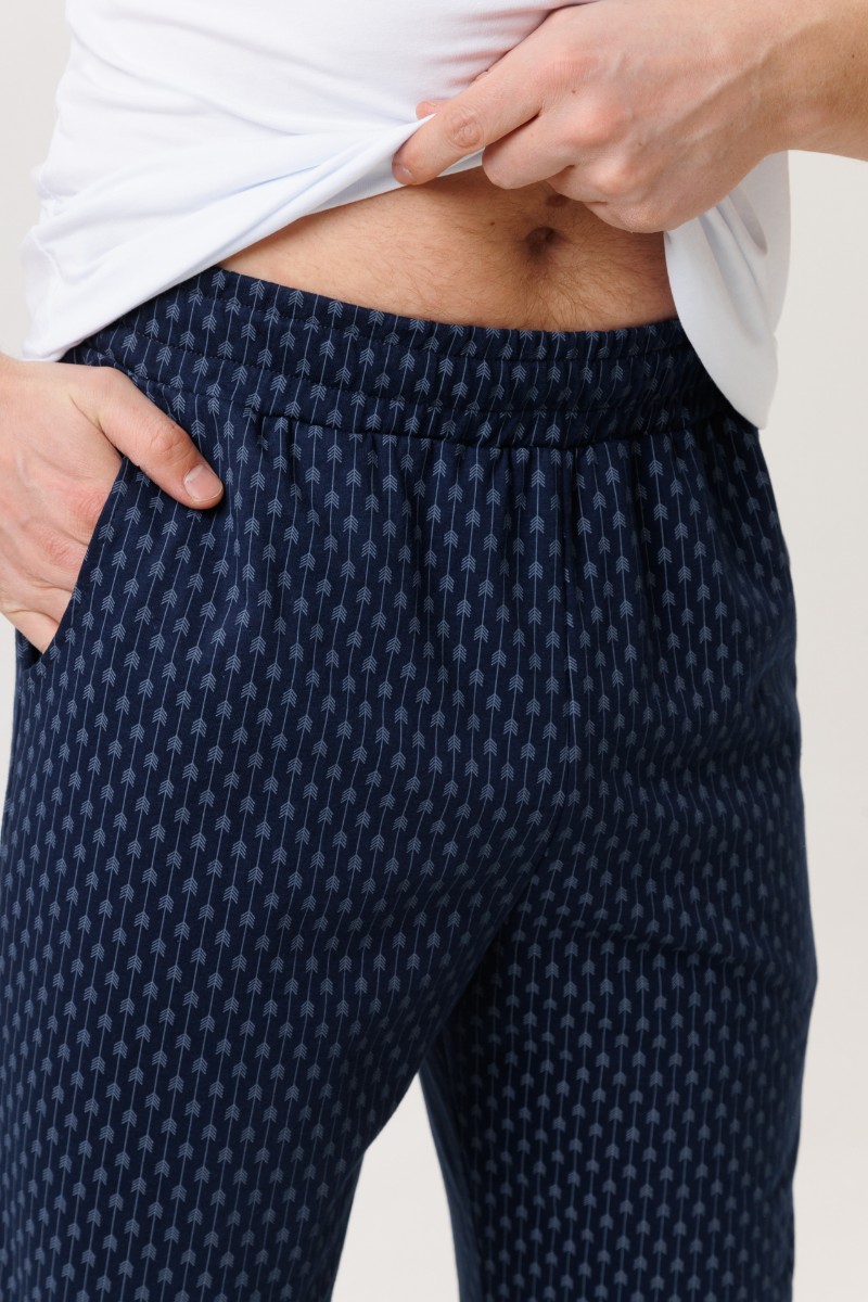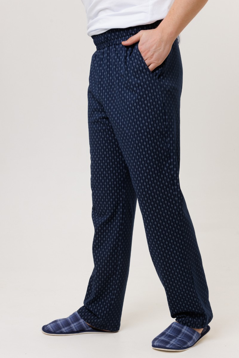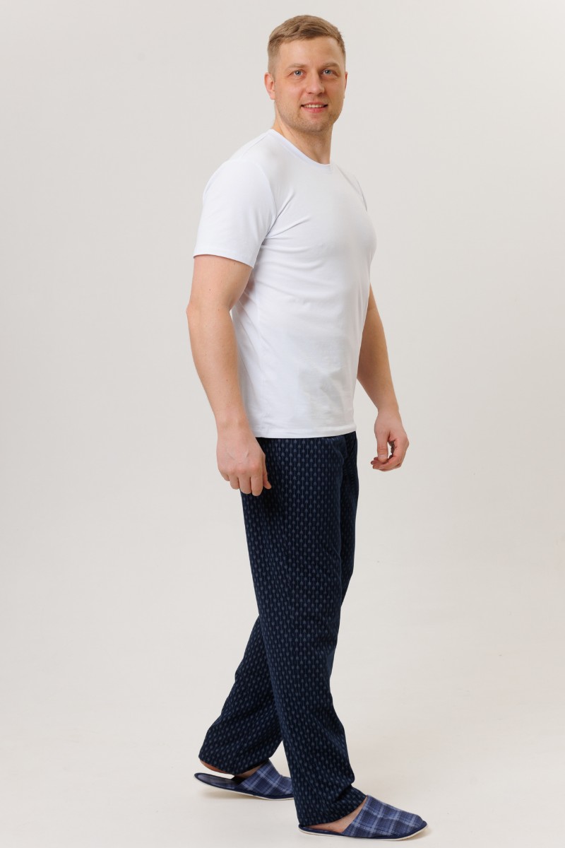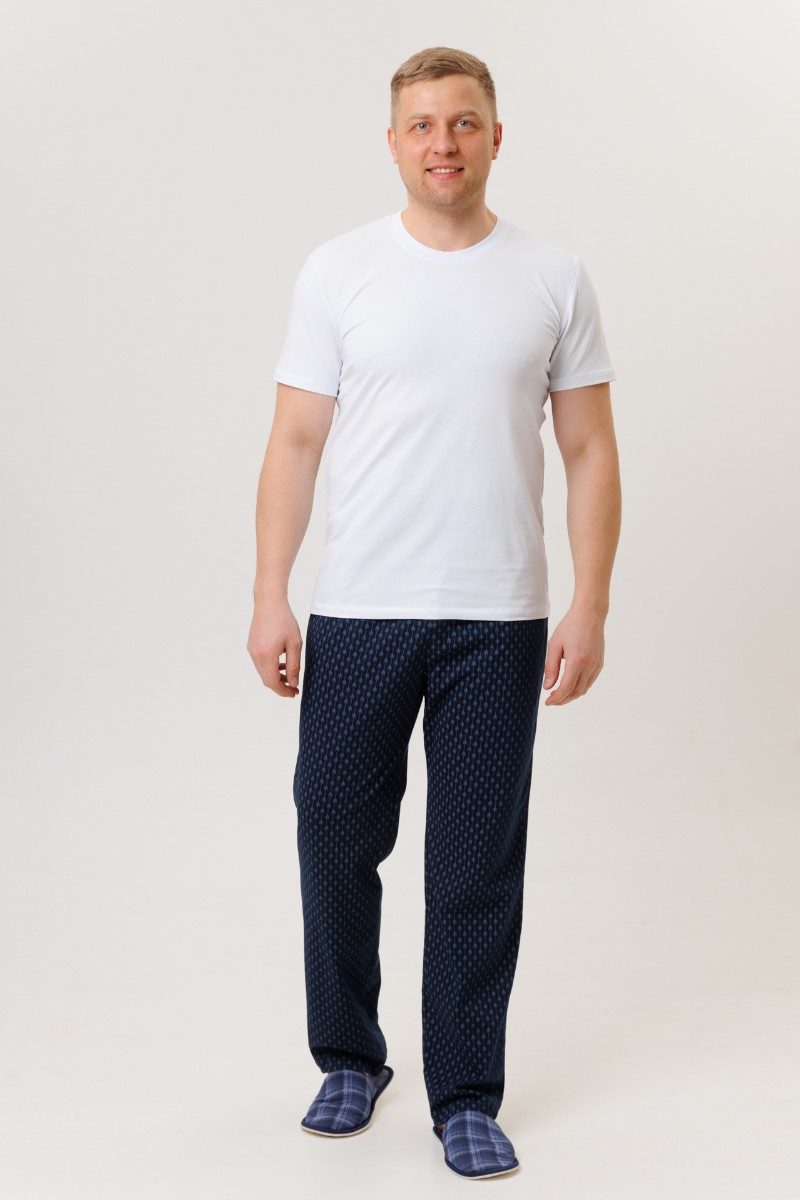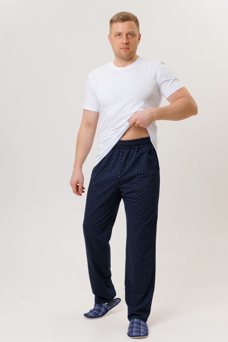 Представляем Вашему вниманию домашние мужские брюки, сшитые из трикотажного полотна. Трикотажные брюки имеют эластичную резинку и завязки на талии. В боковые швы вшиты карманы. Мужские трикотажные брюки обеспечивают максимальный комфорт, сохраняя при этом стильный вид. Их можно носить в любое время года. Брюки подходят как для высоких мужчин, так и для мужчин большого размера.