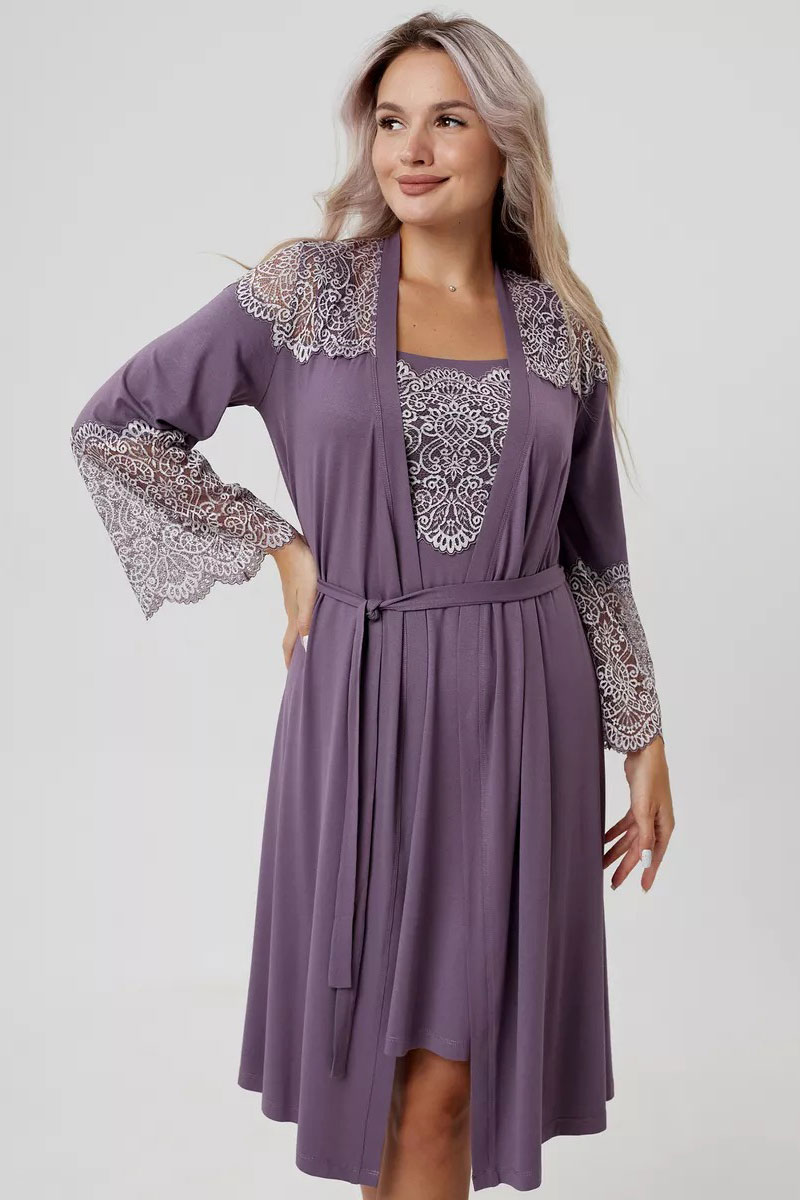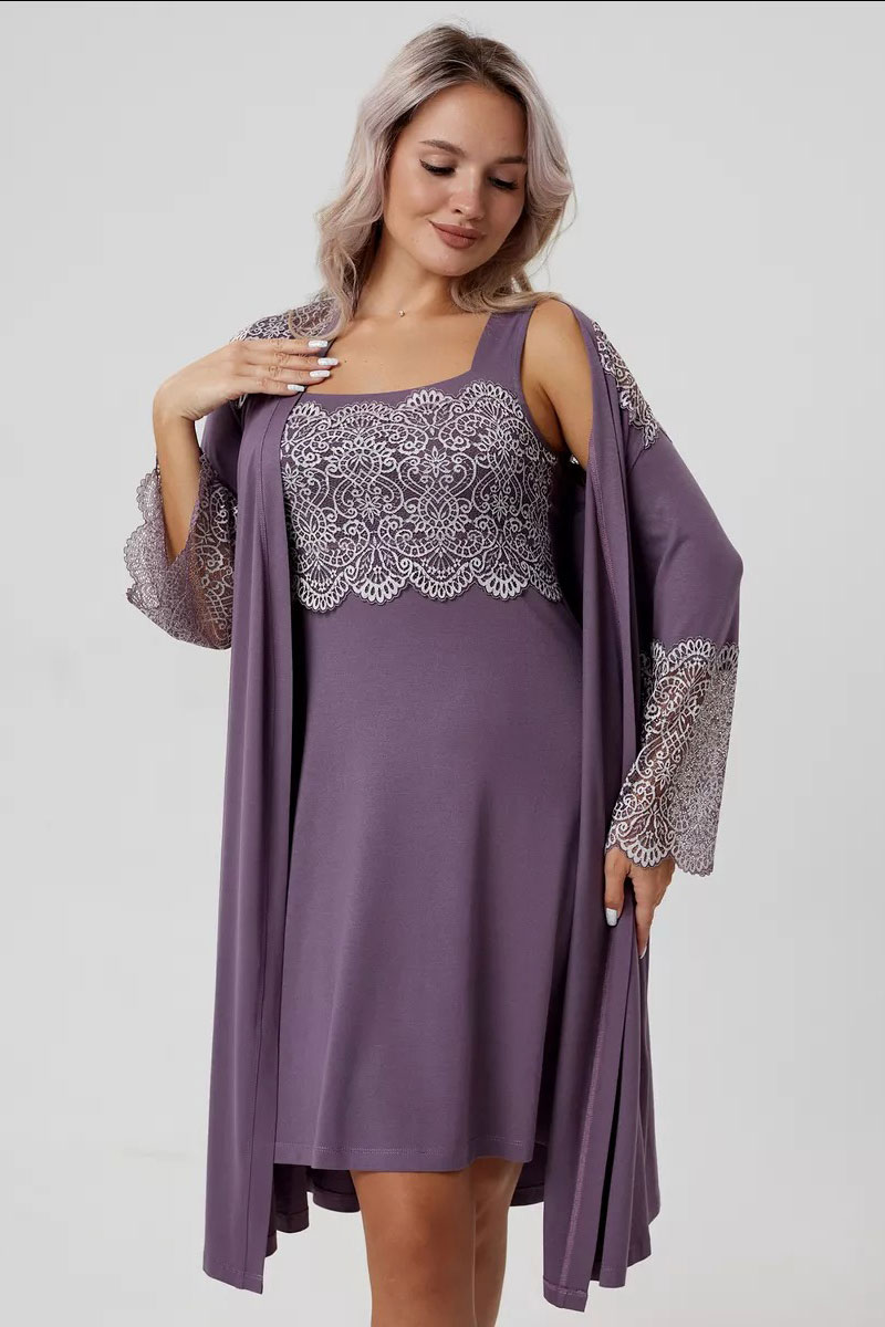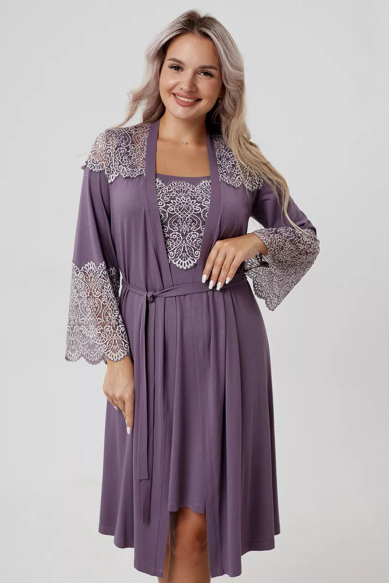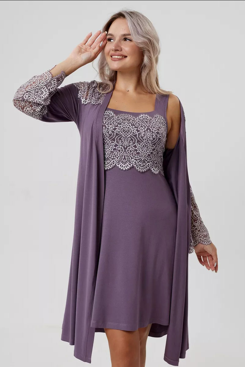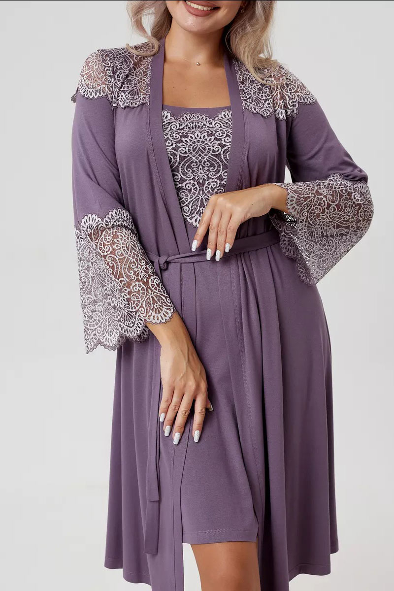 Пеньюар двойка женский "Мадонна" вискоза с кружевом (р-ры: 42-60) сирень
