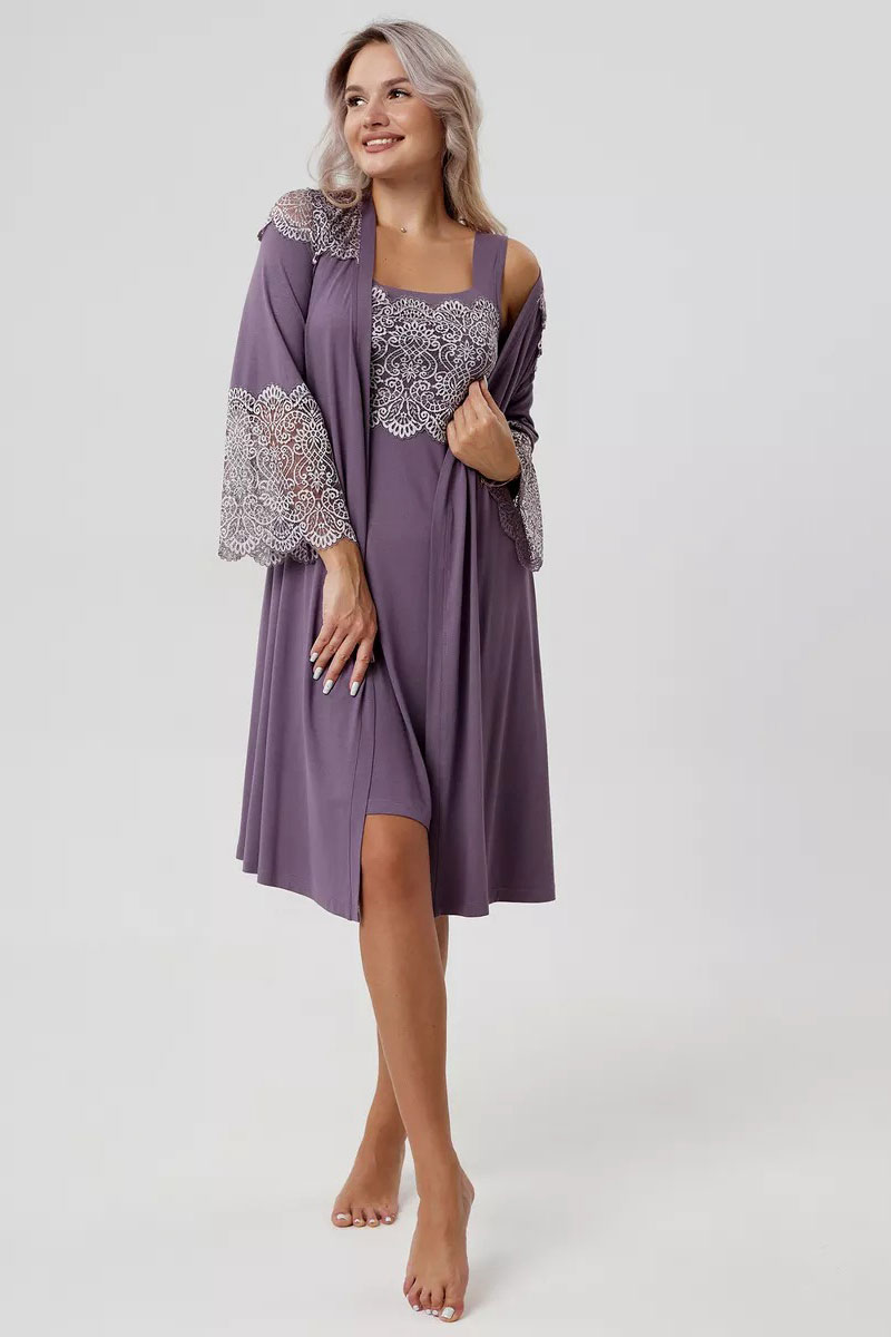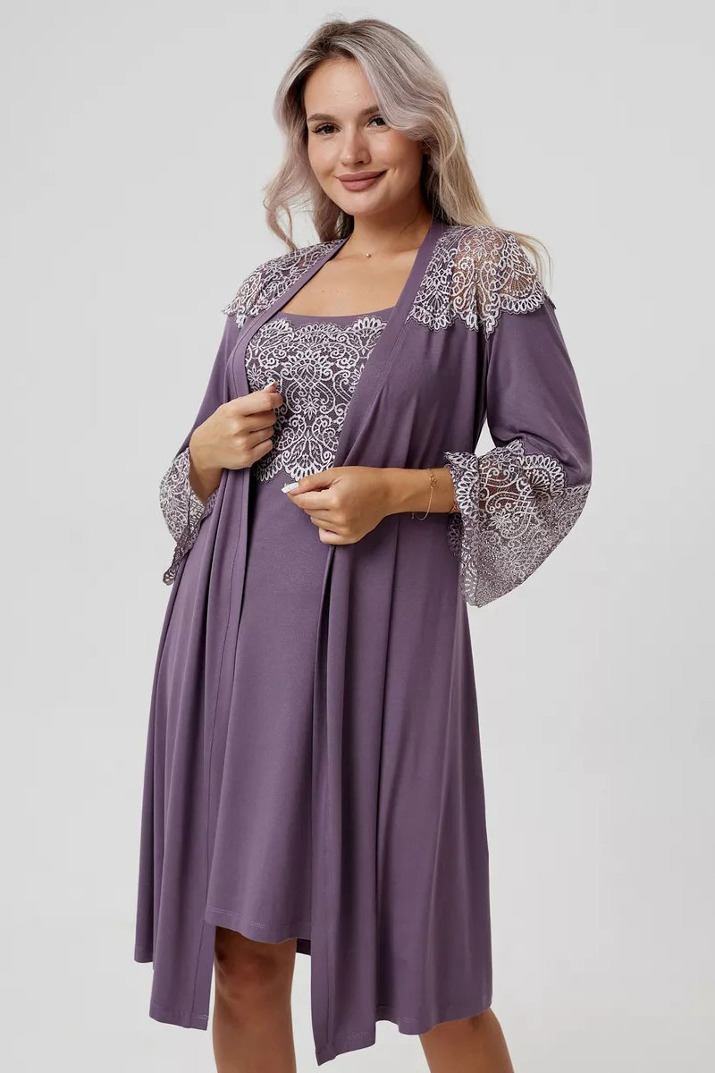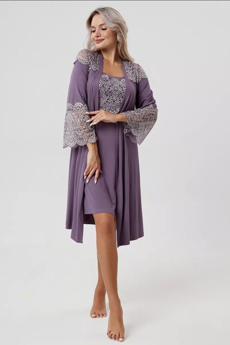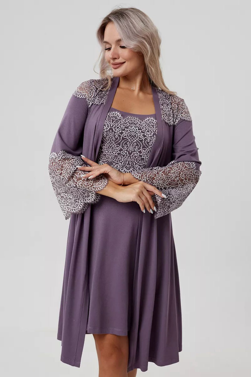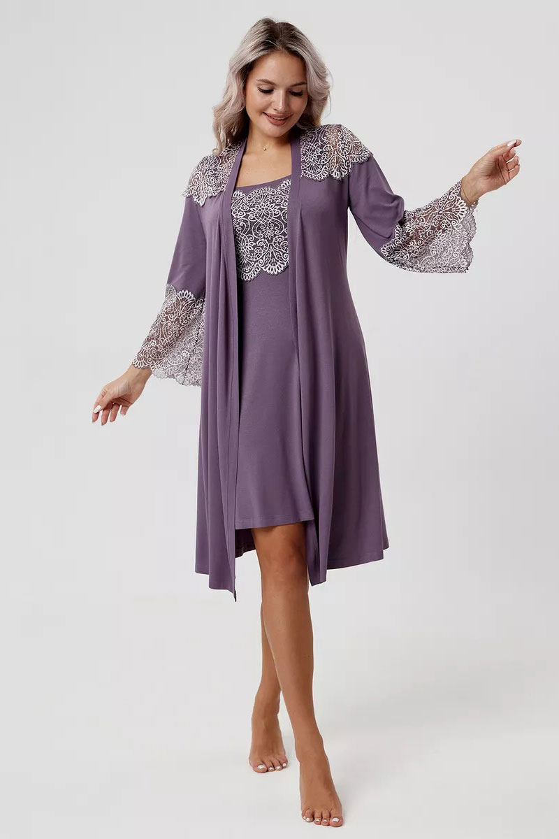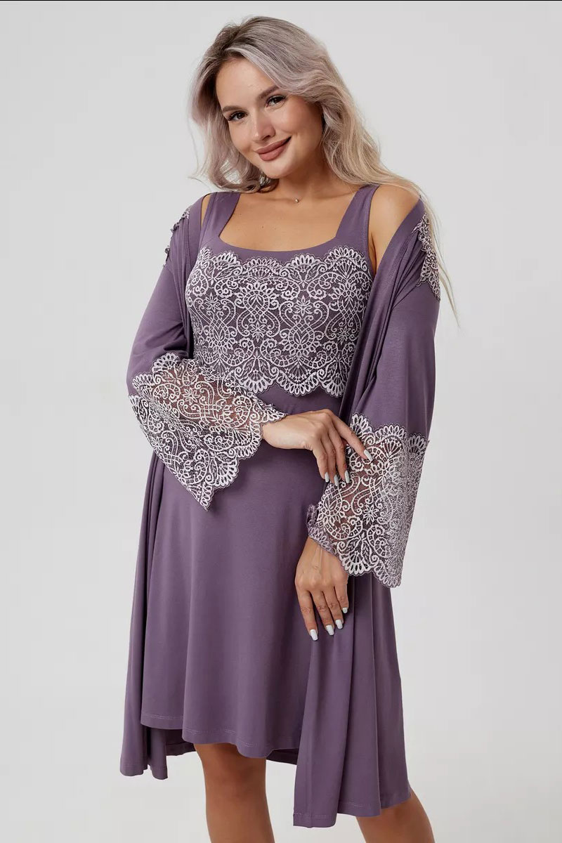 Пеньюар двойка женский "Мадонна" вискоза с кружевом (р-ры: 42-60) сирень