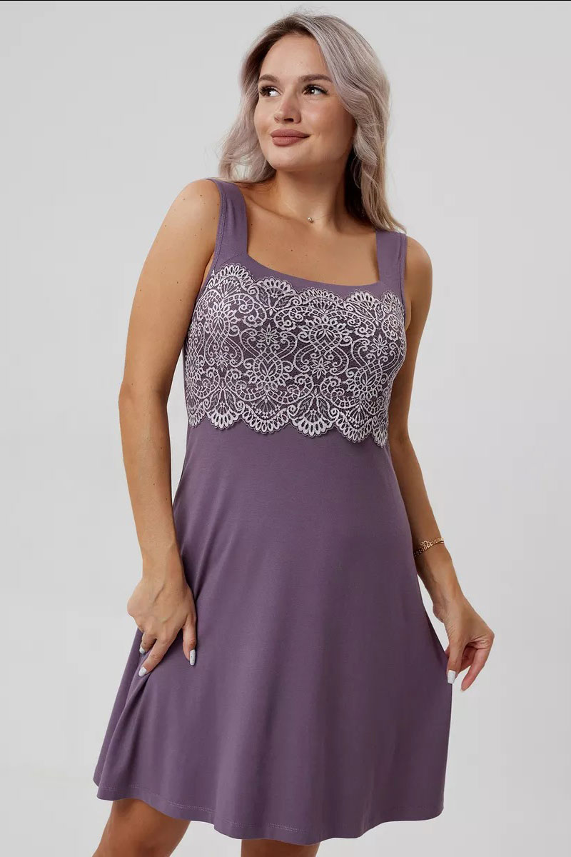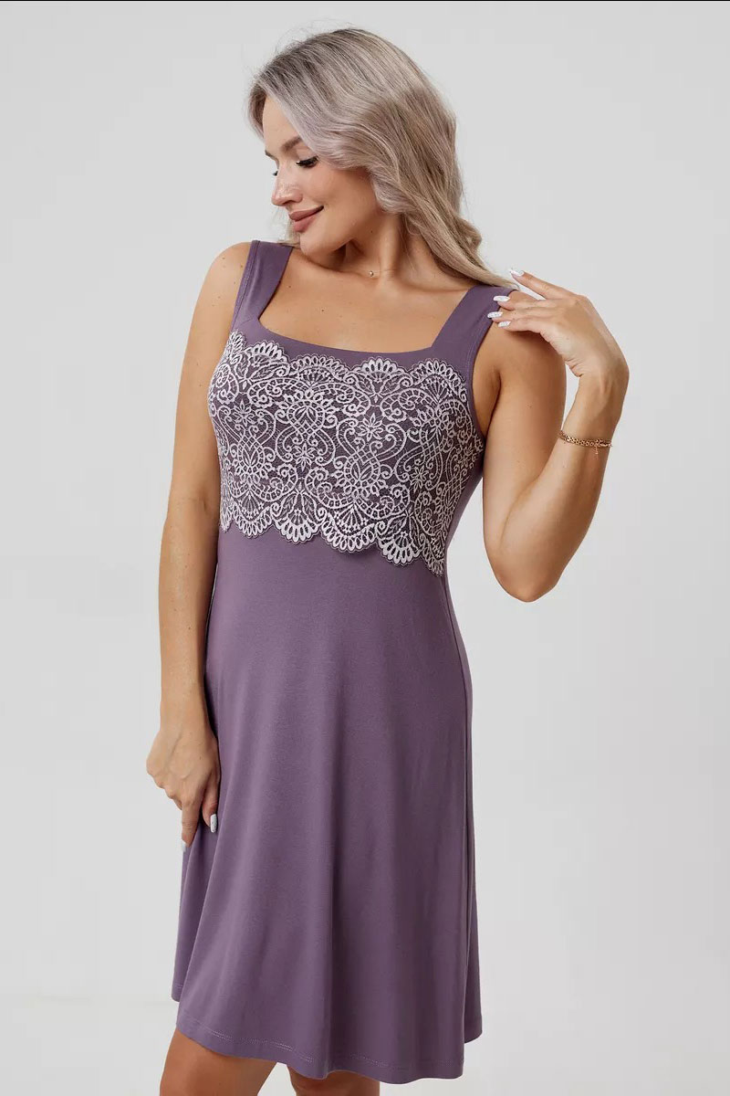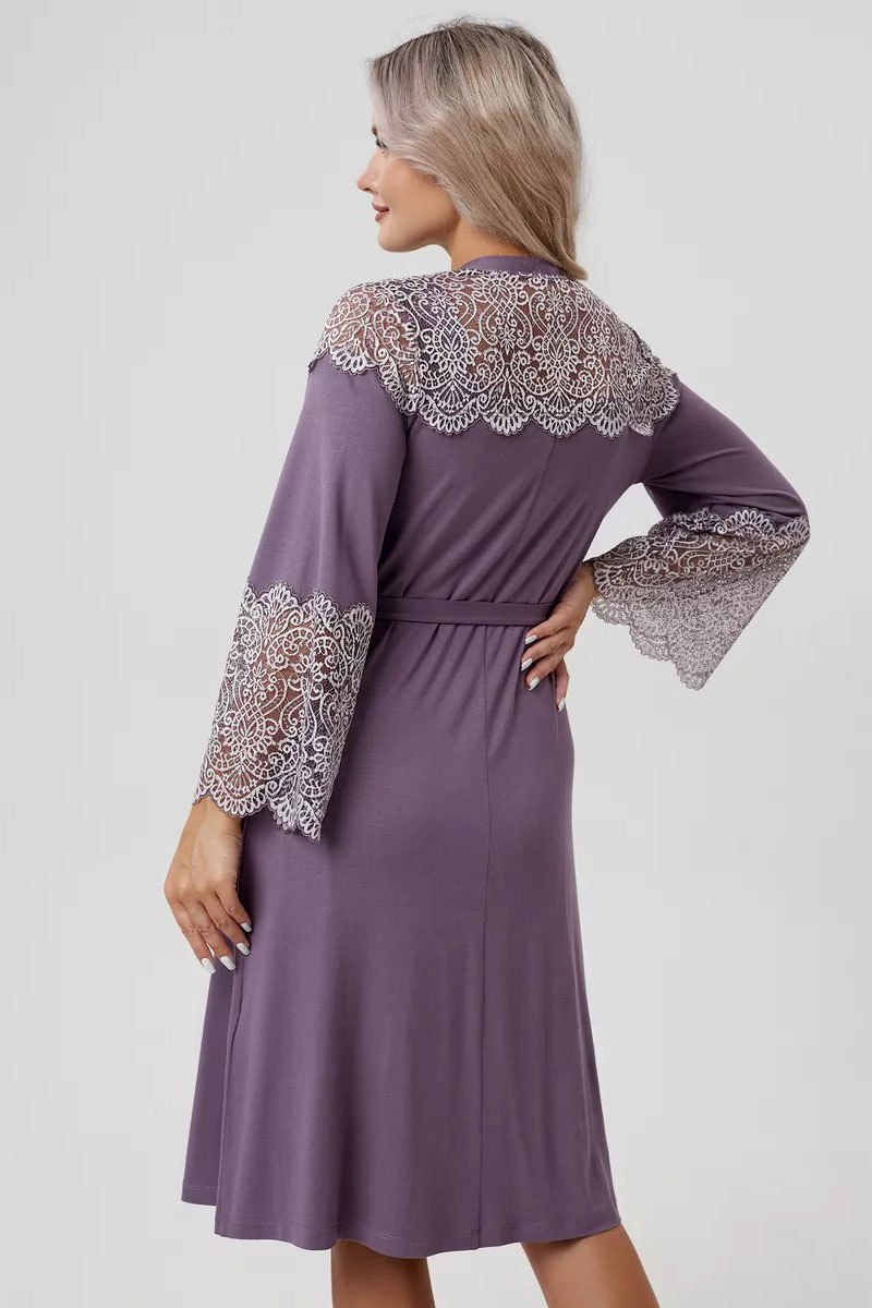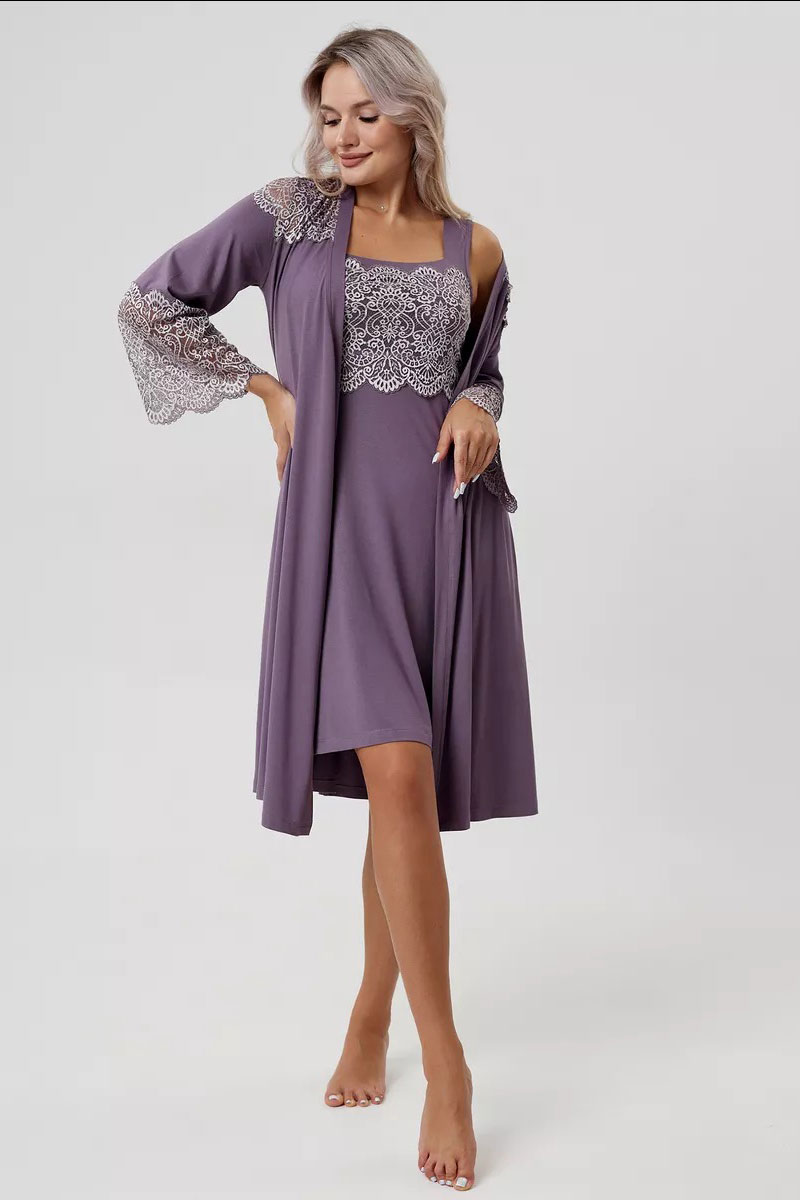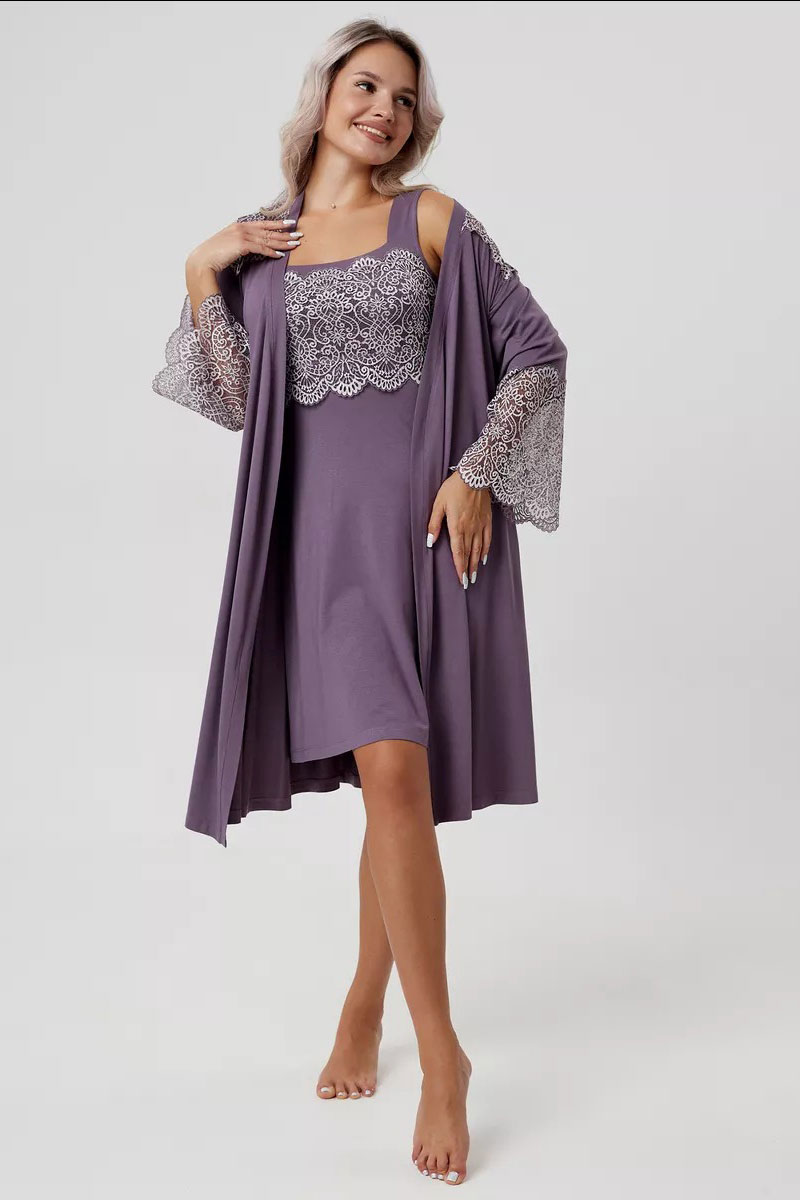 Пеньюар двойка женский "Мадонна" вискоза с кружевом (р-ры: 42-60) сирень