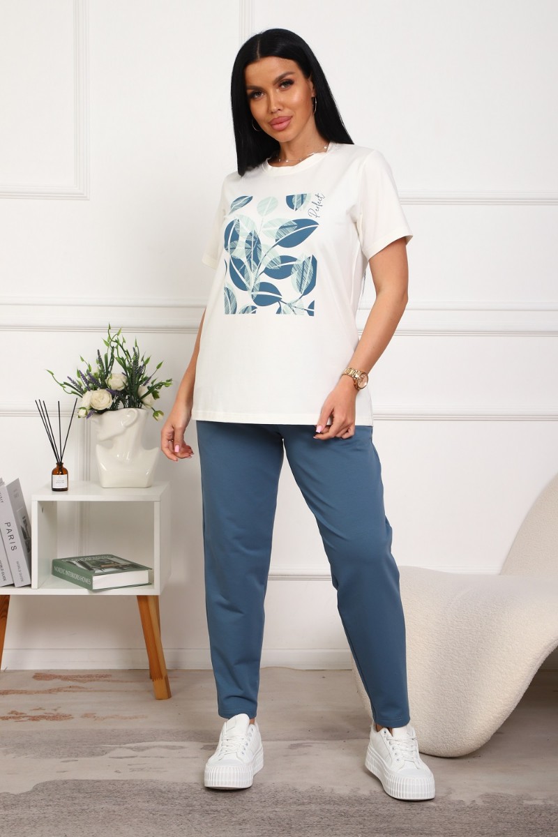 Костюм двойка женский №1102 кулирка-футер (р-ры: 46-54) экрю