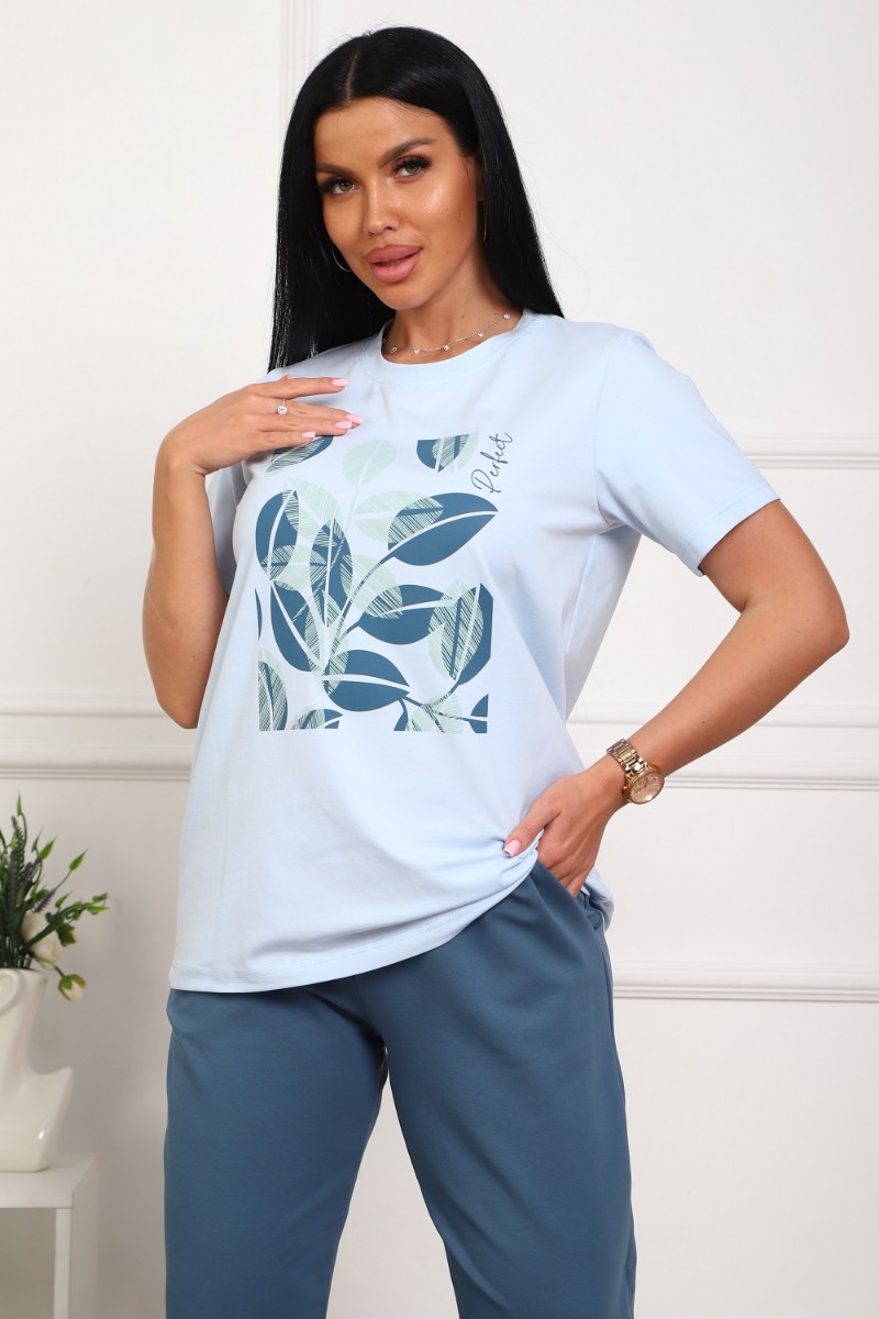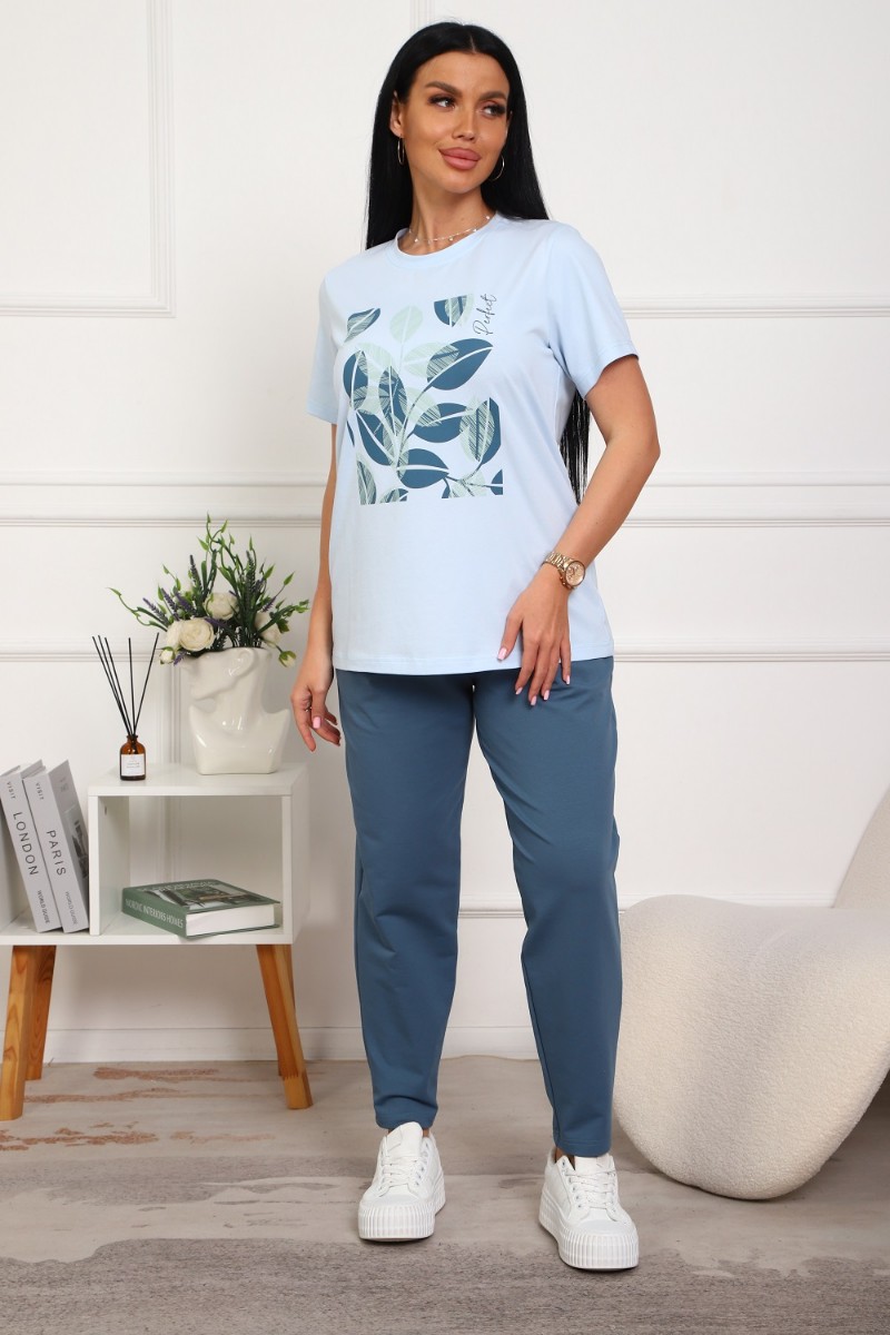 Костюм двойка женский №1102 кулирка-футер (р-ры: 46-54) голубой