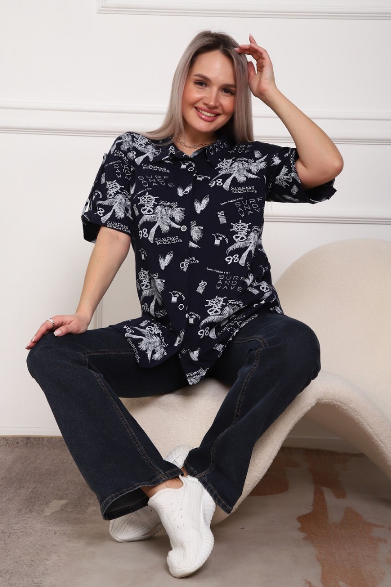 Рубашка женская №5005 кулирка (р-ры: 52-62) синий