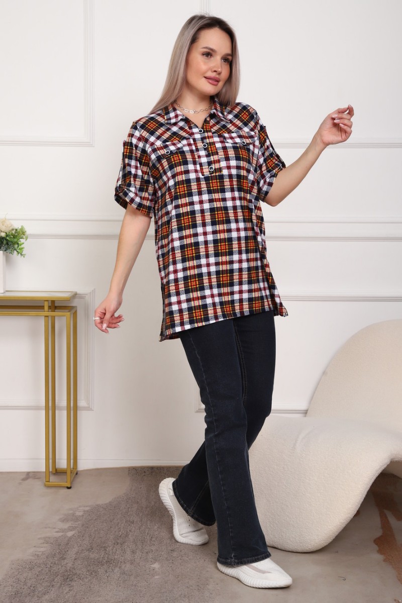 Туника женская №5004 кулирка (р-ры: 50-64) оранжевая клетка