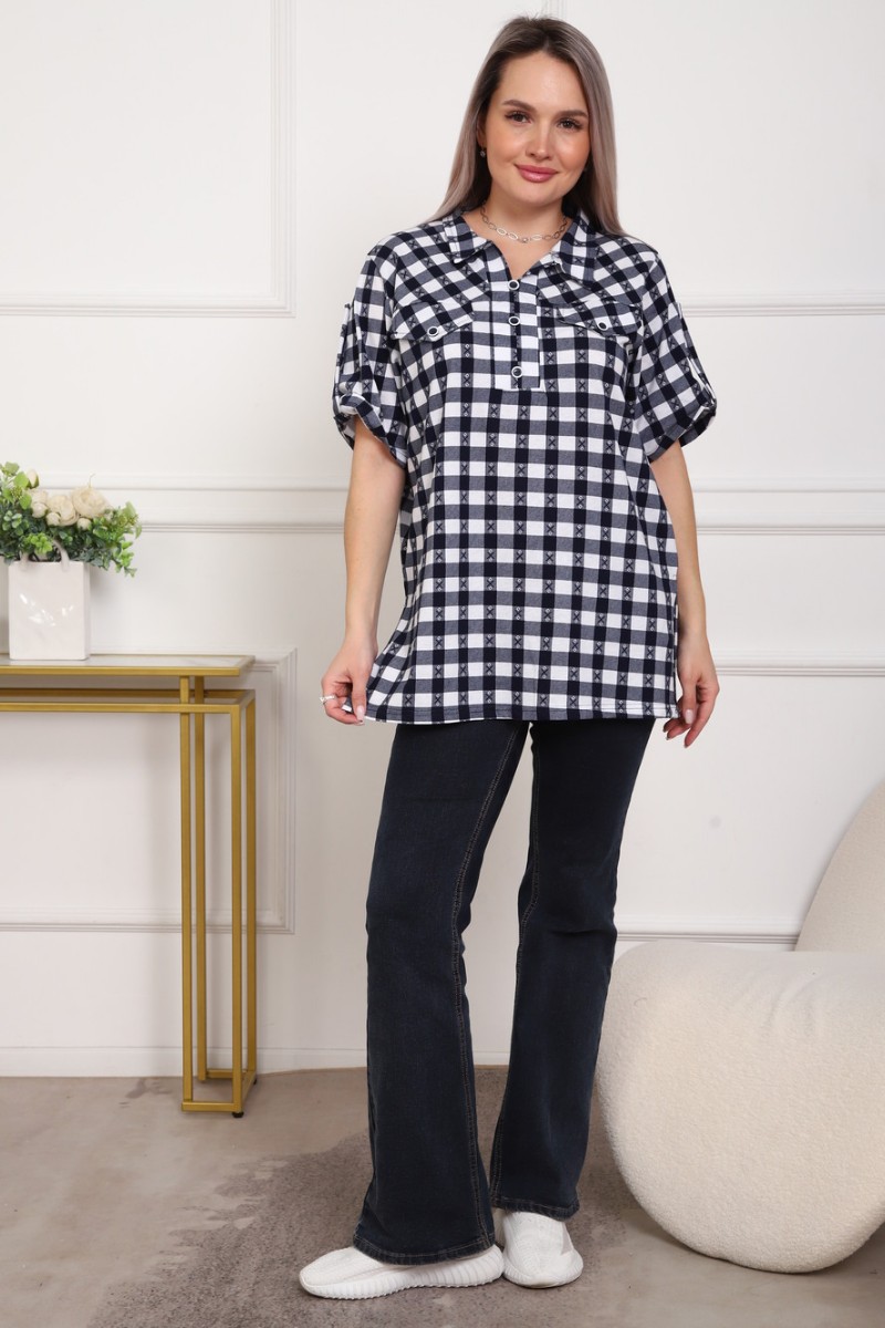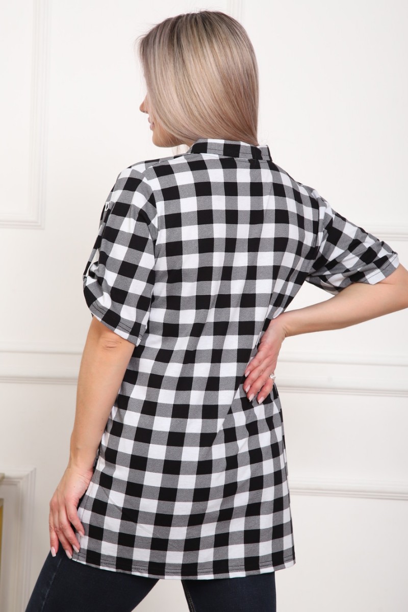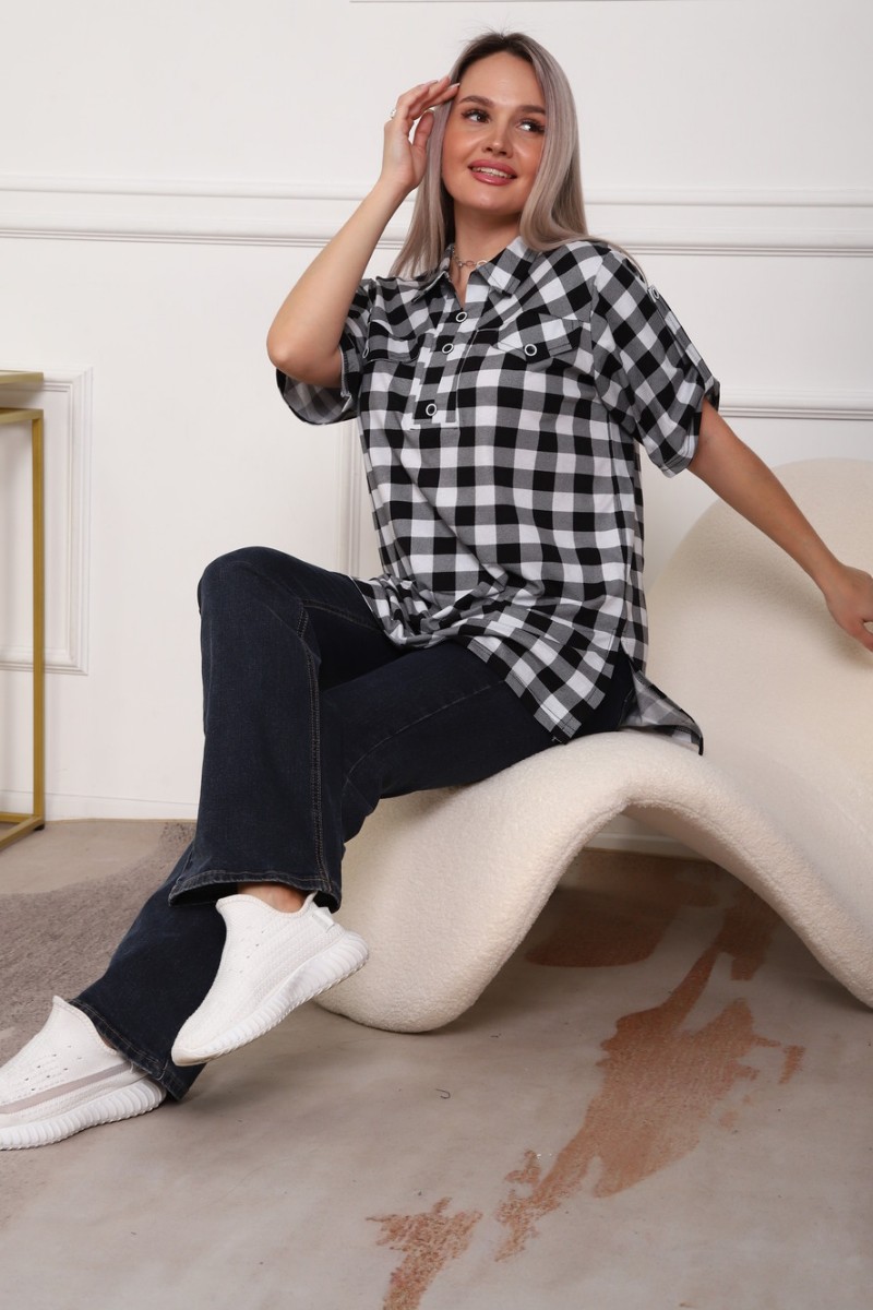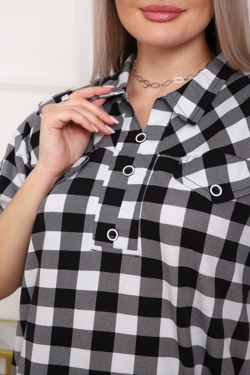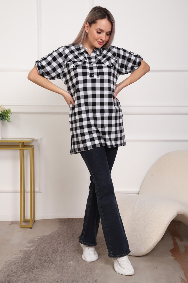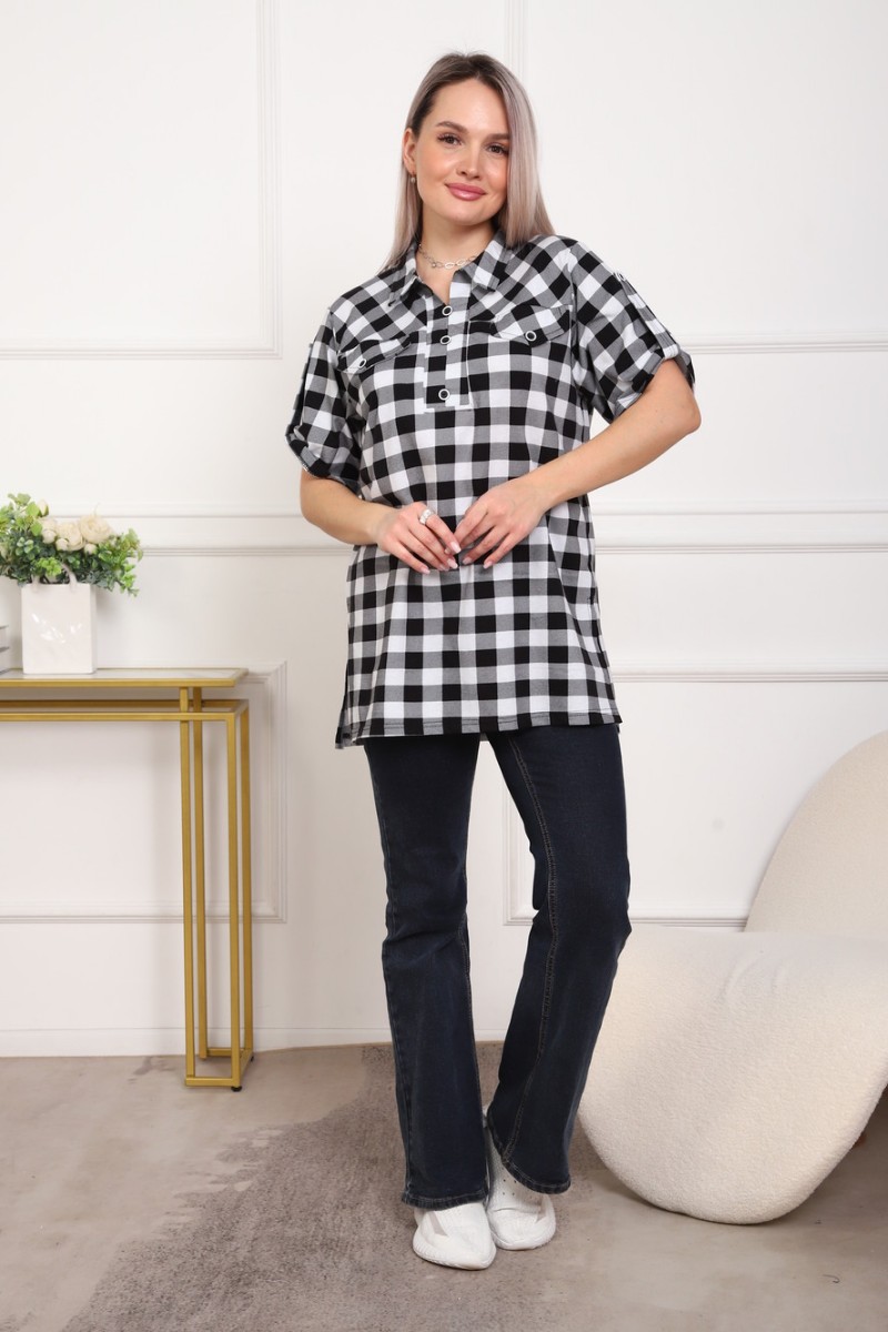 Туника женская №5004 кулирка (р-ры: 50-64) черный-клетка