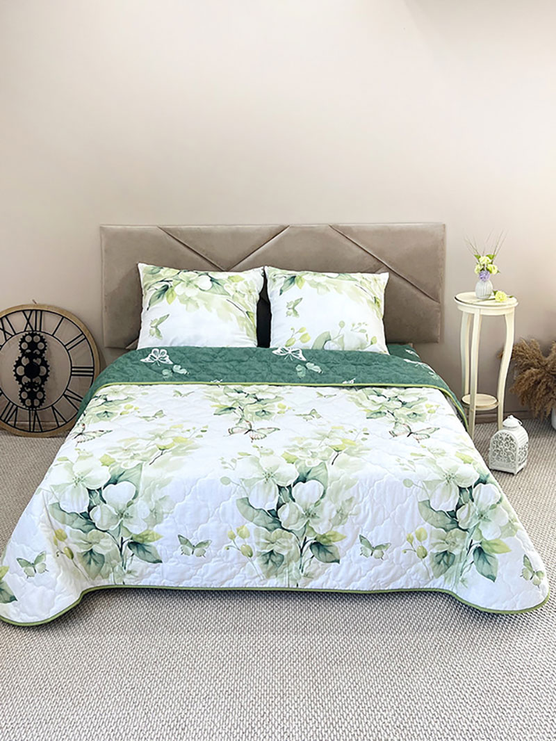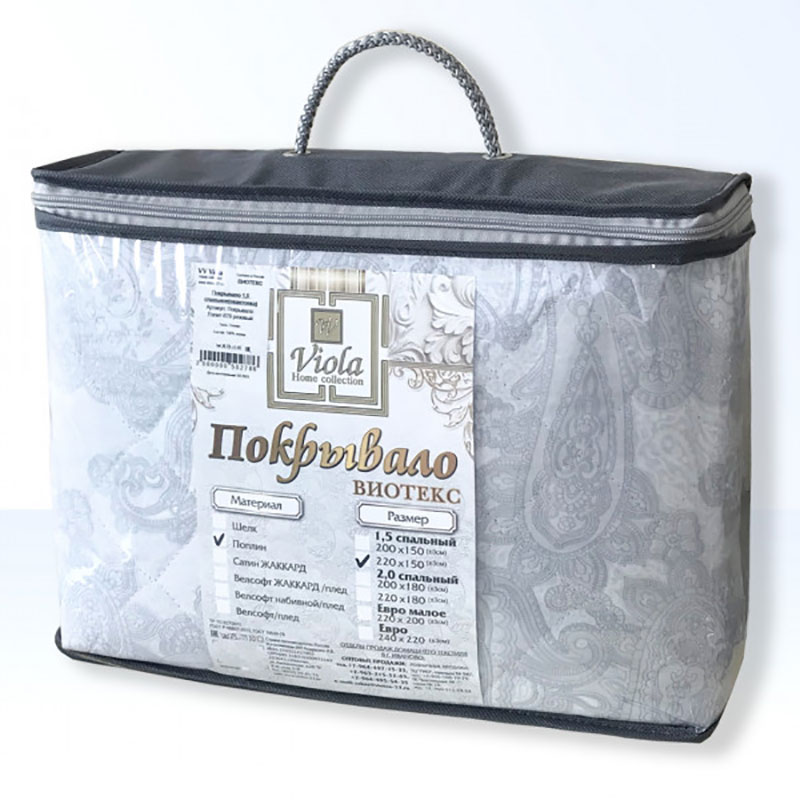 Покрывало изготовлено из качественного дышащего поплина с наполнителем из синтепона. Легко стирать и ухаживать. Даже после длительной эксплуатации и многочисленных стирок покрывало не потеряет форму, а наполнитель не выбьется наружу.