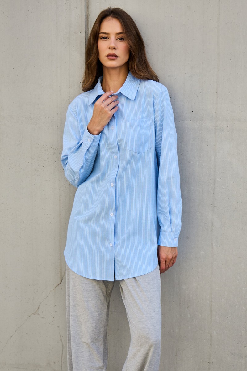 Рубашка женская №058834 полулён-поплин (р-ры: 42-56) голубой