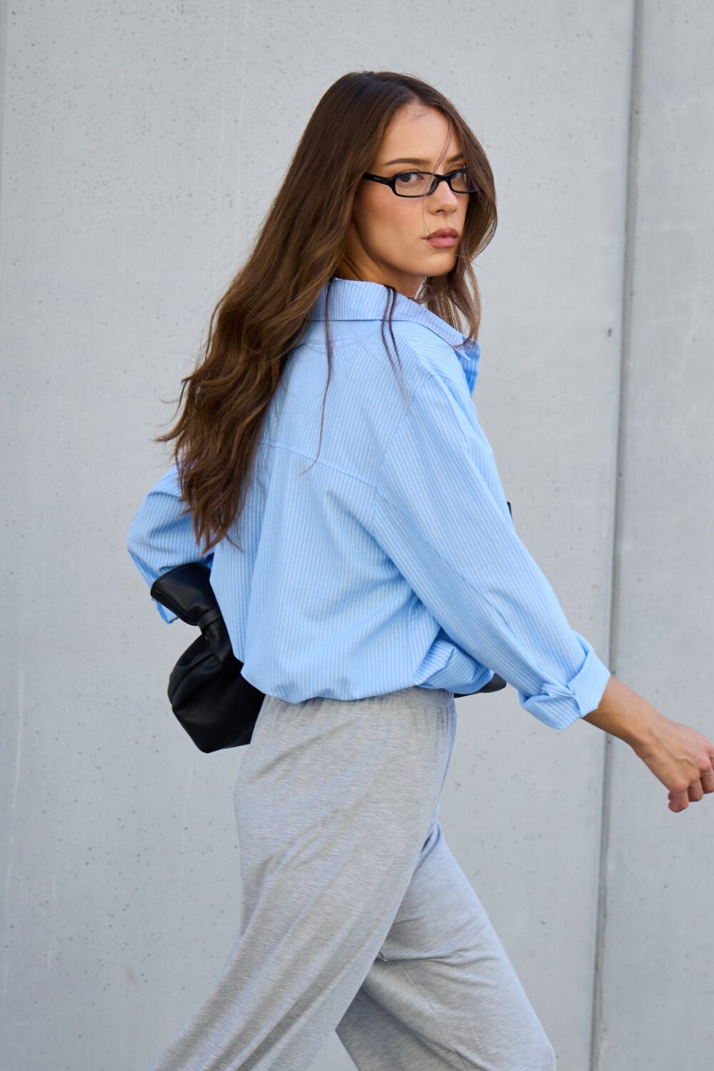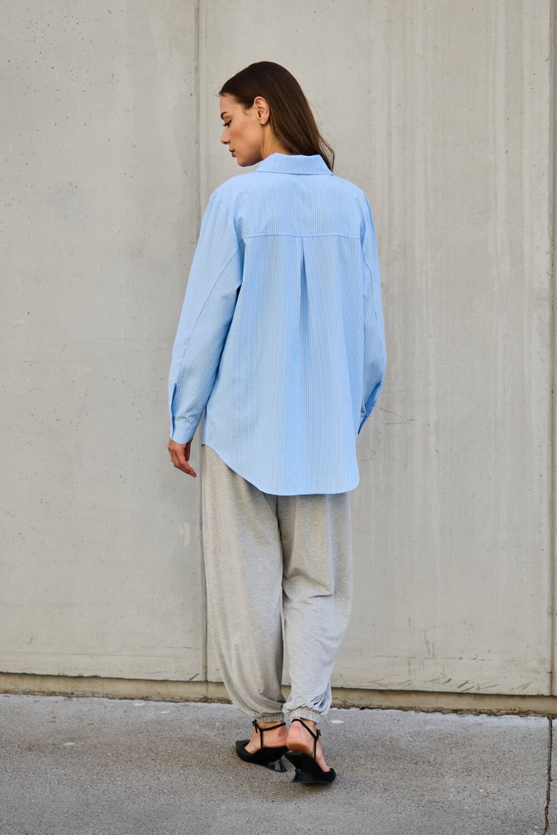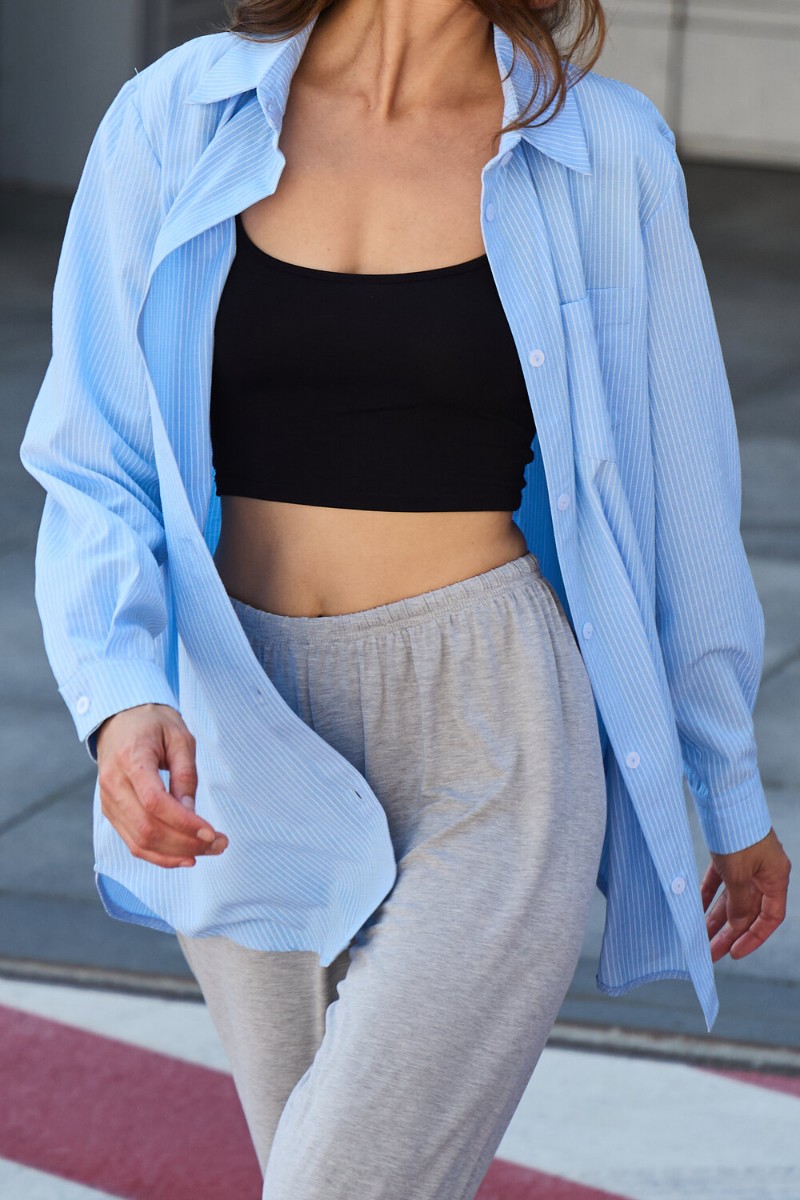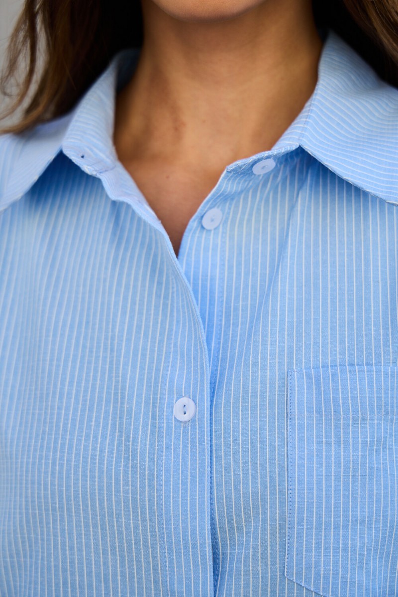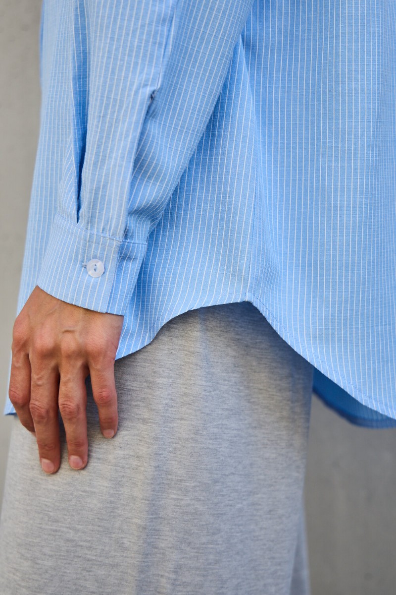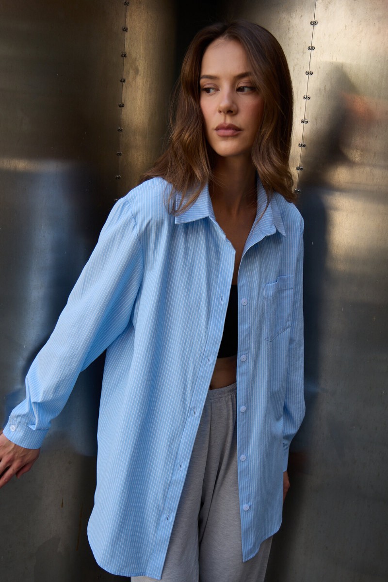 Изысканность в каждой детали: удлиненный силуэт, элегантный длинный рукав и широкий воротник придают этой полосатой рубашке особый шарм. Она станет вашим верным спутником на романтических свиданиях, обеспечит комфорт в школе и подчеркнет профессионализм в офисе. Легкость и дышащие свойства хлопка гарантируют непревзойденное ощущение свежести.