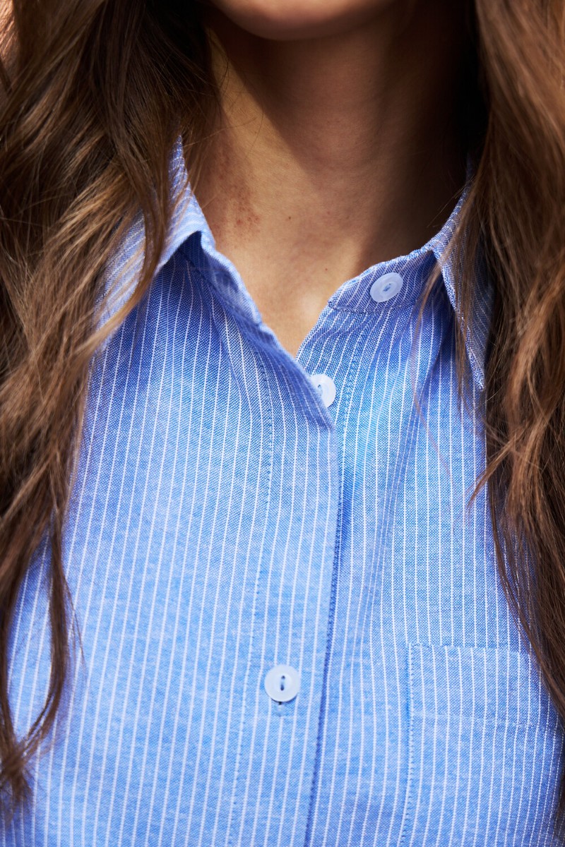 Изысканность в каждой детали: удлиненный силуэт, элегантный длинный рукав и широкий воротник придают этой полосатой рубашке особый шарм. Она станет вашим верным спутником на романтических свиданиях, обеспечит комфорт в школе и подчеркнет профессионализм в офисе. Легкость и дышащие свойства хлопка гарантируют непревзойденное ощущение свежести.