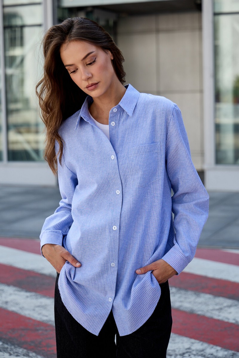 Представляем Вашему вниманию изящную женскую рубашку в полоску. Эта базовая модель из натурального хлопка – настоящее воплощение комфорта и стиля.