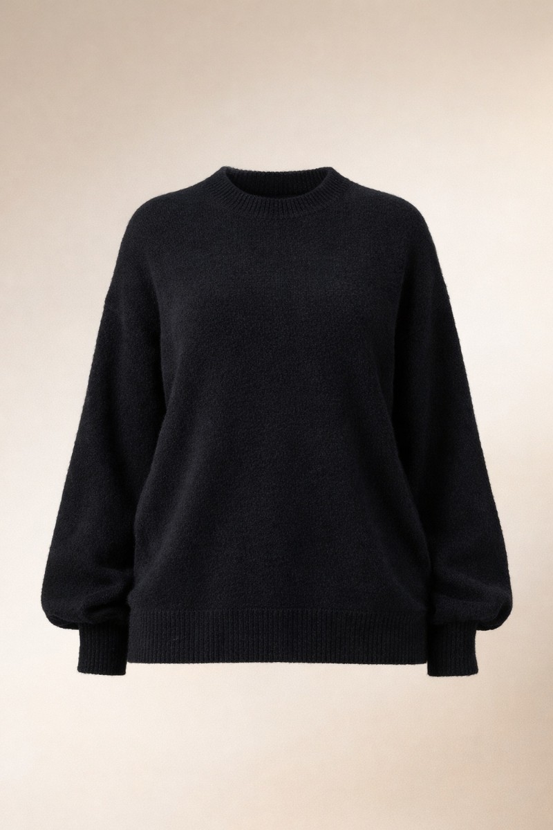 Представляем Вашему вниманию джемпер оверсайз с рукавом-фонарик, сшитый из качественного материала «эко-кашемир» — мягкой акриловой пряжи премиум-класса, которая по своим тактильным ощущениям и внешнему виду практически неотличима от натурального кашемира. Эта модель идеально сочетает в себе комфорт, стиль и доступную роскошь.