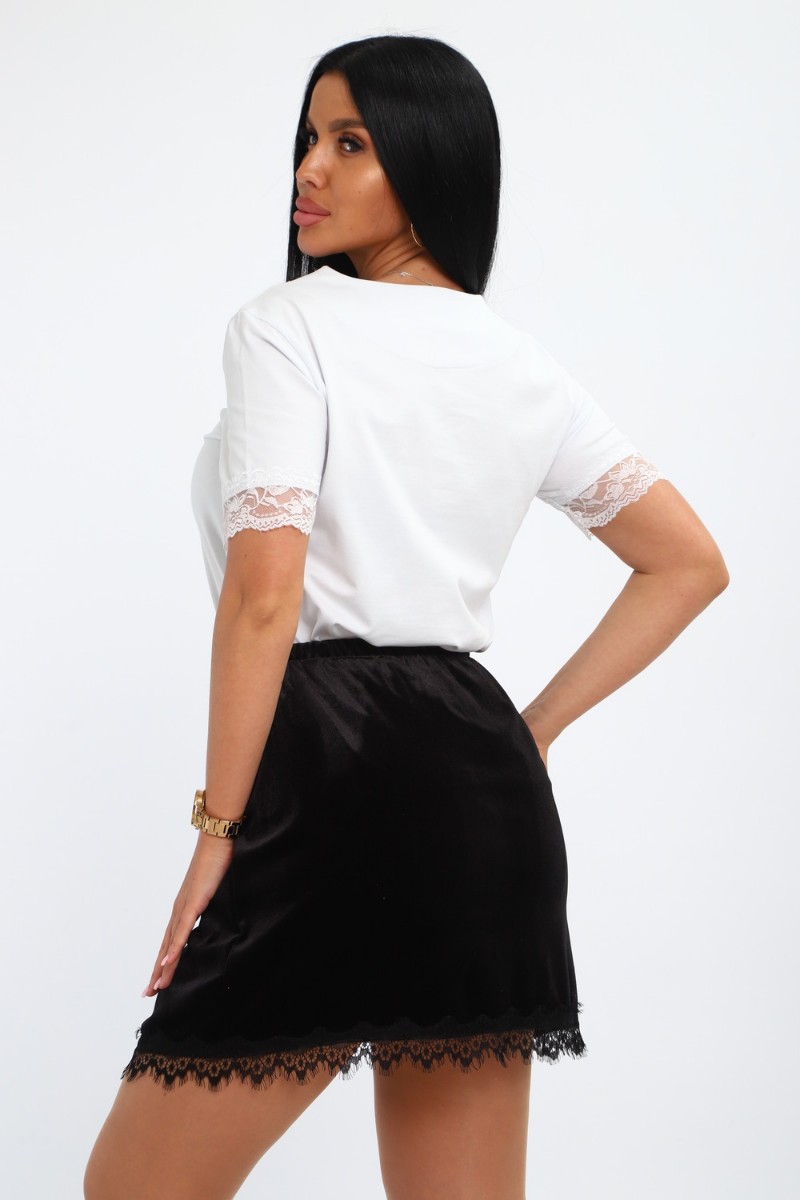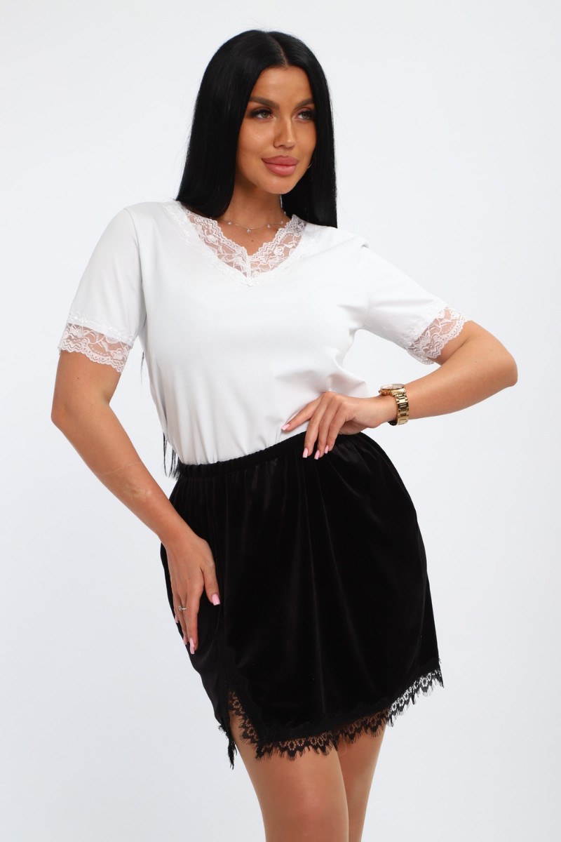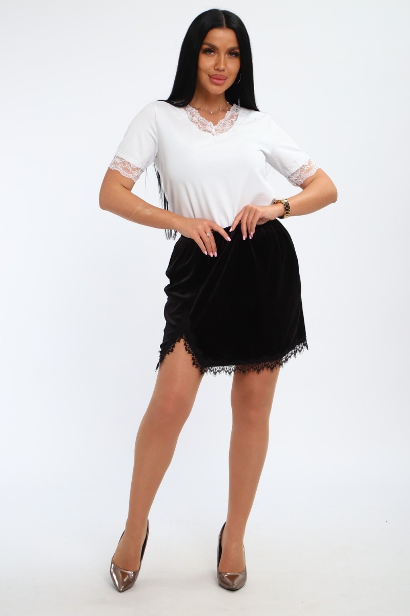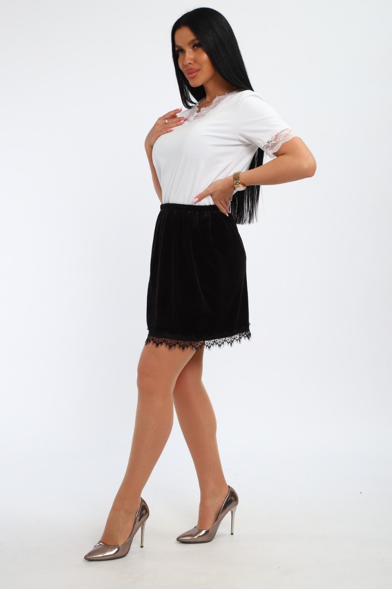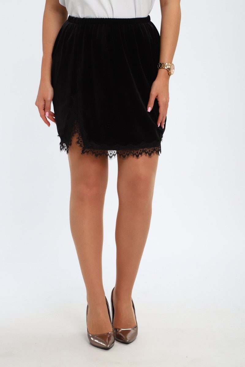 Представляем Вашему вниманию стильную, бархатную юбку с кружевом – идеальный выбор для создания элегантного и соблазнительного образа. Мягкий блеск ткани подчёркивает женственность ,а отделка в виде кружева, делает модель особенно утончённой. Эта бархатная мини – юбка дополнит любой образ и подчеркнёт природную женственность!