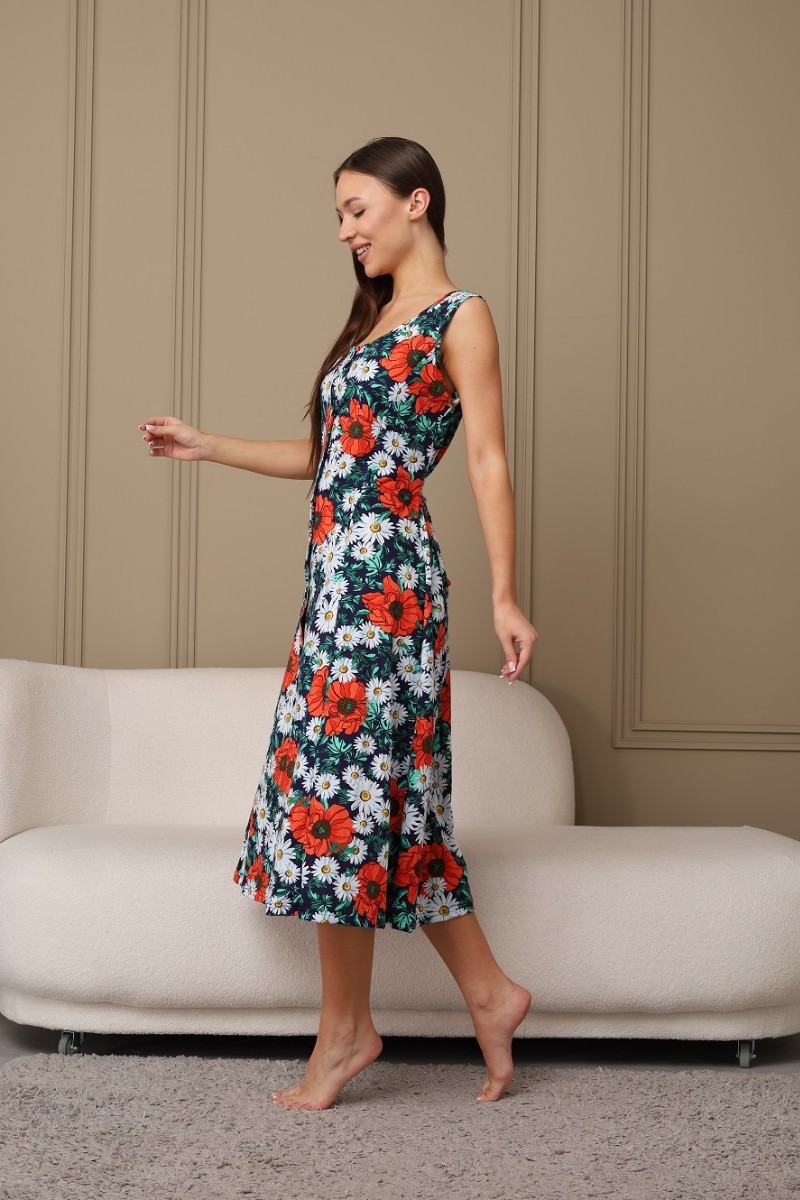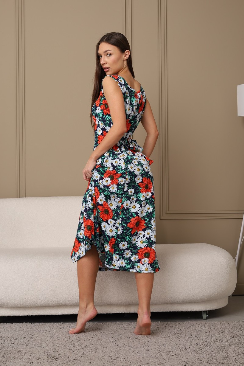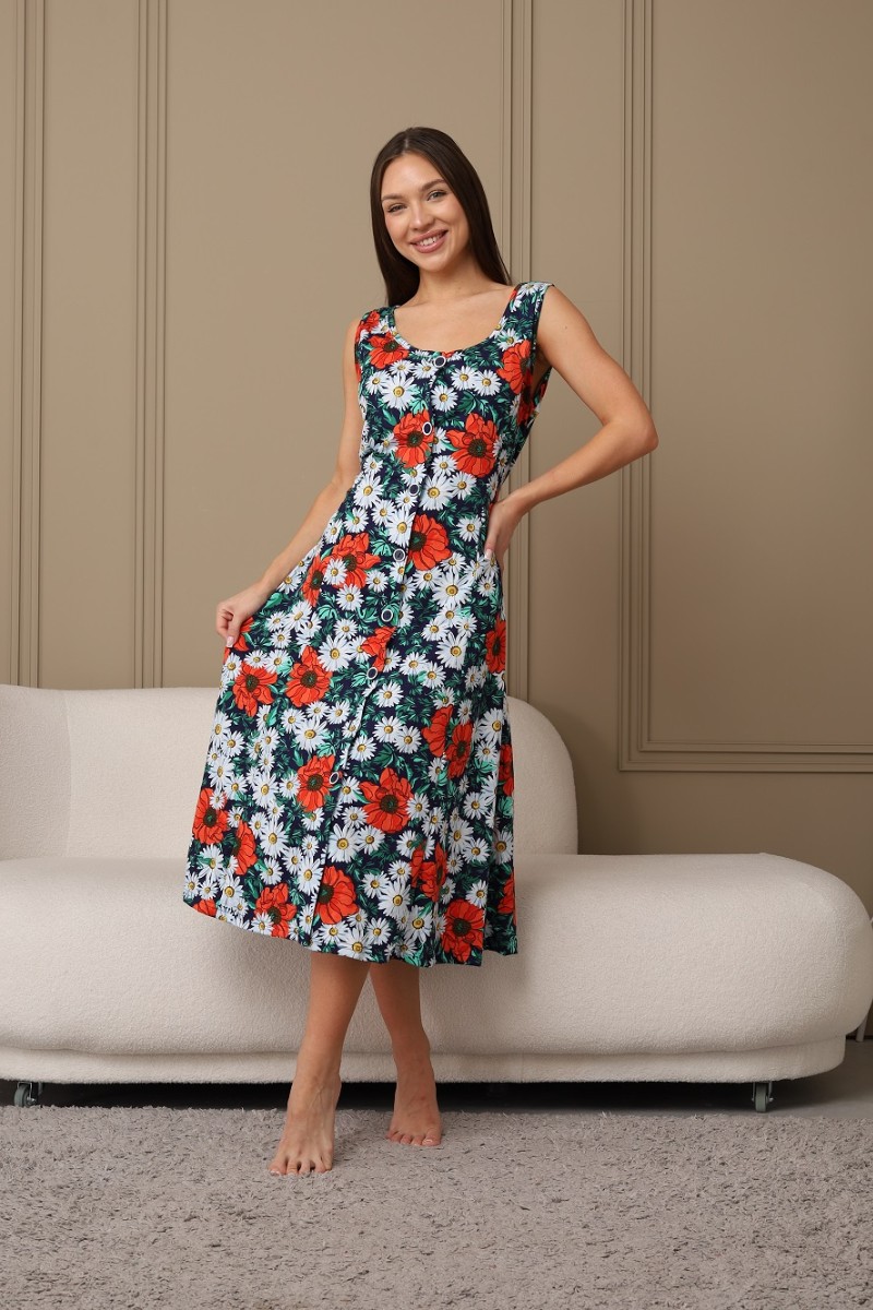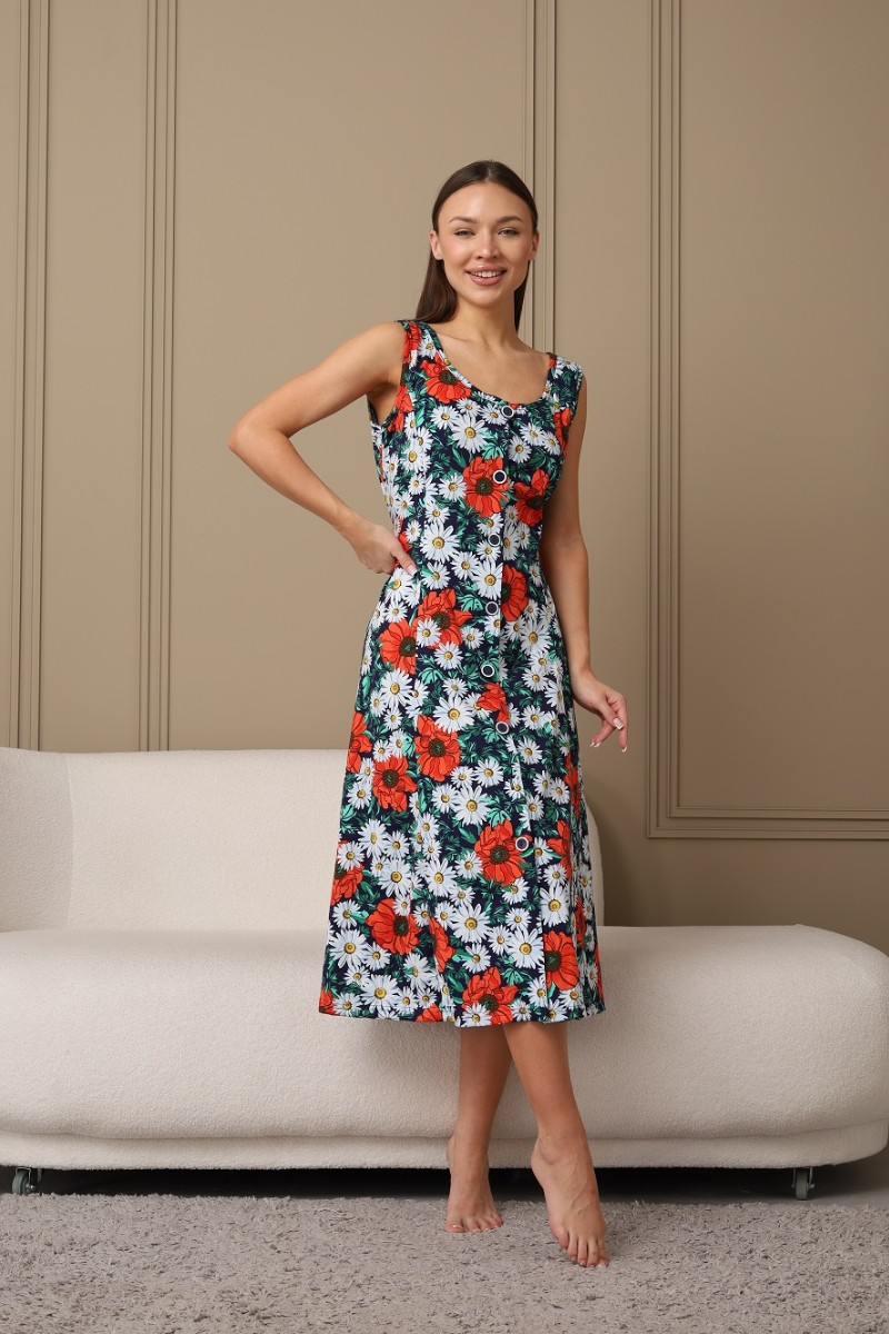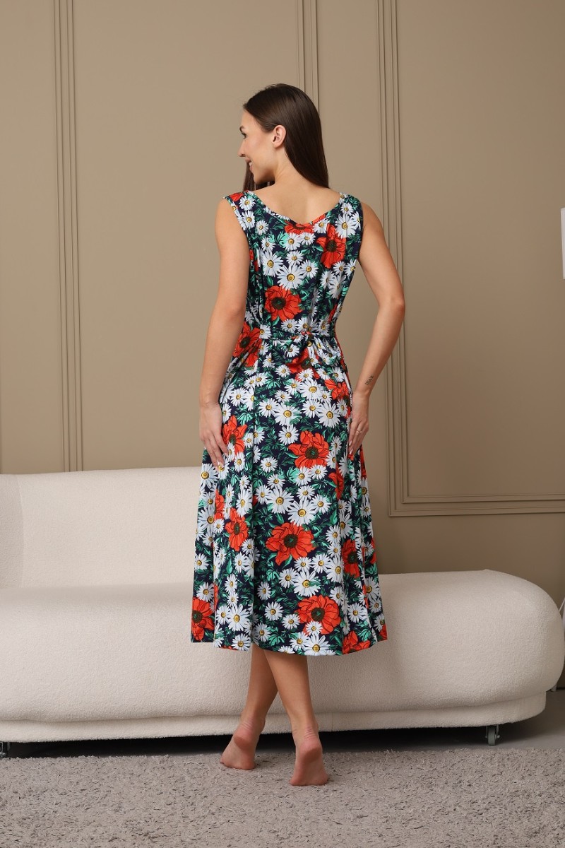 Сарафан женский 576 кулирка (последний размер) темно-синий-зеленый-ромашка 52-54
