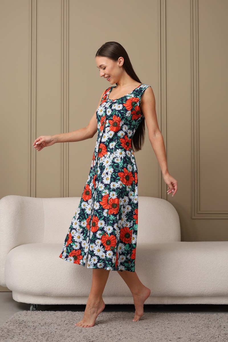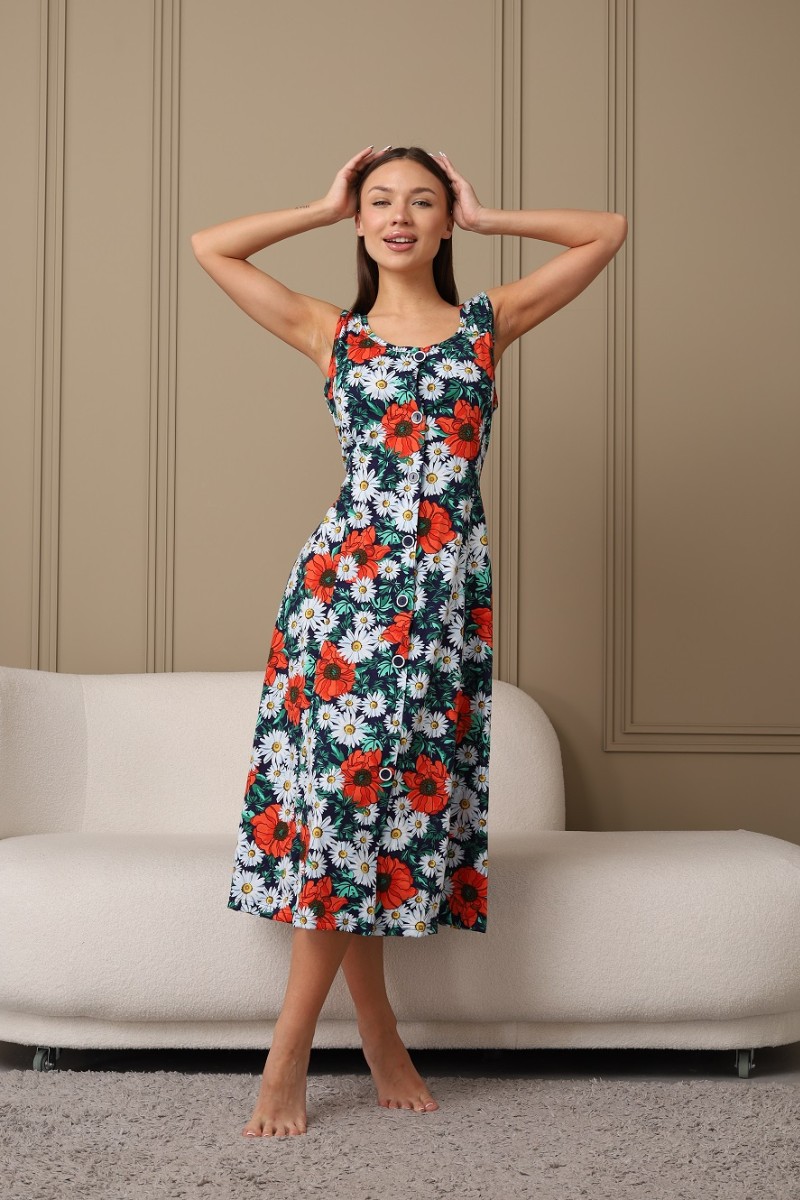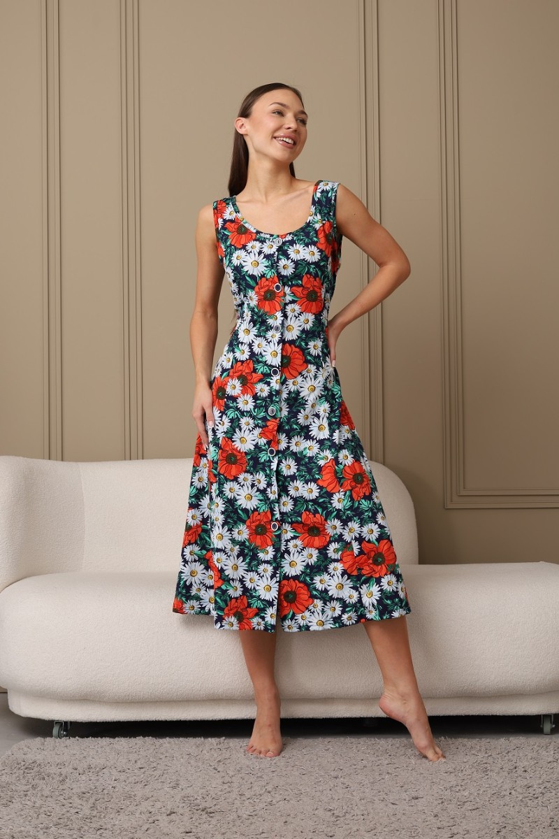 Представляем Вашему вниманию легкий женский сарафан на пуговицах. Изготовлен из легкой, дышащей, приятной к телу кулирки. Изделие хорошо сидит на фигуре. В нём Вы будете чувствовать себя комфортно и уверенно.