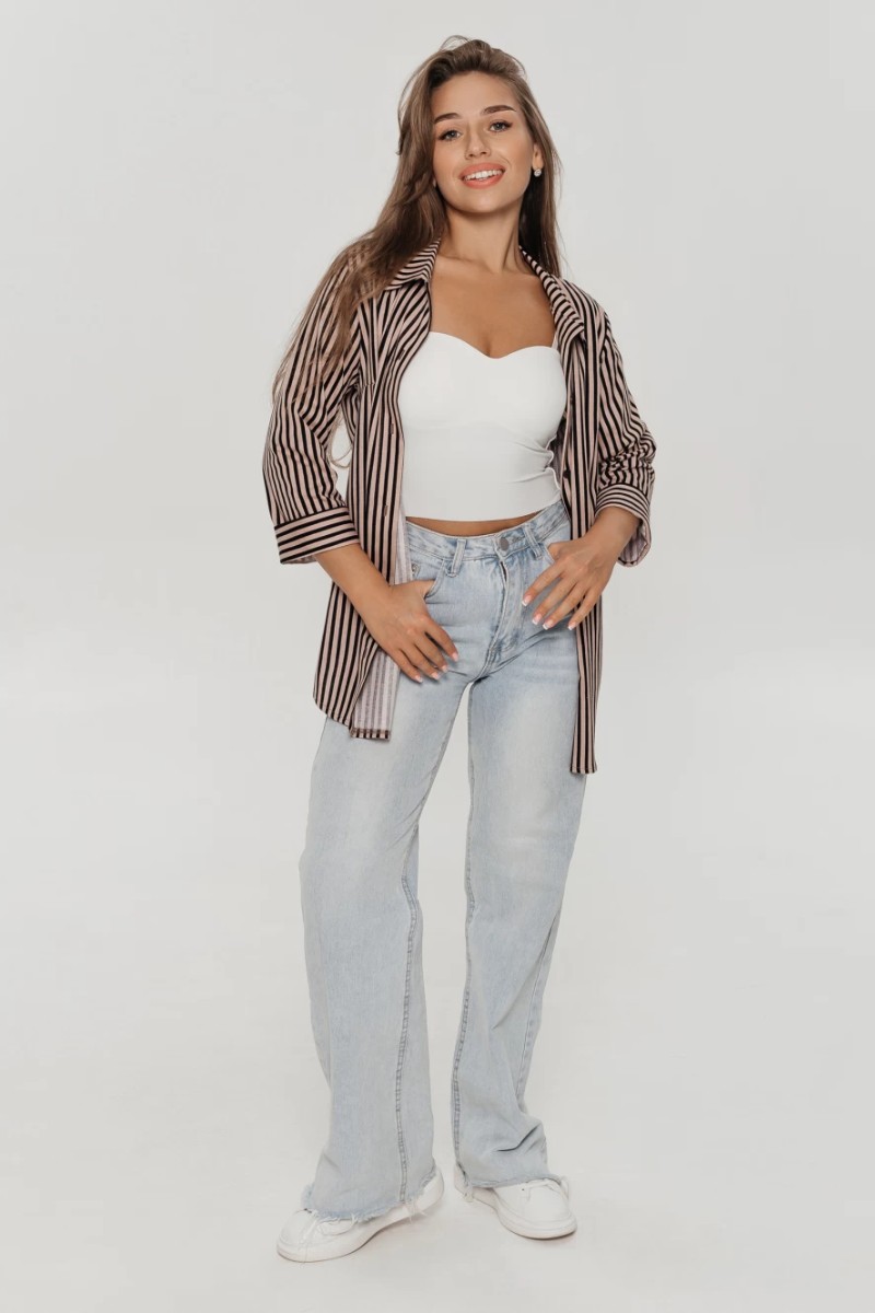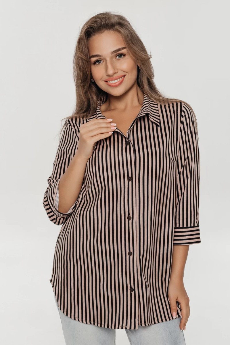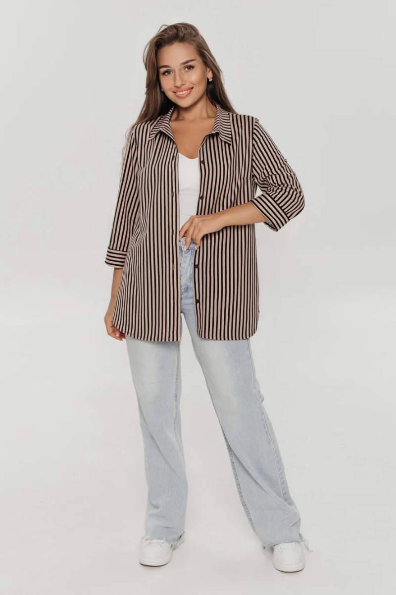 Туника женская "Жанетта" кулирка (последний размер) полоса кофе 52