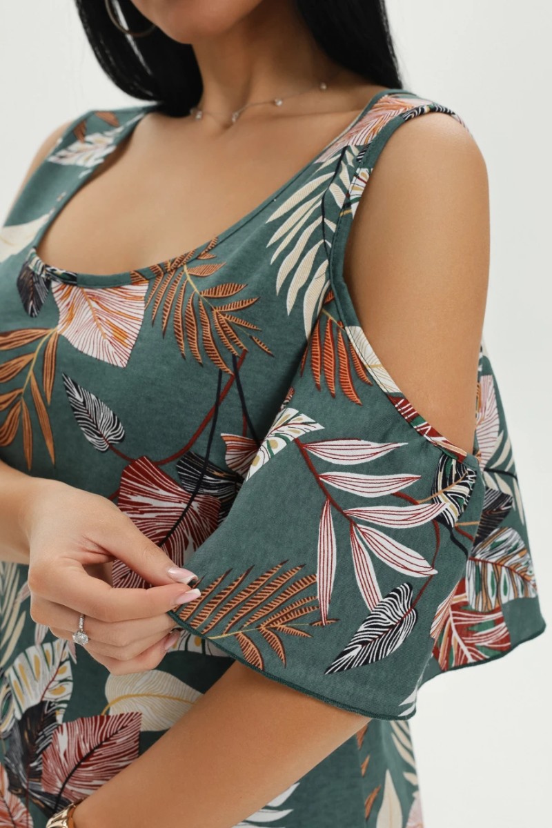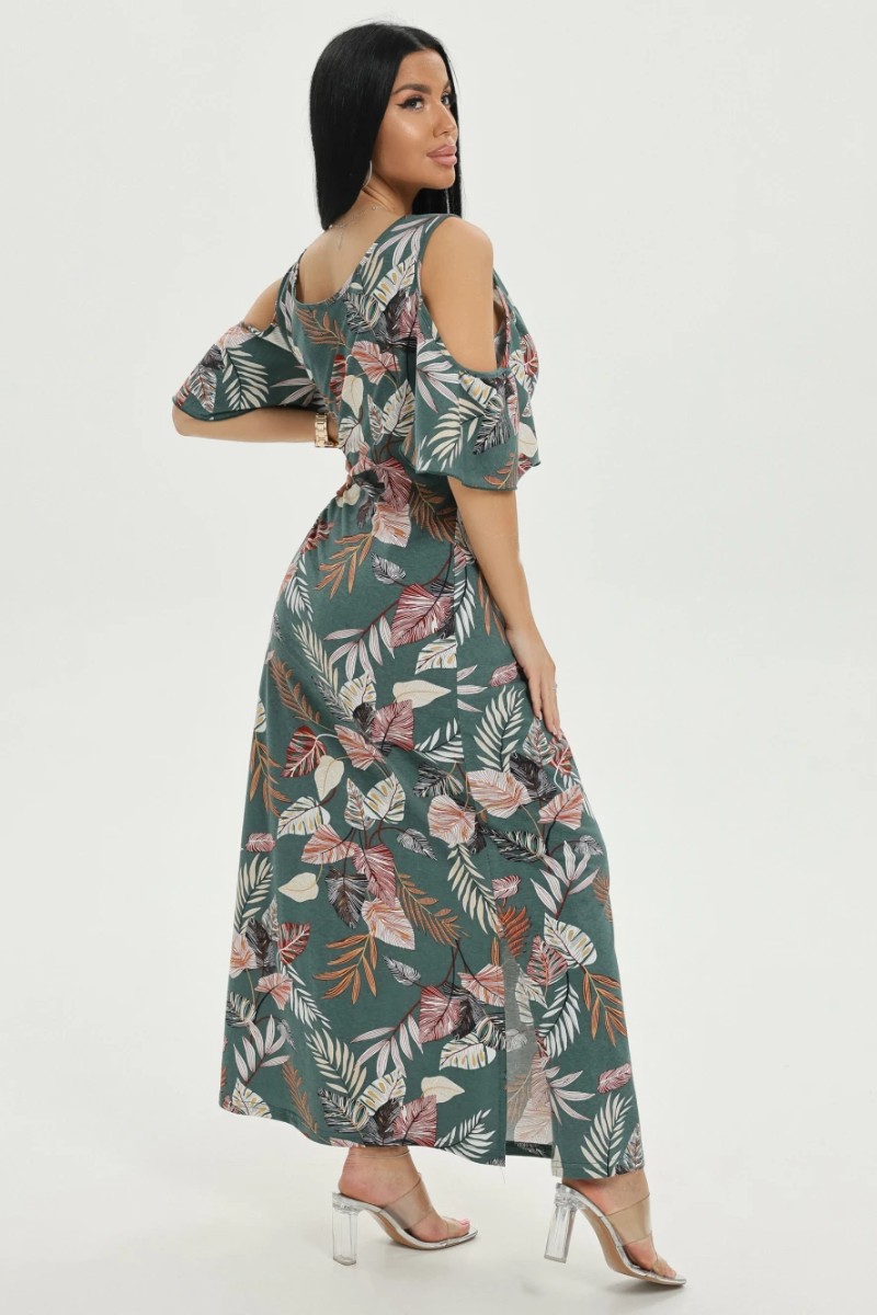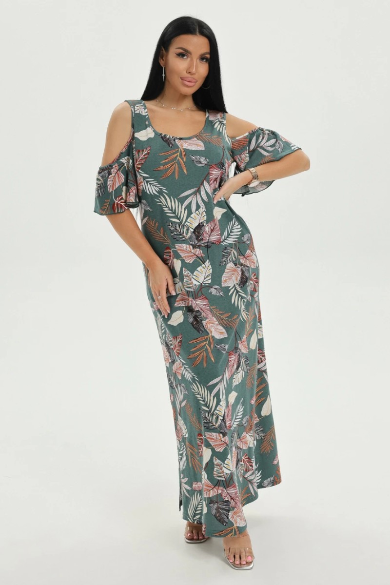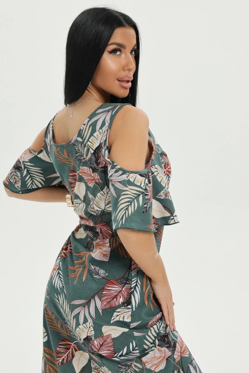 Платье женское "Новелла" кулирка (последний размер) листья зеленый 56-58