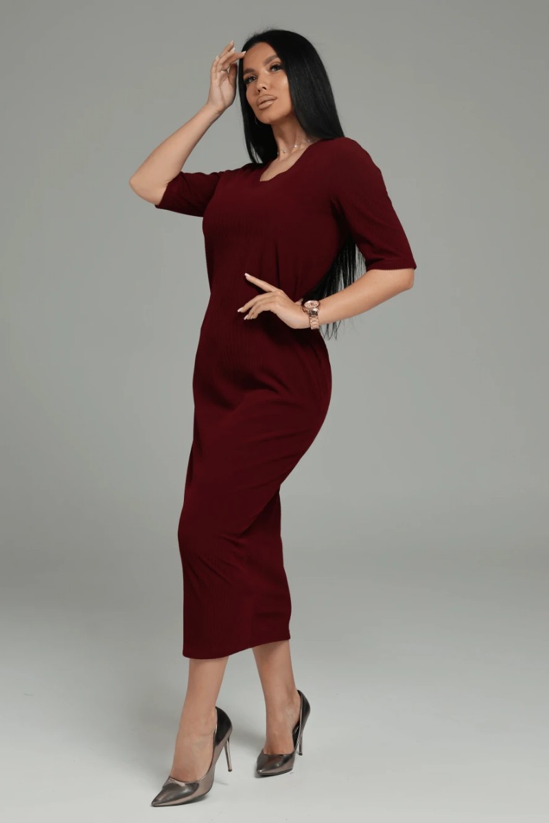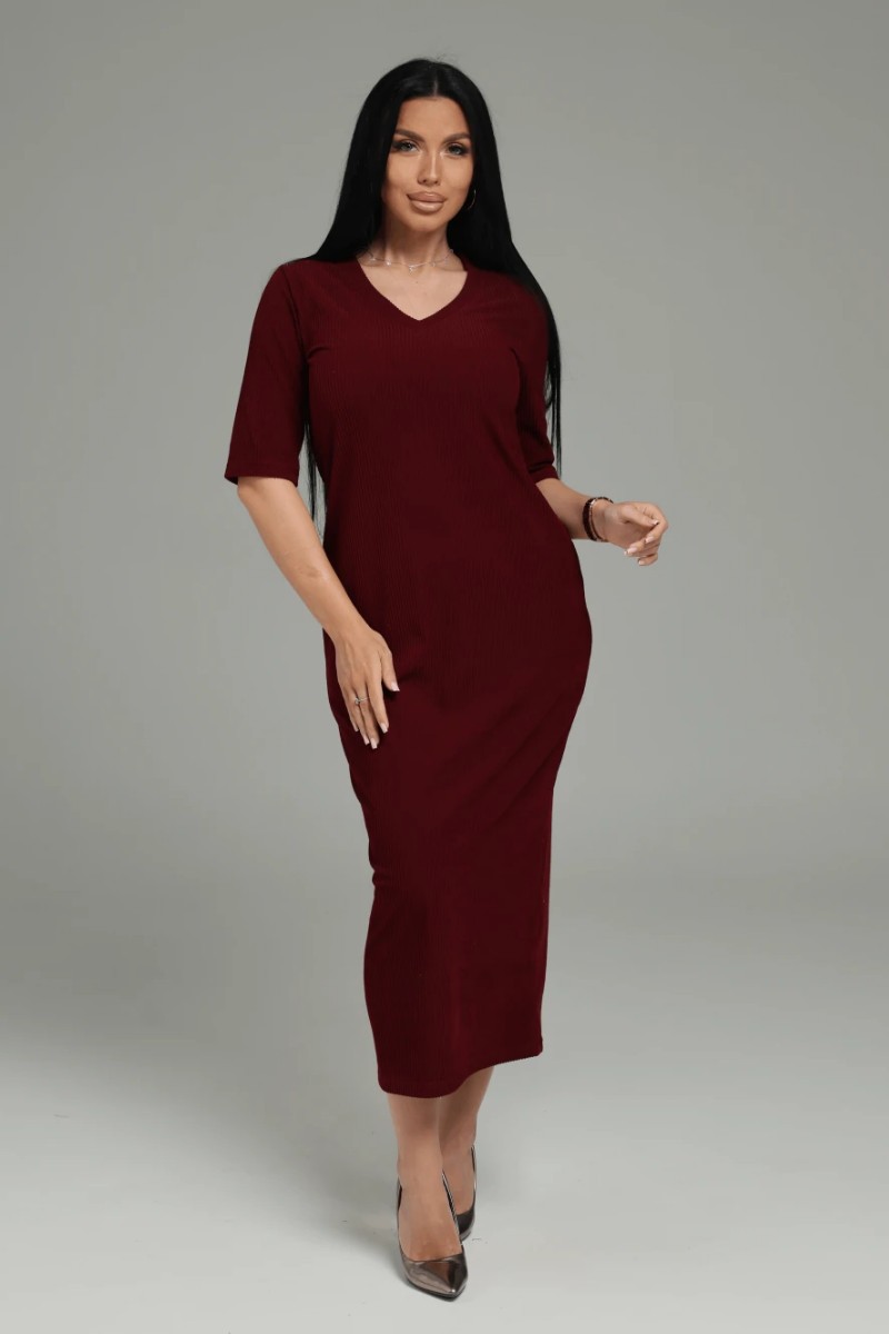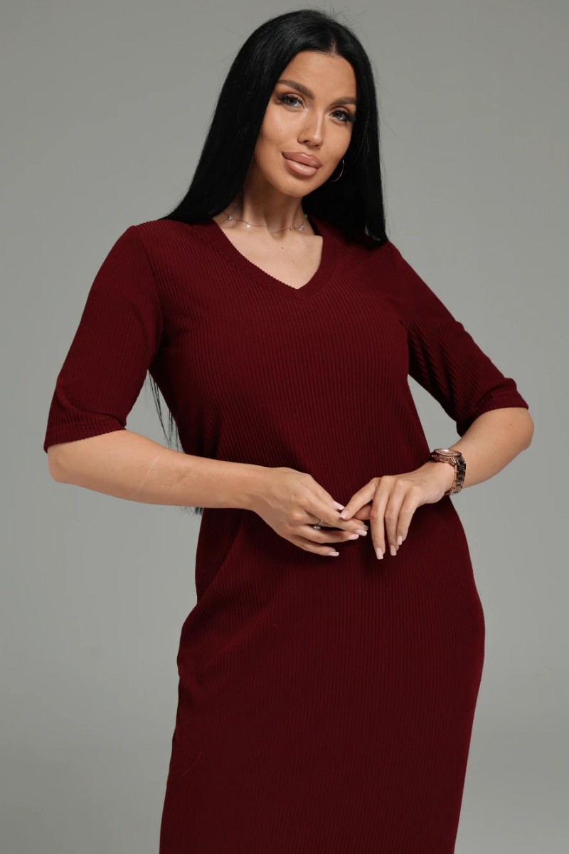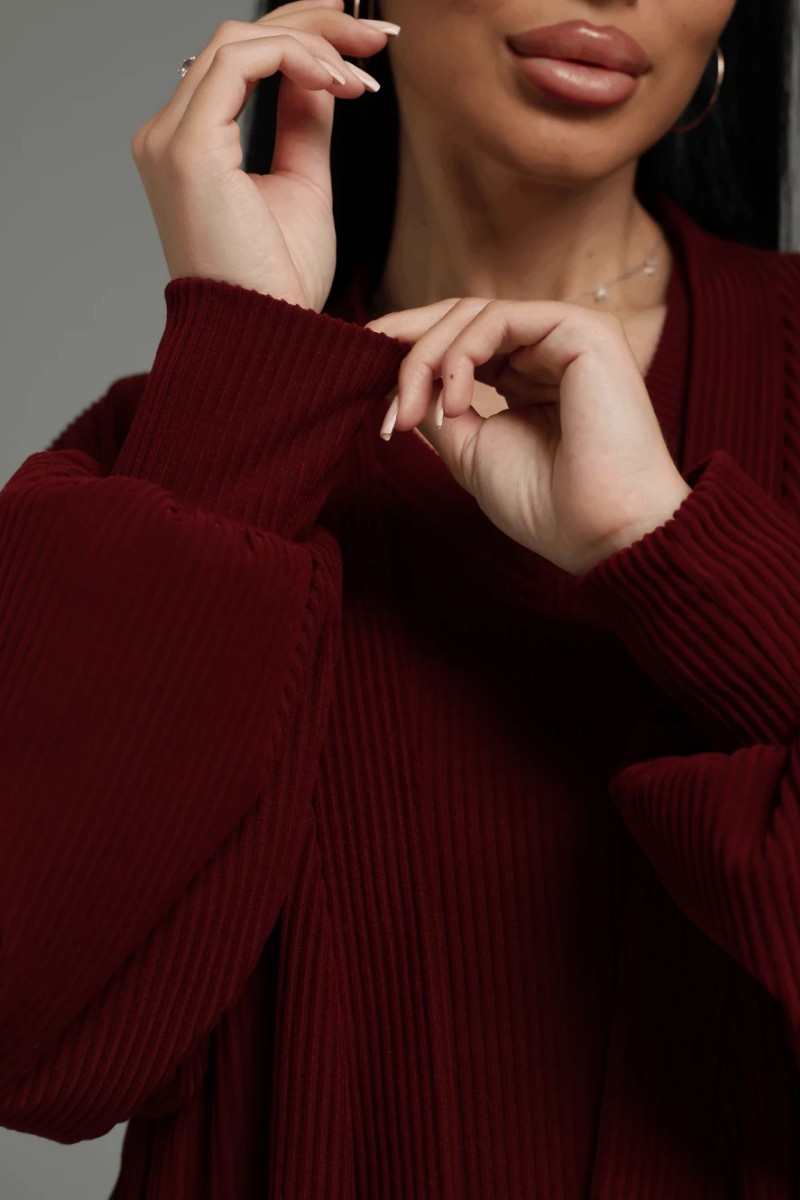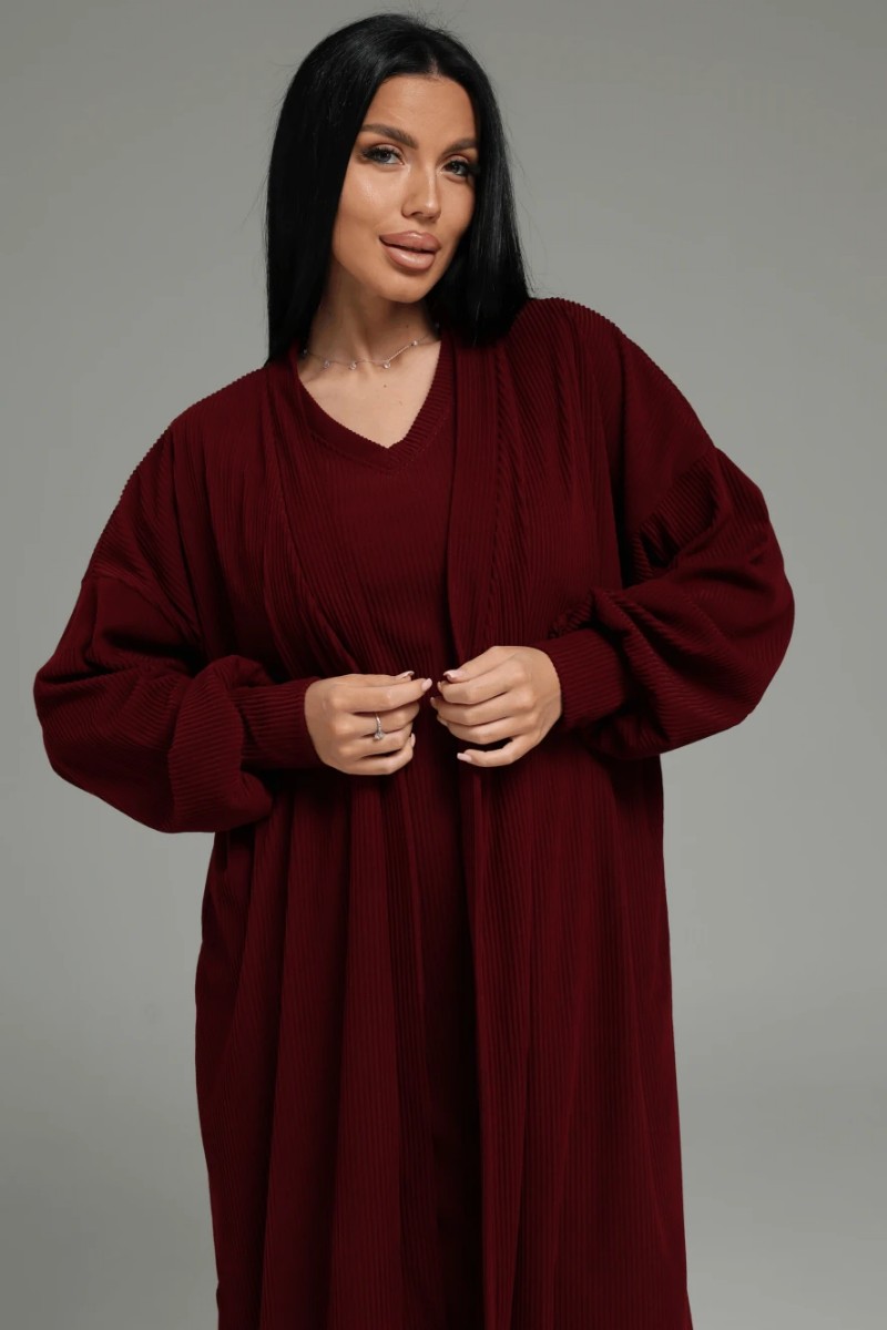 Костюм двойка женский "Леди" (платье и кардиган) кашемир лапша (последний размер) бордо 52-54