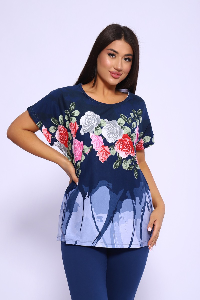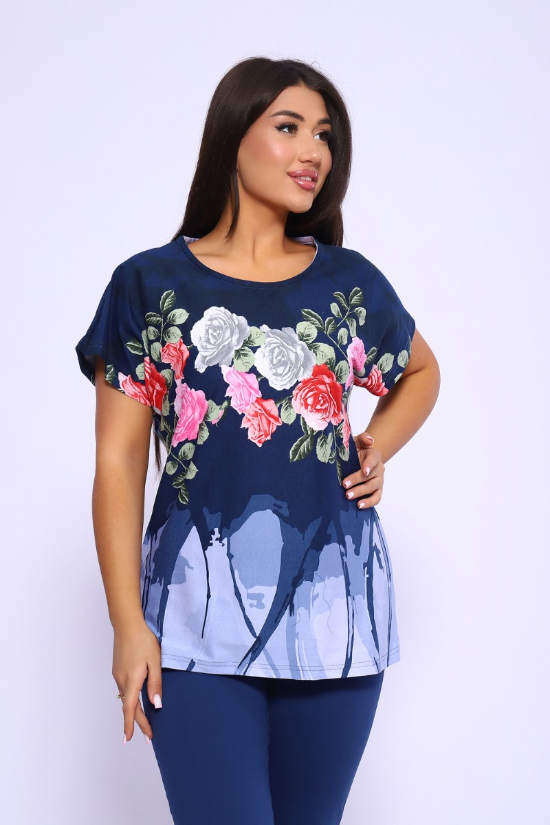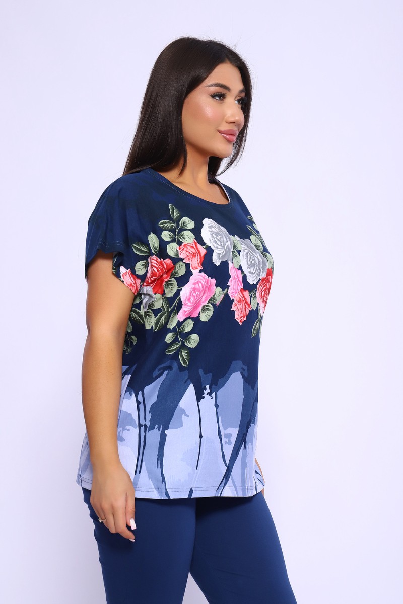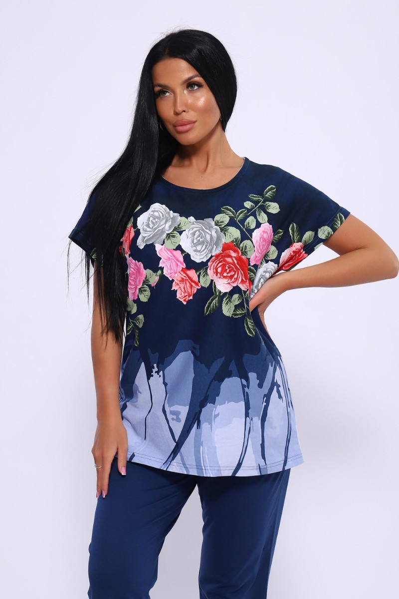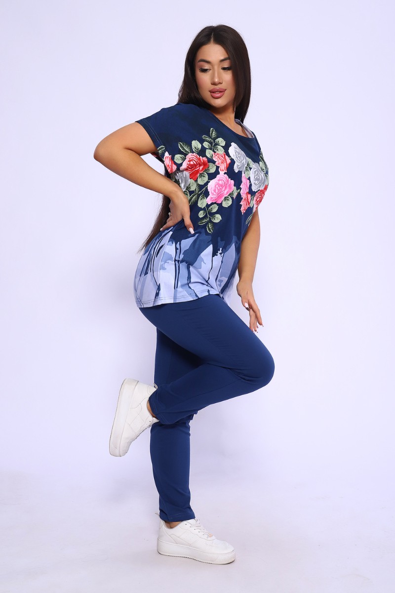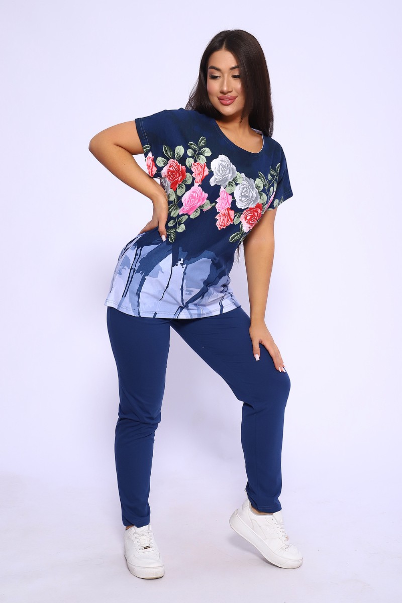 Костюм двойка женский №65072 кулирка (последний размер) синий 58