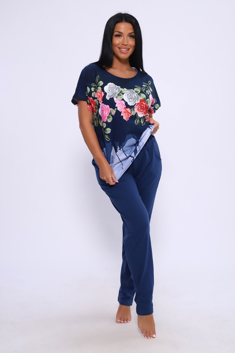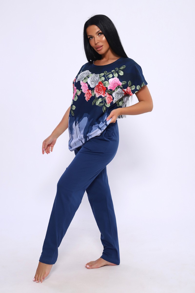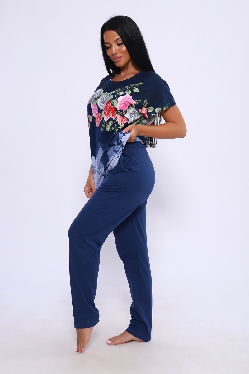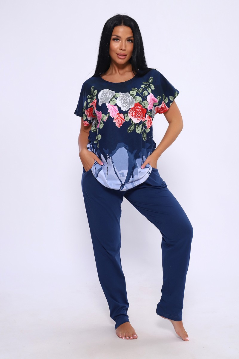 Представляем Вашему вниманию женский трикотажный костюм с брюками - идеальный выбор для тех, кто следит за модой и всегда хочет выглядеть сногсшибательно! Костюм прекрасно подходит для дома, прогулок и повседневной носки. Брюки свободные, с двумя боковыми карманами, на широком поясе с резинкой, кофта сшита из ткани с ярким цветочным рисунком. Легкая и приятная к телу ткань станет залогом приятного времяпровождения. Яркий и стильный костюм несомненно будет радовать хозяйку и поднимать настроение ей и окружающим!