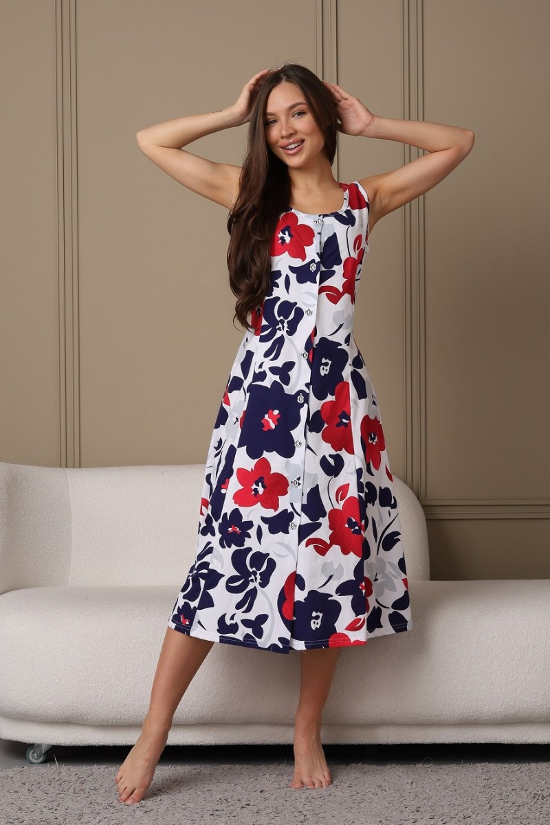 Представляем Вашему вниманию легкий женский сарафан на пуговицах. Изготовлен из легкой, дышащей, приятной к телу кулирки. Изделие хорошо сидит на фигуре. В нём Вы будете чувствовать себя комфортно и уверенно.