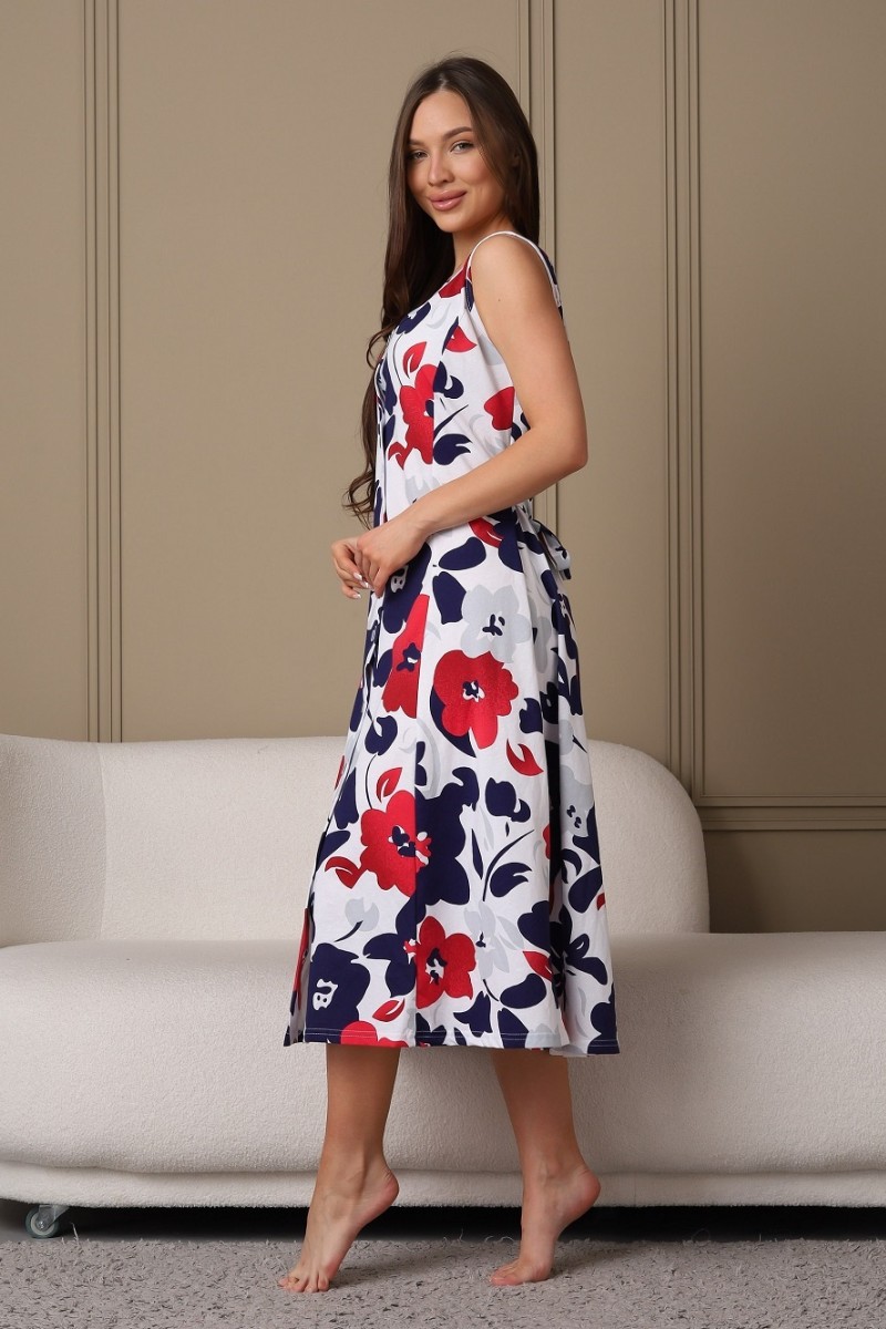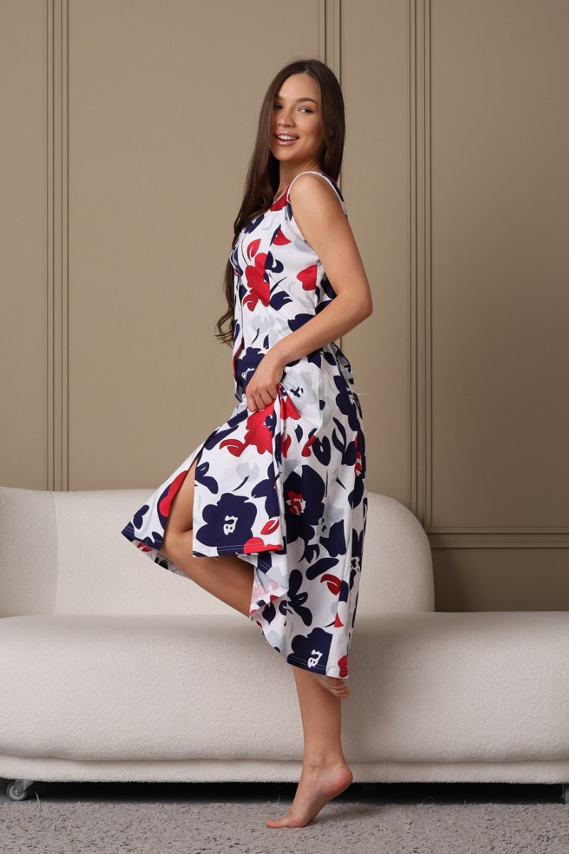 Сарафан женский 576 кулирка (последний размер) белый-бордовый-цветы 48-50,50-52