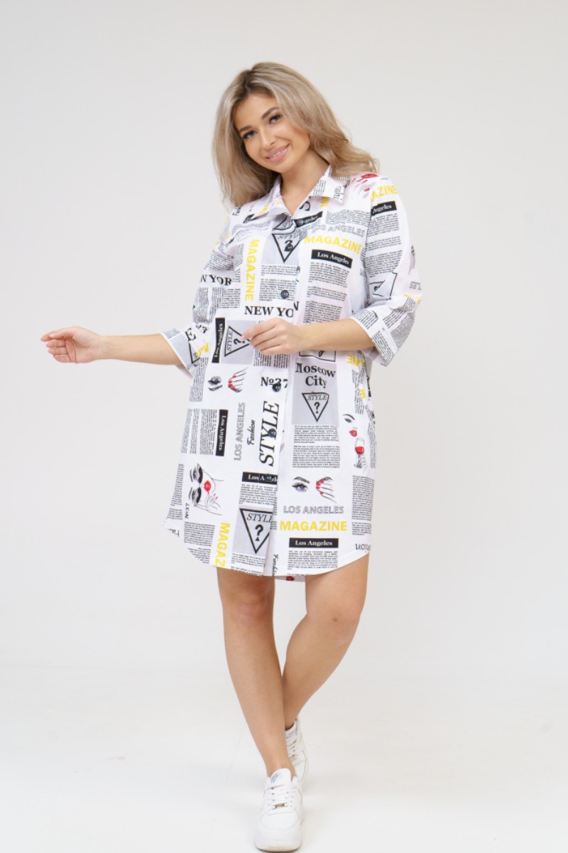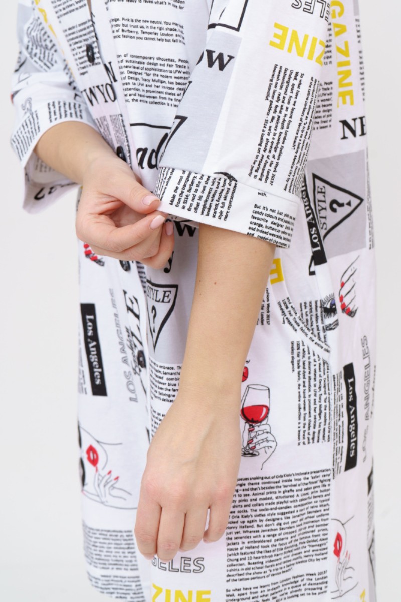 Представляем Вашему вниманию стильный женский халат из кулирки - 100% дышащего хлопка. Рубашечный фасон предоставляет возможность поэкспериментировать и идет всем женщинам без исключения. Модель свободного покроя. Полочка с кокеткой, накладными клапанами, в боковых швах карманы. Спинка цельнокроеная, рукав втачной длиной ¾ с притачной манжетой, застежка центральная на петли пуговицы. Воротник рубашечного типа. Халат длиной ниже уровня бёдер, линия низа с закруглениями. В этом наряде Вы будете чувствовать себя комфортно и уверенно.