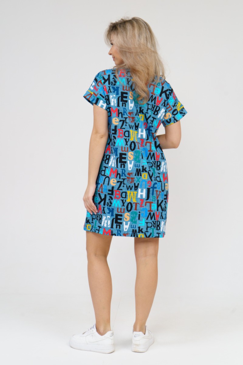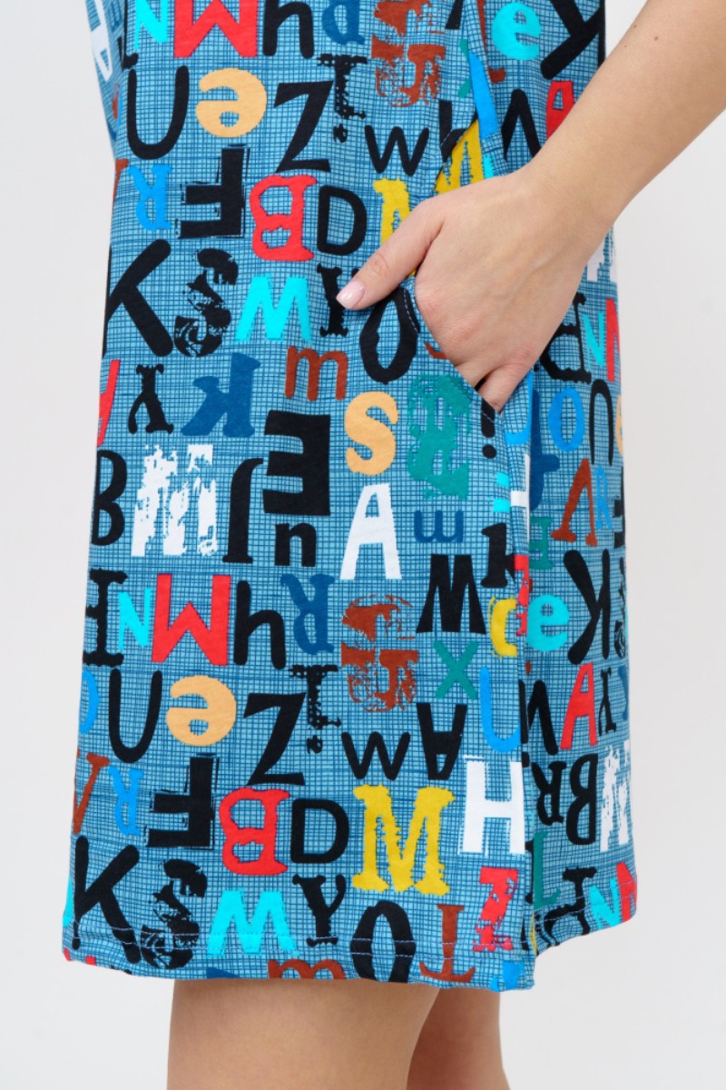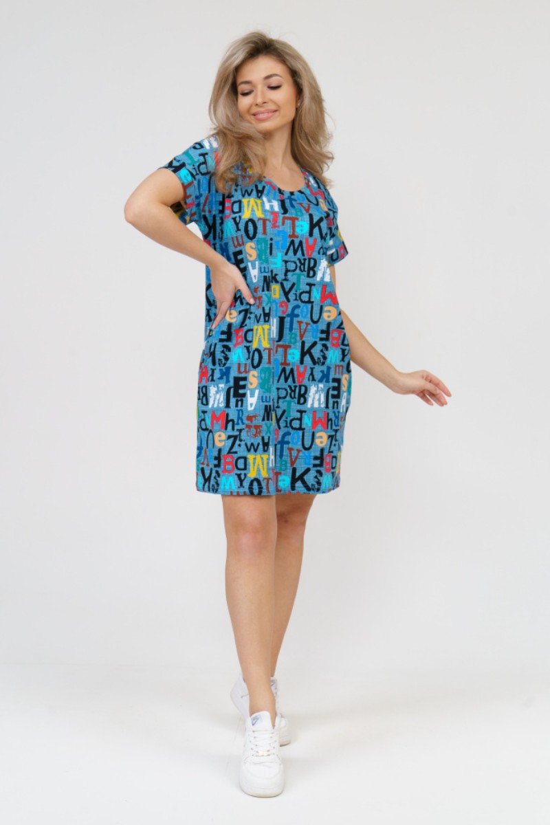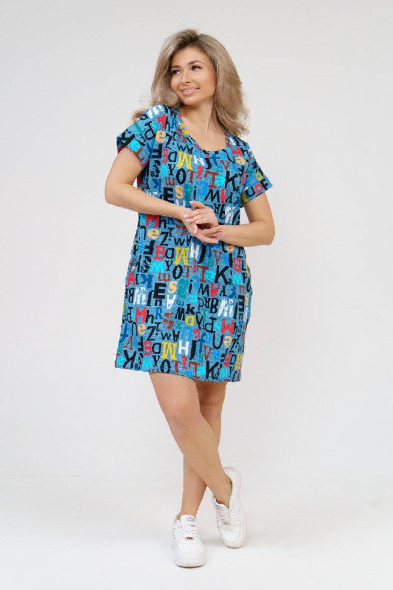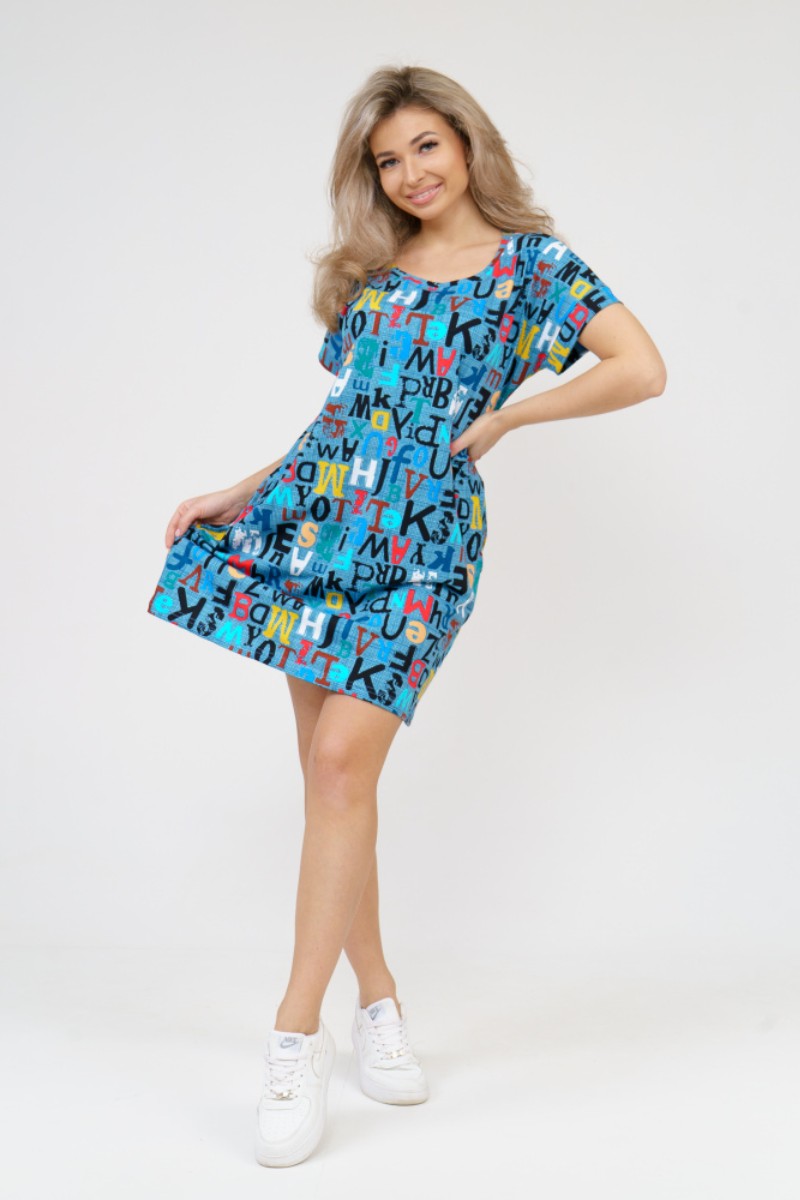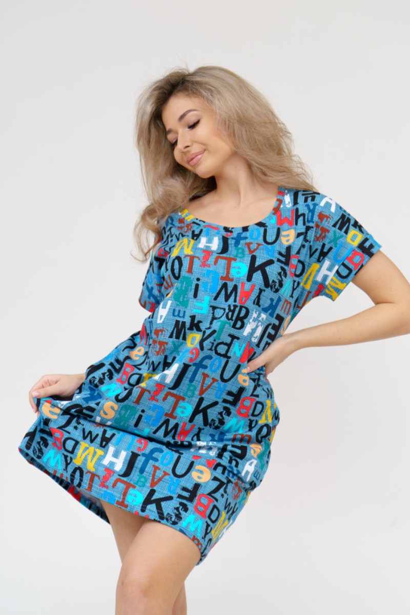 Туника женская 532 кулирка (последний размер) буквы на голубом 58,60