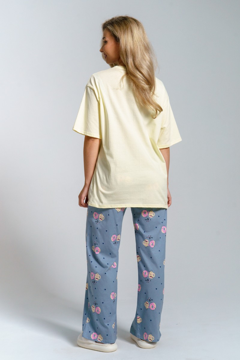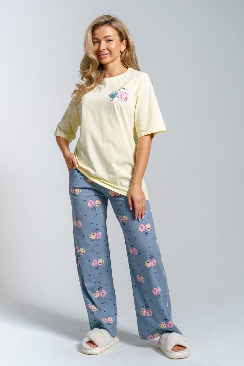 Представляем Вашему вниманию легкую женскую пижаму из кулирки - 100% натурального, дышащего хлопка. Комплект имеет элегантную расцветку, которая интересно смотрится и поднимает настроение. Изделие красиво сидит на фигуре и подчеркивает её достоинства. В ней Ваш сон будет максимально приятным и расслабляющим.
