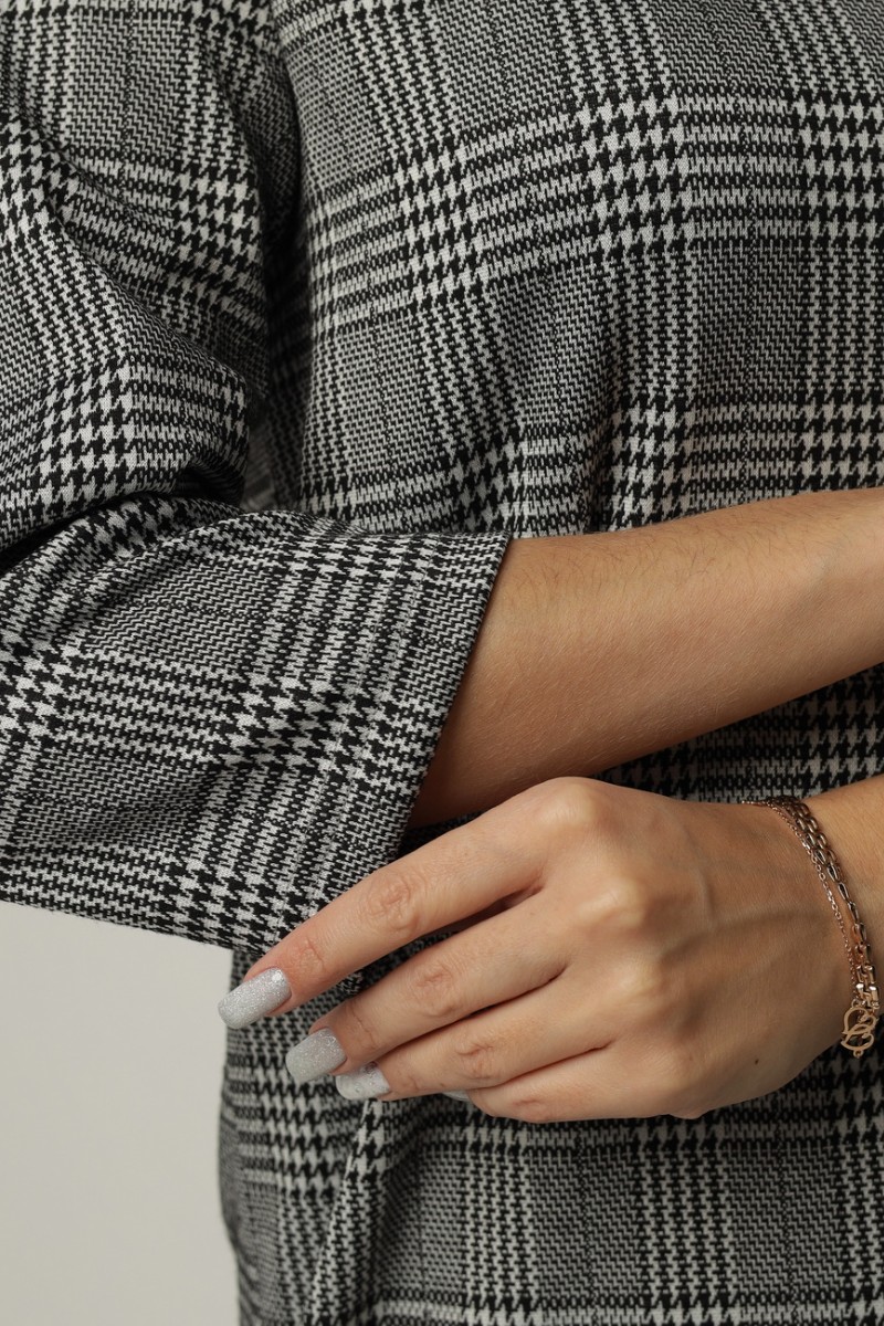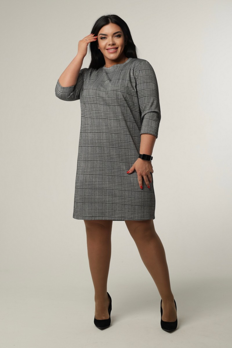 Платье женское П-176 жаккард принт (последний размер) серая клетка 52