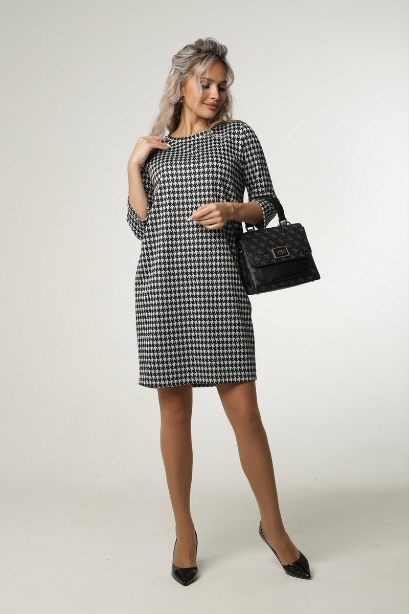 Платье женское П-176 жаккард принт (последний размер) белая лапка 46