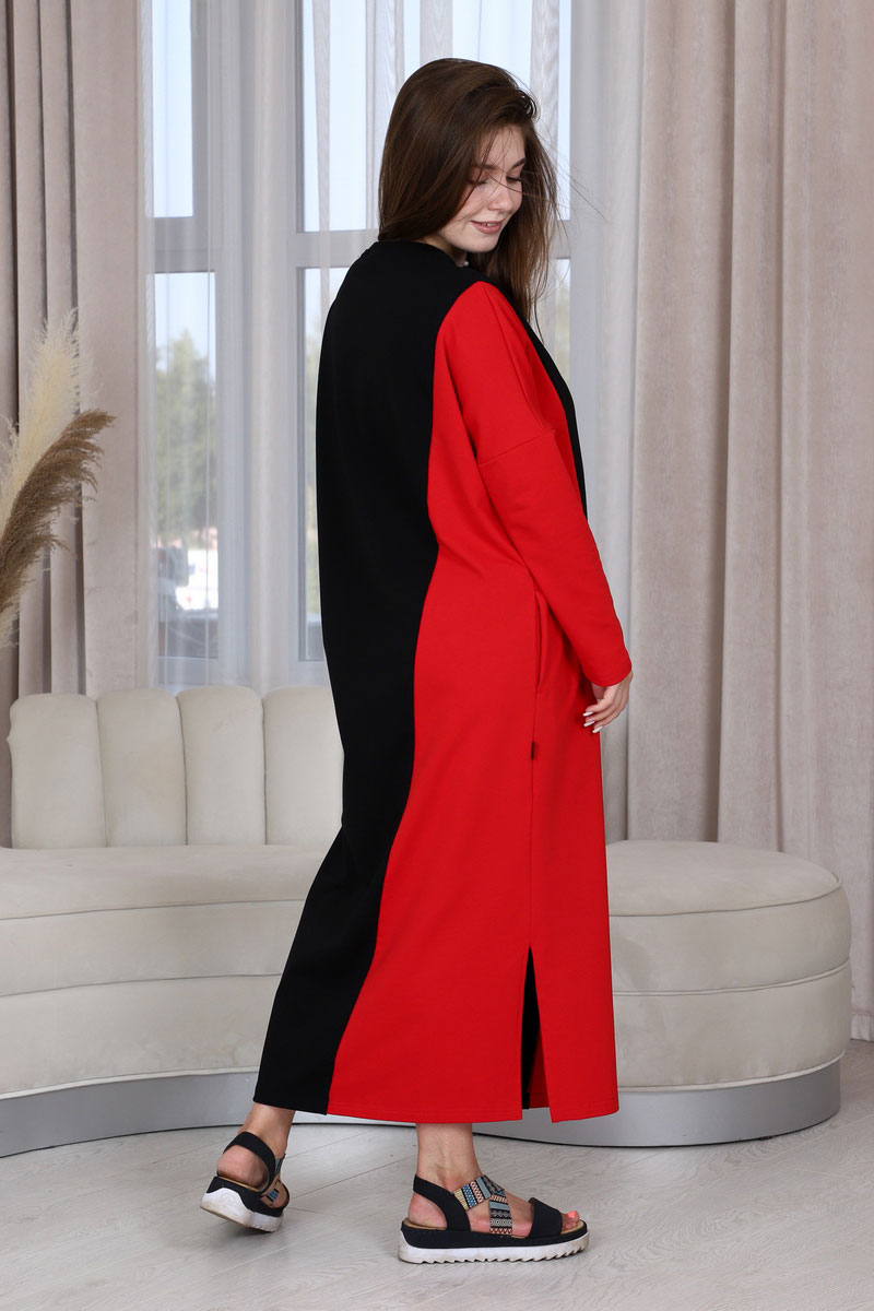 Представляем Вашему вниманию яркое и комфортное женское платье. Модель выполнена из приятного телу, высококачественного футера с лайкрой, который хорошо пропускает воздух, позволяя коже дышать. Платье оверсайз, с потайными кармашками, длины макси. Такой наряд сделает Ваш гардероб модным и актуальным.