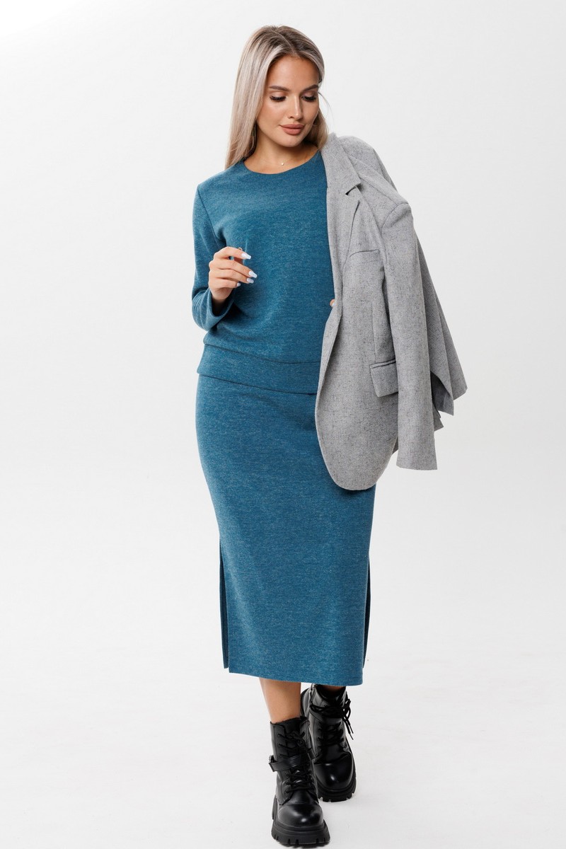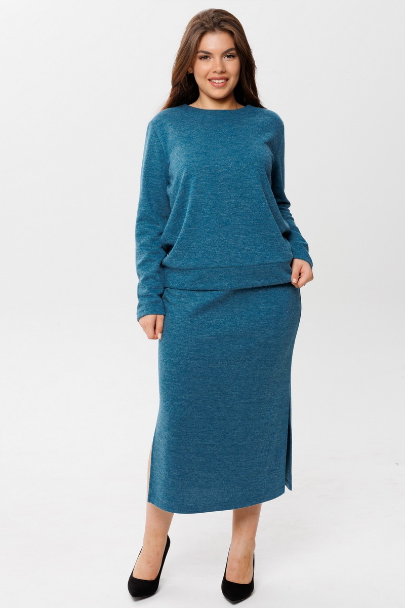 Костюм двойка женский с юбкой К238 евроангора (последний размер) петроль 52,54