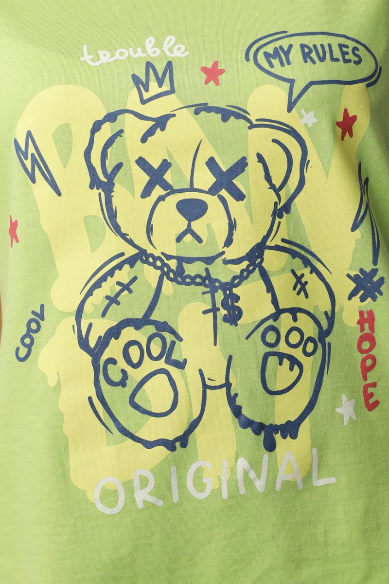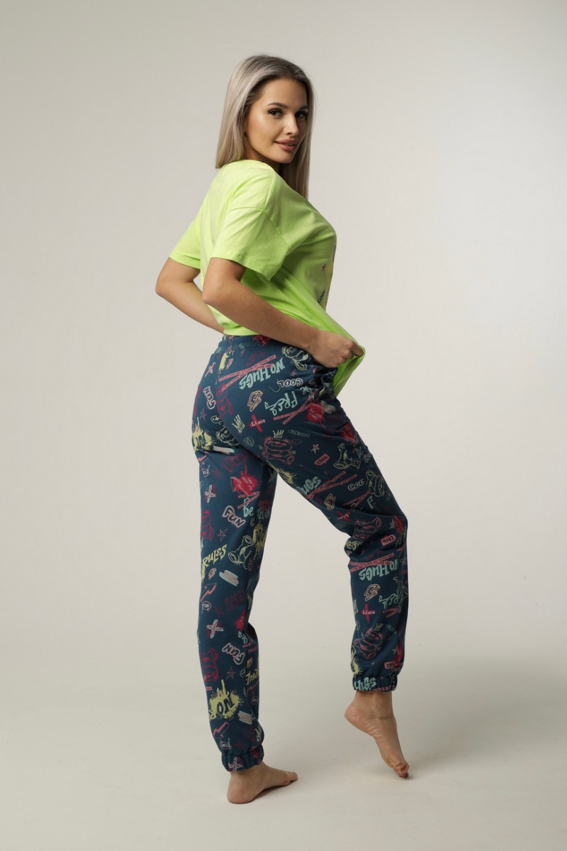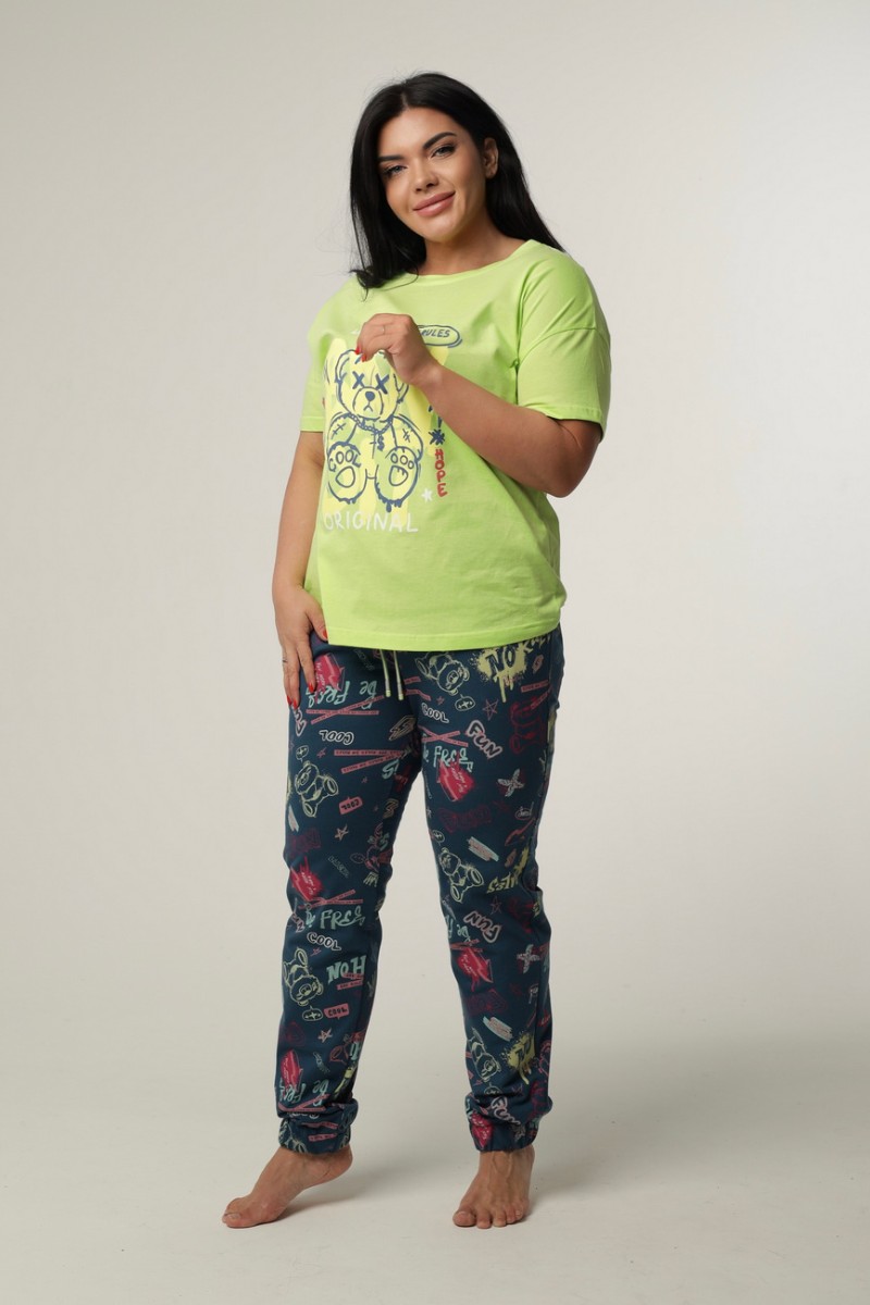 Ткань: футболка - кулирка (100% хлопок), брюки - футер с лайкрой набивной (80% хлопок, 15% п/э, 5% лайкра)