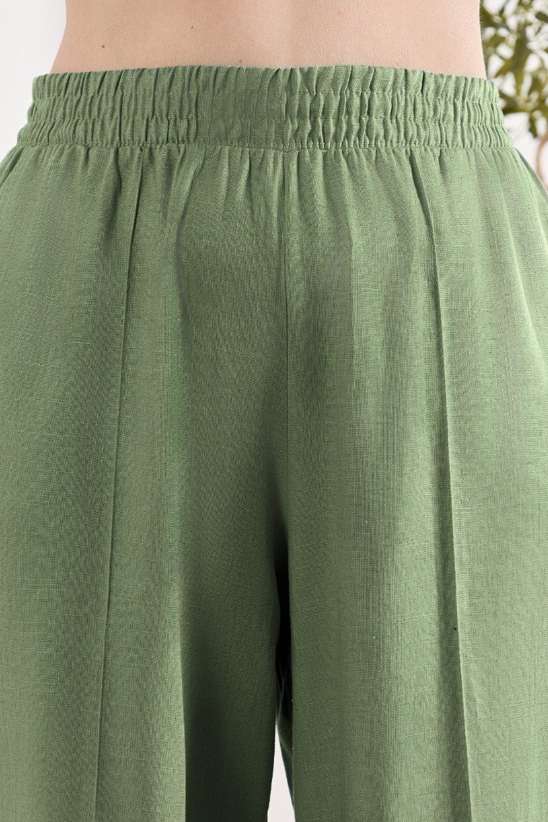 Представляем Вашему вниманию брюки женские из гладкокрашеного тканого полотна, свободного кроя, удлиненные, с карманами в боковых швах, на притачном поясе с эластичной тесьмой внутри. Передние половины застрочены по центральным линиям.