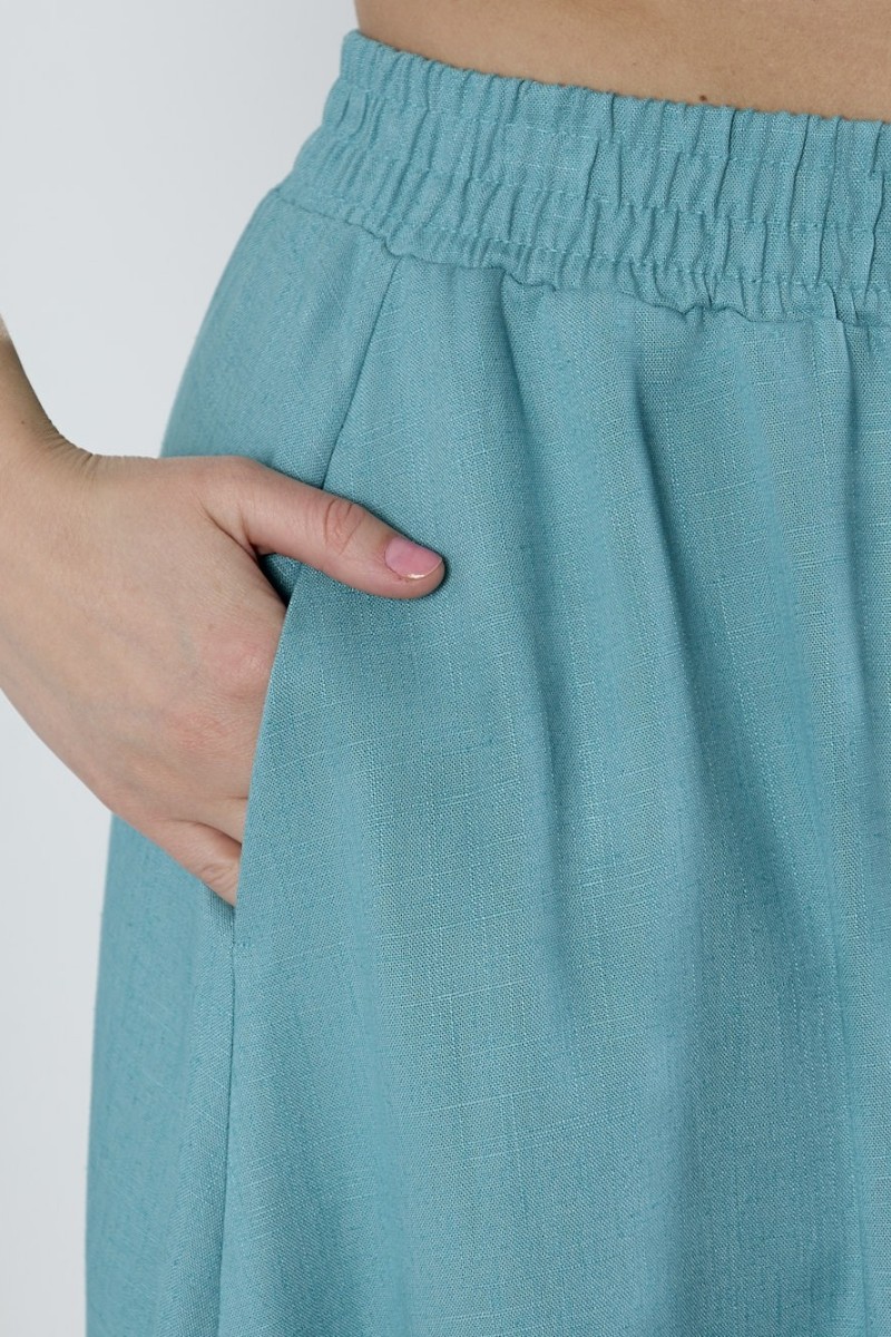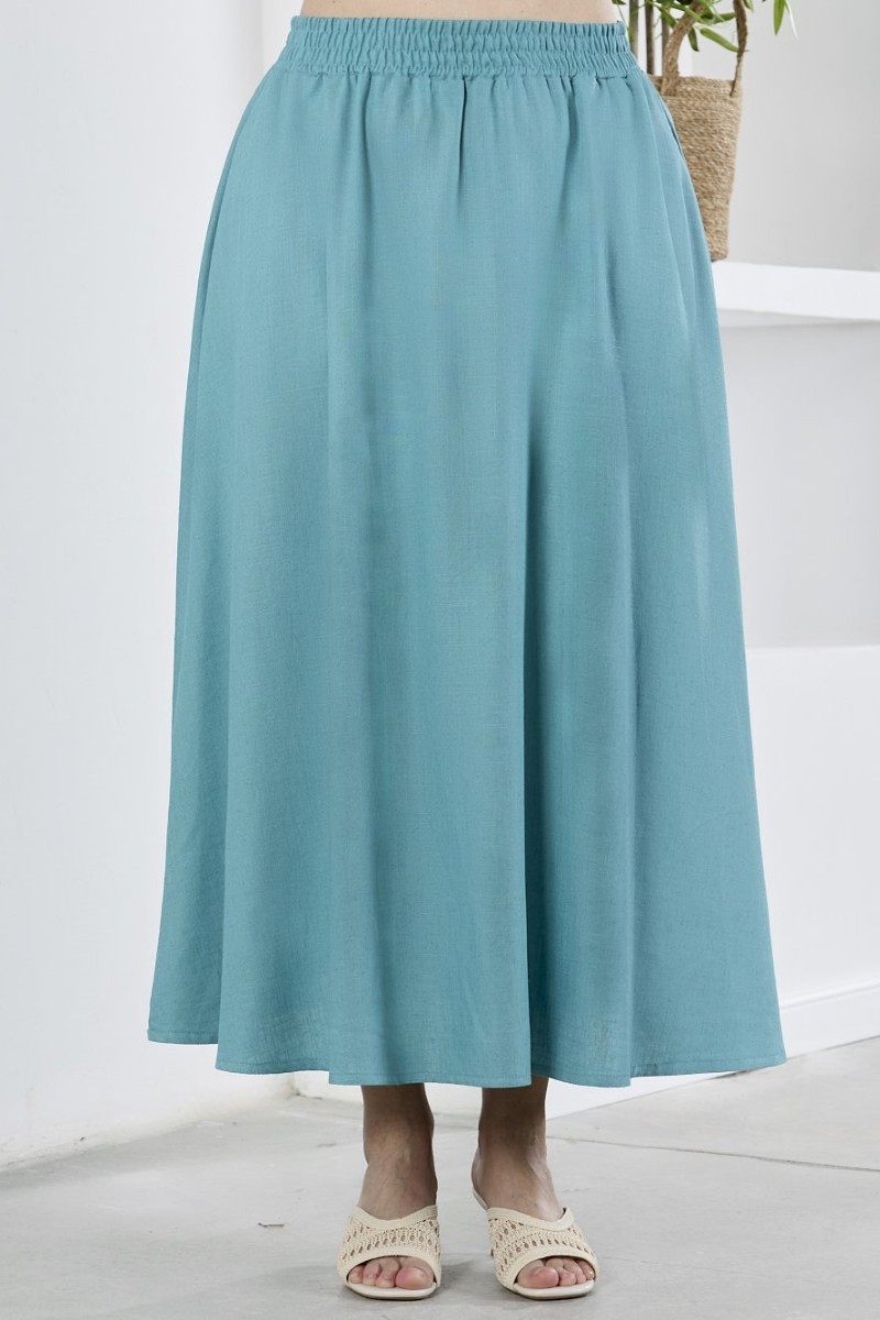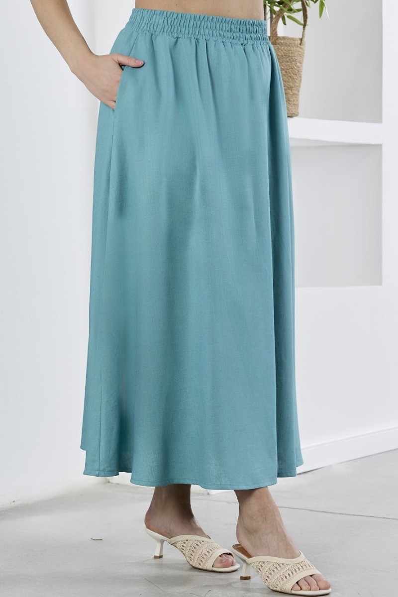 Представляем Вашему вниманию юбку женскую из гладкокрашеного тканого полотна, удлиненная, свободная, с карманами в боковых швах, на притачном поясе с эластичной тесьмой внутри.